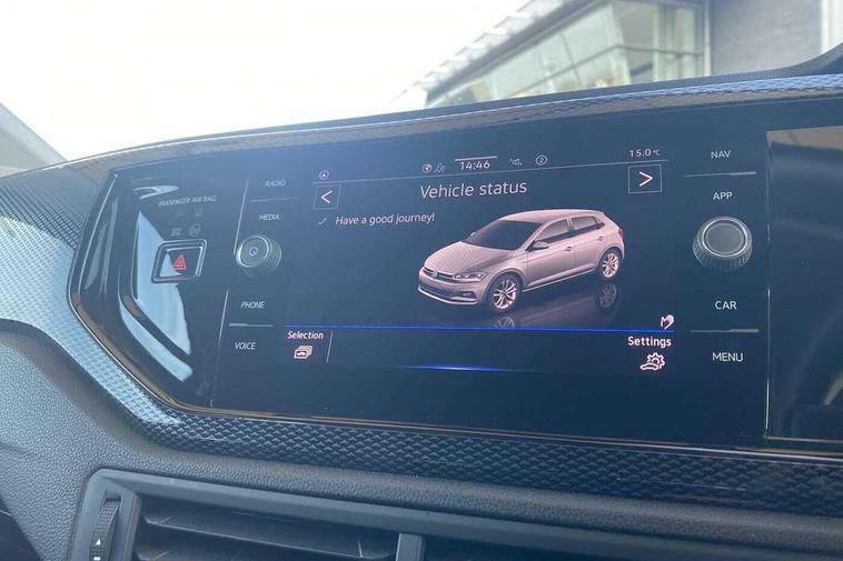 Adaptive cruise control without follow-to-stop and speed limiter, Bluetooth mobile phone interface, Driver alert system, Emergency call service, Front assist system, Power assisted speed sensitive steering, Preparation for We connect and We connect plus, Speedo and rev counter, electronic odometer, trip, service interval display and fuel gauge, Standard rear axle, Travel Assist - Lane keeping system and traffic jam assist, Travel assist including emergency assist, Trip computer, Warning signal and warning light for front and rear seatbelts not fastened, Washer fluid level indicator, Wireless app connect, Front wheel drive, Rear shock absorpion, Start-stop system with battery regeneration (recuperation - energy recovery during braking), DAB Digital radio, Diversity antenna for FM reception, Front and rear 6 speakers, Automatic dimming interior rear view mirror, Body colour bumpers, Body colour door handles, Body colour door mirrors, Electric front windows, Heat insulating darkened glass in side and rear windows, Heat insulating glass windscreen, Power folding adjustable/heated exterior mirrors and front passenger exterior mirror lowering function, Rain sensor, Rear electric windows, Rear fog light, Rear side wing doors, Rear windscreen washer and wiper with interval delay, Third brake light, 12V power socket in centre console, 2 front and 2 rear reading lights, 2 USB-C ports in the front, 2 USB-C charging sockets on the center console in the rear, 3 rear head restraints, 60/40 split folding rear seat and rear seat bench not split, Chrome plated radiator grille inserts, air vent surrounds and light switch surrounds, Door and side trim panel, Driver and front passenger seat height adjustment, Driver/passenger sunvisors with illuminated vanity mirrors, Front centre armrest, Front seat backrest storage pockets, Front standard seats, Handbrake lever handle in leather, Hartley/Thomas cloth upholstery, Headliner in recycled material, Isofix child seat preparation easy-fit (for two outer rear seats, and front passenger seat) compatible with I-size, Leather trimmed gear knob, Luggage compartment cover, Luggage compartment floor, Luggage compartment lighting, Multifunction steering wheel, Single front passenger seat, Standard pedal cluster, Light and vision pack - Polo, 3 point height adj front seatbelts + pretensioners, 3x3 point rear seatbelts, ABS, Driver and front passenger airbag with front passenger airbag deactivation, Drivers and front passengers safety optimised head restraints, ESC (Electronic stability control) + EDL (Electronic Differntial lock) and ASR (Traction control), Extended and predictive pedestrian/ cyclist protection, Front curtain and side airbags with center airbag, Front disc brakes, Hill hold control, Manual child lock in rear doors, Rear drum brakes, Single tone horn, Tyre pressure loss indicator, Alarm with interior protection, Anti-theft alarm system with interior monitoring, backup horn, and towing protection, Anti-theft wheel bolts, Electronic engine immobiliser, Lava stone black gloss/matt decorative inserts in dash and front door panels, Low rolling resistance tyres,