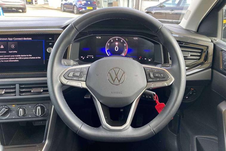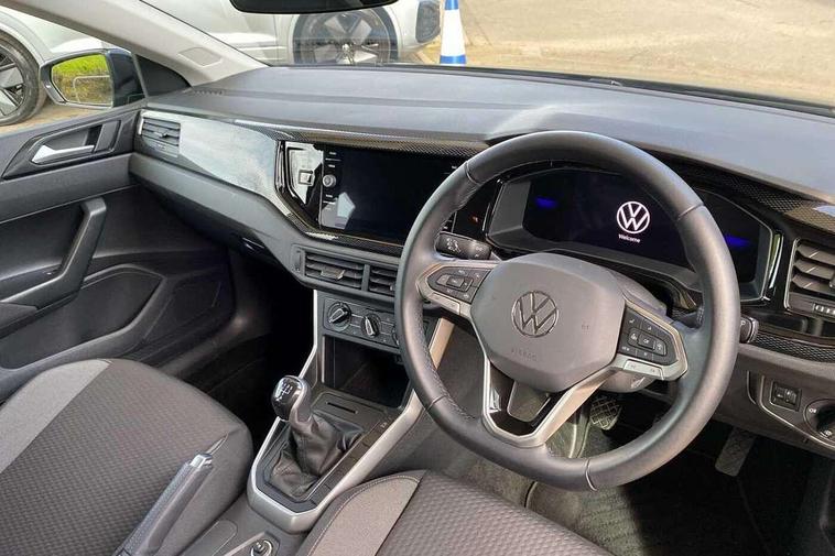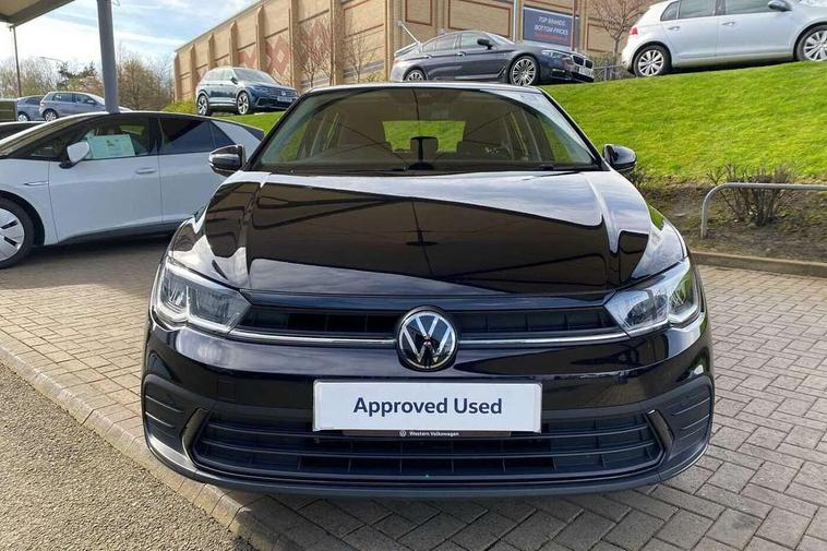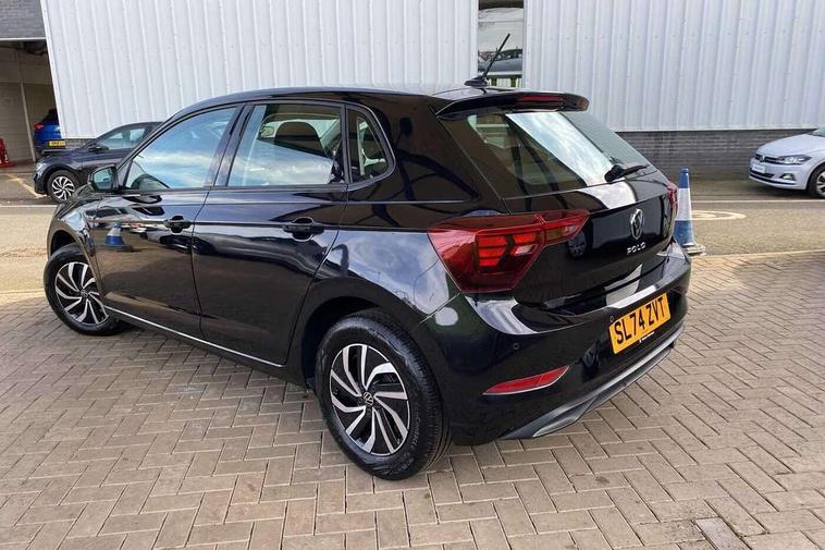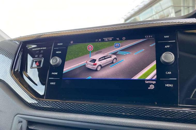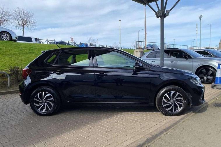 Advanced driver attention and drowsiness monitor, Bluetooth mobile phone interface, Cruise control + speed limiter, Dynamic road sign display, Emergency call service, Lane keeping system Lane Assist, Multifunction camera, Power assisted speed sensitive steering, Preparation for navigation system with media and internet package, Preparation for We connect and We connect plus, Speedo and rev counter, electronic odometer, trip, service interval display and exterior temperature gauge, Standard rear axle, Trip computer, Warning signal and warning light for front and rear seatbelts not fastened, Washer fluid level indicator, Wireless app connect, Front wheel drive, Rear shock absorpion, Start-stop system with battery regeneration (recuperation - energy recovery during braking), DAB Digital radio, Diversity antenna for FM reception, Front and rear 6 speakers, Automatic dimming interior rear view mirror, Automatic headlight control with LED separate daytime running lights with coming/leaving home function, Body colour bumpers with chrome inserts, Body colour door handles, Body colour door mirrors, Electric front windows, Engine badge deletion, Headlight range adjustment, Heat insulating and laminated safety glass windshield, Heat insulating darkened glass in side and rear windows, LED Headlights, LED rear combination lamps, Power folding adjustable/heated exterior mirrors and front passenger exterior mirror lowering function, Rain sensor, Rear electric windows, Rear fog light, Rear side wing doors, Rear windscreen washer and wiper with interval delay, Third brake light, 12V power socket in centre console, 2 front and 2 rear reading lights with switch off delay and dimmer, 2 USB-C ports in the front, 2 USB-C charging sockets on the center console in the rear, 3 rear head restraints, 60/40 split folding rear seat and rear seat bench not split, Ceramique roof lining, Chrome plated radiator grille inserts, air vent surrounds and light switch surrounds, Door and side trim panel, Driver and front passenger seat height adjustment, Driver/passenger sunvisors with illuminated vanity mirrors, Front centre armrest, Front seat backrest storage pockets, Front standard seats, Handbrake lever handle in leather, Hartley/Thomas cloth upholstery, Headliner in recycled material, Isofix child seat preparation easy-fit (for two outer rear seats, and front passenger seat) compatible with I-size, Leather trimmed gear knob, Luggage compartment cover, Luggage compartment lighting, Removable luggage compartment floor, Single front passenger seat, Standard climatic zones, Standard pedal cluster, Three spoke leather wrapped multifunction steering wheel, Light and vision pack - Polo, 3 point height adj front seatbelts + pretensioners, 3x3 point rear seatbelts, ABS, Driver and front passenger airbag with front passenger airbag deactivation, Drivers and front passengers safety optimised head restraints, ESC (Electronic stability control) + EDL (Electronic Differntial lock) and ASR (Traction control), Extended and predictive pedestrian/ cyclist protection, Front assist with autonomous emergency braking (for Adaptive Cruise Control ACC up to 130 mph), Front curtain and side airbags with center airbag, Front disc brakes, Hill hold control, Manual child lock in rear doors, Rear drum brakes, Single tone horn, Tyre pressure loss indicator, Alarm with interior protection, Anti-theft alarm system with interior monitoring, backup horn, and towing protection, Anti-theft wheel bolts, Electronic engine immobiliser, Lava stone black gloss/matt decorative inserts in dash and front door panels, Low rolling resistance tyres,