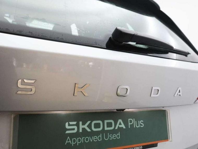 Advanced driver attention and drowsiness monitor, Bluetooth system, E-call, Front assist system, PAS, Rear parking sensors, Rear view camera, Service indicator, Speed limiter, Traffic sign recognition, Virtual cockpit with 10.25" display, Wireless smartlink, 4 USB C ports, 8 Speakers, 9.2" Skoda navigation display, DAB Digital radio, Auto dimming rear view mirror, Automatic headlight control with coming home and leaving home feature, Black roof rails, Body colour bumpers, Body colour door mirrors and handles, Chrome grille surround, Front and rear electric windows, Full LED headlights, Heated rear window, LED brake lights, LED daytime running lights, LED front turning lights, LED high beam, LED low beam, LED third brake light, Rear LED fog light, Rear side wing doors, Rear wiper, Ticket holder inside windscreen, 12V socket in luggage compartment, 3 seat bench in 2nd row, Black hotstamping, Cargo elements, Chrome inner door handles, Driver and passenger sun visors with vanity mirror, Dual zone climate control, Front and rear roof lights, Front centre armrest, Front head restraints, Glove compartment with illumination, Height adjustable driver seat, Height adjustable front passenger seat, Ice scraper, Inner circulation control with pollen filter, ISOFIX on front passenger seat, Isofix preparation for back seats, Krepp recycled decor inserts, Leather gearknob and handbrake lever, Loft cloth upholstery, Manual lumbar support for front seats, Net package and top tether hooks in boot space, Net under rear shelf, Overhead glasses storage compartment, Pocket on the back of both front seats include mobile phone pockets, Rake/reach adjustable steering wheel, Reading lights, Satin black door inserts, Single front passenger seat, Textile floor mats, Third rear headrest, Top tether for front passenger seat, Umbrella in driver's door, 3x3 point rear seatbelts, Airbags - driver and front passenger, Disc brakes, ESP, Extended and predictive pedestrian/cyclist protection, Front passenger airbag deactivation switch, Front side airbags with curtain airbags, Hill hold control, Manual leather parking brake, Manual rear child locks, One tone horn, Seatbelt reminder for driver an co-driver, Traction control, Tyre pressure monitor, Anti-theft alarm system with interior monitoring, backup horn, towing protection and remote central locking with SAFE system, Anti-theft wheel bolts, Electronic engine immobilizer,