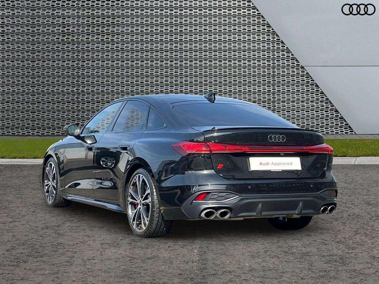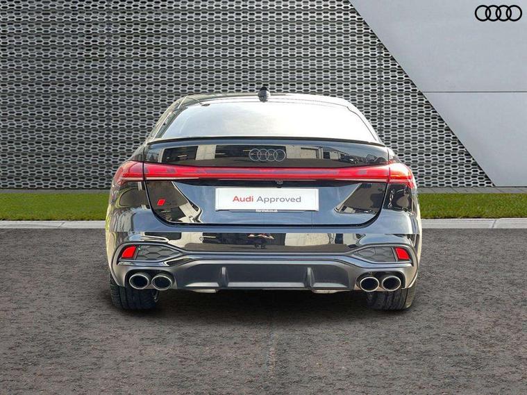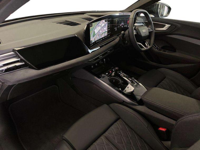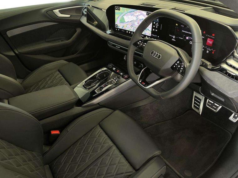 Adaptive cruise assist plus with steering intervention, Advanced driver attention and fatigue montior, Audi application store, Audi assistant, Audi connect emergency call and service, Audi drive select, Audi smartphone interface, Audi virtual cockpit plus with 11.9" OLED colour display, Automatic start/stop system with coasting functionality, Camera based traffic sign recognition, Garage door opener, Intersection assist, Lane change assistant with exit warning system, rear cross traffic alert and rear turn assist, Lane departure warning with emergency assist, MMI 10.9" front passenger touch display, MMI navigation plus with high resolution 14.5" OLED touchscreen colour display, Park assist plus, Parking system plus with 360 display, Progressive steering with servotronic, Swerve assist and turn assist, Top view camera, Traffic sign based speed limiter, Quattro with sport differential, S sports suspension with damper control lowered by 20mm, 2 USB-C ports in both the front and rear, DAB digital radio reception, Smartphone compartment with wireless charging, Aluminium window trims, Auto dimming rear view mirror, Black door handles, Black roof rails, Dark chrome-plated tailpipe trims, Digital OLED tail lights including communication light, Door mirrors - electrically adjustable, heated, folding and auto dimming on both sides, Front and rear electric windows, Front door sill trims with aluminium inlays, illuminated with 'S' logo, Headlight cleaning system, High beam assist, LED daytime running lights, LED third brake light, Matrix LED headlights with eight light signatures selectable via the MMI or the myAudi app, Panoramic glass roof with switchable transparency, Privacy glass, Rear and side windows with heat insulating glass, Rear side wing doors, Rear wash/wipe, Red S rhombus badging with S lettering on rear, S bumpers, radiator grille and diffuser in titanium matt black and diffuser insert in matt silver, White rhombus logo projection light in exterior mirrors, Windscreen with acoustic glazing, 3 rear headrests, 3 seat rear bench, 3 spoke leather steering wheel with multi-function buttons with touch control, flattened on top and bottom, with S badging and contrast stitching, 3-zone automatic climate control, 40:20:40 split folding rear seat bench with centre armrest and cup holders, Comfort front centre armrest, Electric steering wheel adjustment, Electrically adjustable front seats, Front and rear floor mats, Front sport seats plus with integrated headrest and S embossed logo, Headlining in black cloth, Heated front and outer rear seats, Heated steering wheel, i-Size child seat mounting on the front passenger side and outer rear seats, i-Size and top tether on the outer rear seats, Luggage compartment lid, electrically opening and closing, Memory function for driver seat, Pearl Nappa leather upholstery, Pneumatically adjustable lumbar support, Single front passenger seat, Stainless steel pedals and footrest, Steering wheel grips in perforated leather and shift paddles, Ventilation seat and massage function for the driver and front passenger, Black styling package plus - A5, Sound and vision pack - A5, 3x3 point rear seat belts, Acoustic vehicle alerting system, Convenience key with safelock, Driver airbag, Electric child safety locks, First aid kit with warning triangle and vests, Front emergency brake assist, Front passenger airbag, Front passenger airbag deactivation, Hill hold assist, Occupant detection in rear seat area, Proactive passenger protection system for front, sides and rear, Red brake calipers, Seat belt monitoring with rear seat occupant reminder, Side airbags in front and rear with head airbag system and front interaction airbag, Tyre pressure loss indicator, Anti theft alarm, Anti-theft wheel bolts, Keyless Go, Accent surfaces and control buttons in gloss black, Black dashboard with contrast stitching, Softwrap in Dinamica with contrast stitching, Upper and lower interior elements in dinamica microfiber, 20" 5 twin spoke design Audi Sport alloy wheels in metallic black and gloss turned finish, Tyre repair kit,