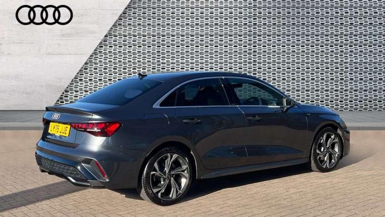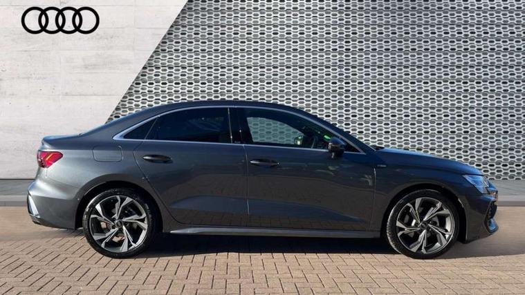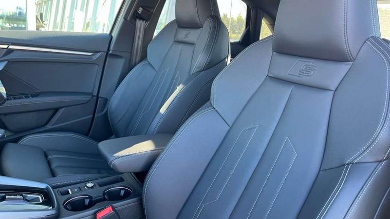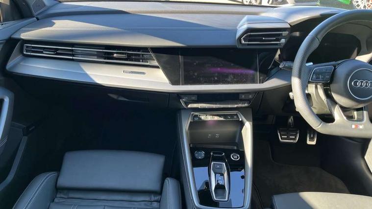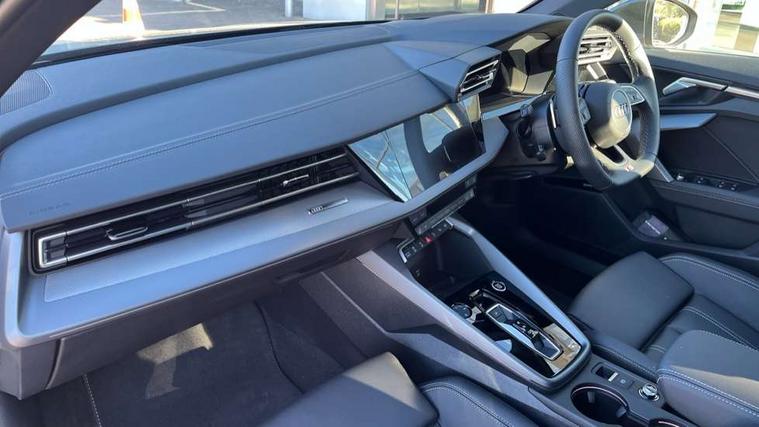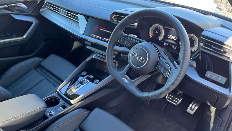 Adjustable speed limiter, Audi drive select, Audi smartphone interface with app store includes wireless Apple carplay, Android auto and Amazon alexa integration, Audi virtual cockpit plus - 12.3" full HD resolution dynamic digital instrument cluster, Automatic start/stop system with recuperation, Bluetooth interface, Camera based traffic sign recognition, Collision avoidance assistant, Cruise control, Distraction and Fatigue warning, e-Call (emergency call), Electromechanical power speed sensitive steering, Emergency assist, Lane departure warning system, MMI Navigation Plus with high resolution 10.1" colour touch screen display, Park Assist with parking system Plus, Service indicator, Trip computer, Voice control system with natural language interaction, Sports suspension, Audi Phonebox light with wireless charging, Audi sound system - 10 loudspeakers including centre loudspeaker and subwoofer, DAB Digital radio, USB ports with charging function in the rear, Acoustic glass windscreen, All weather light, Aluminium window trim, Auto dimming frameless rear view mirror, Automatic dynamic range control, Body colour exterior mirrors, Chrome exhaust tailpipes, Dipped beam, main beam, position light and turning light, Electrically adjustable/heated/folding/auto dimming door mirrors with integrated LED indications + kerb view function for passenger side, Exterior model badging, Front and rear side air inlets in grained matt black with dark liquid chrome frame, Front electric windows, Front radiator grill in high gloss dark chrome, Heat insulating glass windscreen, Illuminated door sills with aluminium inserts at the front with S logo, Intersection light, LED 3rd brake light, LED brake lights, LED daytime running x3, LED headlights with LED rear lights and dynamic rear indicators, LED rear number plate lights, LED reverse light, LED tail lights, Light and rain sensors, Manoeuvring light, Motorway light, Privacy glass - dark tinted rear window, rear door and side windows, Rear boot, Rear diffuser and grill in grained matt black with inlay in dark liquid chrome, Rear electric windows, Rear side wing doors, S line bumpers, Side S line emblems on front wings, Side sill trim in dark liquid chrome, Static cornering light, 12V socket and storage compartment in front centre console, 3 seat bench in 2nd row, 3 spoke flat bottomed leather multifunction sport steering wheel with gear shift paddles, 3-zone deluxe automatic air conditioning, 4 way electrically adjustable lumbar support for driver and front passenger, 40/20/40 split folding rear seat bench, Black cloth headlining, Black front and rear floor mats, Front and rear centre armrest in artificial leather with contrasting stitching on armrests and instrument panel, Front and rear headrests, Heated front seats, Height and reach adjustable steering wheel, Manual boot compartment lid, Manually adjustable front seats, Rear centre armrest with cupholder, S badging on the steering wheel, Seat side bolsters, Single front passenger seat, Stainless steel pedals and front footrest in black, Twin leather upholstery with front sports seats S embossed logo, Aluminium interior elements pack - A3, Multi-coloured LED interior lighting package with Multi-coloured contour lighting of instrument panel - A3, 3x3 point rear seat belts, Driver and front passenger airbag with passenger airbag deactivation, Electronic Stabilisation Control (ESC) including ABS, ASR and EDL, First aid kit with warning triangle and 2 safety vests, Front side airbags with head airbags and interaction airbag, Hill hold assist, Pre-sense front with pedestrian and cyclist detection, Seatbelt monitoring, Tyre pressure loss indicator, Anti theft alarm, Anti-theft wheel bolts, Electronically operated child locks, Immobiliser, Remote central locking with safelock, Black dashboard, Inlay in dark aluminium spectrum,