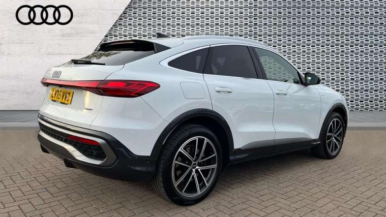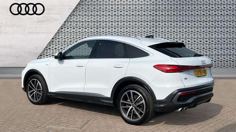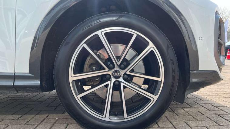 Adaptive cruise assist plus with steering intervention, Advanced driver attention alert, Audi application store, Audi connect emergency call and service, Audi digital key, Audi drive select, Audi smartphone interface, Audi virtual cockpit plus with 11.9" OLED colour display, Camera based traffic sign recognition, Fatigue monitor, Front cross traffic intersection assist, Garage door opener, Lane change assistant with exit warning system, rear cross traffic alert and rear turn assist, Lane departure warning with emergency assist, MMI 10.9" front passenger touch display, MMI navigation plus with high resolution 14.5" OLED touchscreen colour display, Park assist plus, Parking system plus with 360 display, PAS, Reversing camera, Swerve assist and turn assist, Top view camera, Traffic sign based speed limiter, Adaptive air suspension, 2 USB-C ports in both the front and rear, DAB Digital radio, Smartphone compartment with wireless charging, Acoustic glass for front door windows, Active digital light signatures - Six additional combinations of active daytime running light signature, Aluminium roof rails, Auto dimming rear view mirror, Body coloured door mirrors, Coming/leaving home lighting function, Digital OLED tail lights including communication light, Electrically adjustable heated and folding + automatically dimming exterior mirrors, Front and rear electric windows, Front door sill trims with aluminium inlays, illuminated with 'S' logo, Grill frame, inlay and front air inlets in matt anthracite chrome, Headlight cleaning system, Heated rear window, High beam assist, High gloss window surrounds, Logo projection light in exterior mirrors, Matrix LED headlights, Privacy glass, Projection third brake light for rear window in LED, Radiator grille in phantom black, Rear and side windows with heat insulating glass, Rear honeycombe grille in matt black with inlay in matt anthracite chrome, Rear side wing doors, Rear wash/wipe, S Line badge on the front wings, S line bumpers in contrasting Volcano grey metallic paint finish, Towbar preparation, Windscreen with acoustic glazing, 3 rear head restraints, 3 seat bench in 2nd row, 3 spoke leather steering wheel with multi-function buttons with touch control, flattened on top and bottom, with S badging and contrast stitching, 4 way electric lumbar support for driver and front passenger, 40:20:40 split folding rear seat bench with centre armrest and cup holders, Comfort centre armrest front, Deluxe 3 zone electronic climate control, Electric steering wheel adjustment, Electrically adjustable front seats with memory function for driver's side, Front and rear floor mats, Front sport seats with integrated head restraints, Headlining in black cloth, Heated front seats, Heated outer rear seats, Heated steering wheel, i-Size child seat mounting on the front passenger side and outer rear seats, i-Size and top tether on the outer rear seats, Interior trim in aluminium look, Luggage compartment lid, electrically opening and closing, Single front passenger seat, Softwrap in leatherette, Stainless steel pedals and footrest, Steering wheel grips in perforated leather and shift paddles, Twin leather upholstery, Ambient lighting package plus - Q5, Sound and Vision pack - Q5, Storage and luggage compartment pack - Q5, Vanadium pack - Q5, 3x3 point rear seatbelts, ABS, Acoustic vehicle alerting system, Convenience key with safelock, Driver and front passenger airbag with passenger airbag deactivation, Electric child safety locks, First aid kit with warning triangle and high visibility vests, Front emergency brake assist, Front side airbags with head airbag system and front interaction airbag, Hill hold assist, Occupant detection in rear seat area, Proactive passenger protection system for front, sides and rear, Side airbags in front and rear with head airbag system and front interaction airbag, Tyre pressure loss indicator, Anti theft alarm, Anti-theft wheel bolts, Remote control key with SAFELOCK and keyless go, Anthracite matt brushed aluminium inlays with linear embossing, Black dashboard with contrast stitching, Steel grey seat stitching, Upper and lower interior elements in artificial leather, 20" 5 twin spoke black metallic, gloss turned finish Audi Sport alloy wheels, Tyre repair kit,