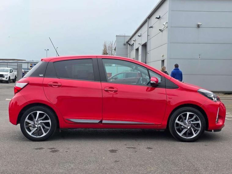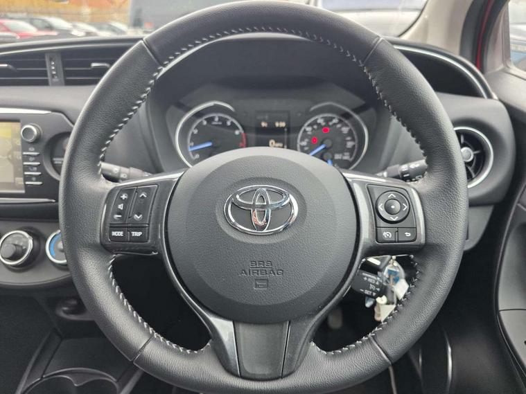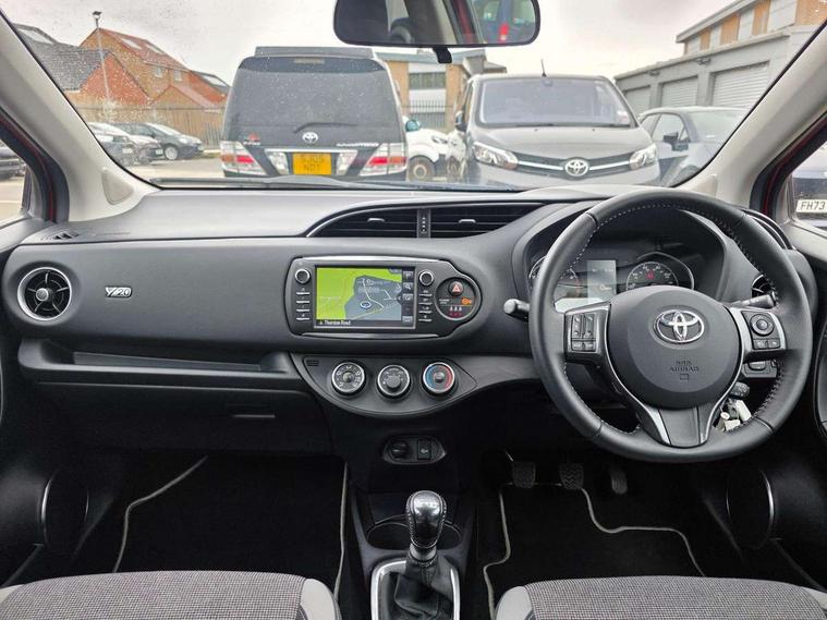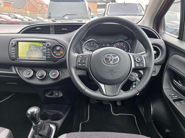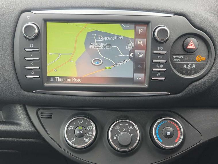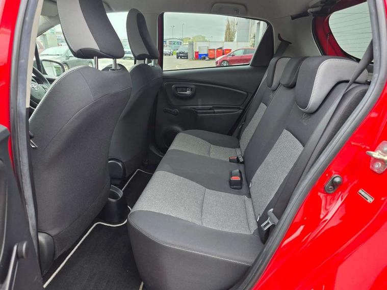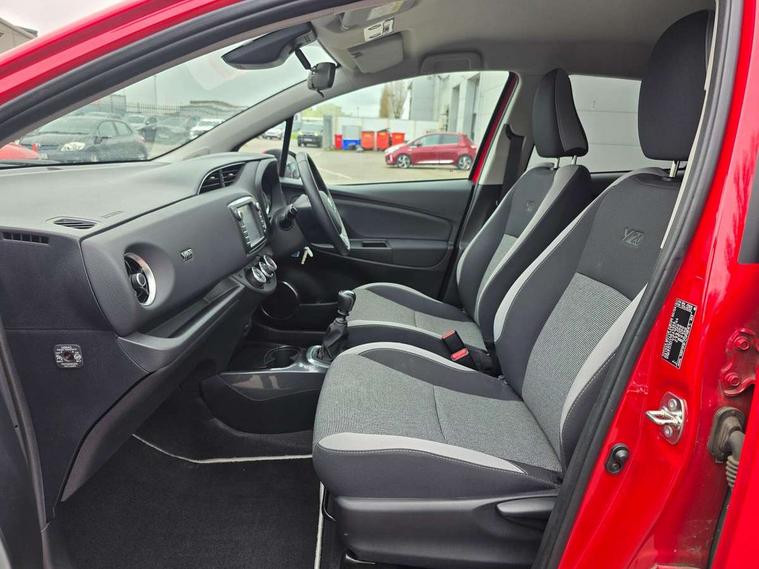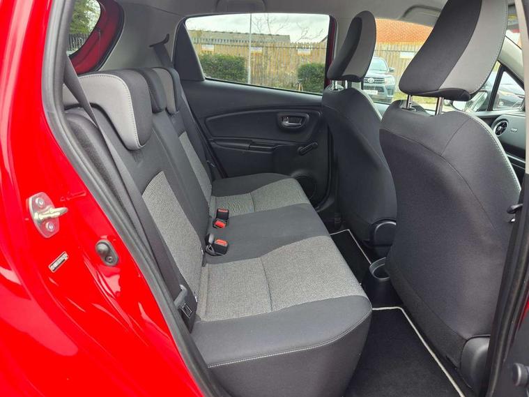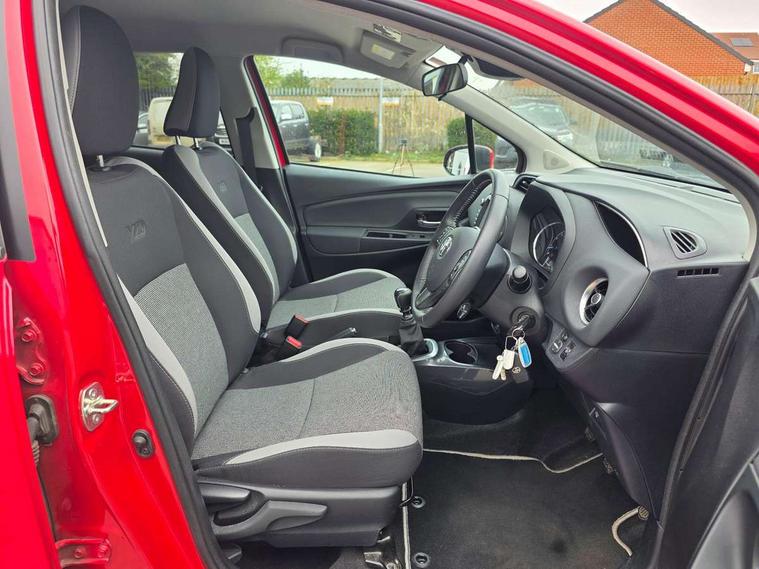 4.2" coloured LED TFT multi information display, Analogue speedometer, Analogue tachometer, Auto speed limiter, Bluetooth connectivity, Cruise control, External temperature gauge, Fuel indicator with low level warning, Key reminder warning, Lights on warning, Multi information display switches on steering wheel, Power Steering, Reversing camera, Trip computer, 6 speakers, Auxiliary input socket, Steering wheel mounted audio/telephone switches, Toyota Touch 2 with DAB, USB connection, Auto up and down function on drivers window, Automatic wipers, Bi-tone grey roof, Black lower front grille, Body colour bumpers, Body colour door handles, C pillar decal, Daytime running lights, Electric adjustable heated door mirrors, Electric front windows, Follow me home headlights, Front fog lights, Grey contrasting colour door mirrors, Grey door moulding, Grey door side sills, Grey front grille and fogs, Headlight cut-off reminder, LED High mounted stop lamp, Manual dimming rear view mirror, Privacy glass, Projector headlights, Rain sensitive windscreen wipers, Rear combination lights bulb type, Rear window defogger, Rear wiper, Turning signal integrated indicators in door mirrors, Y20 Badging, 12v power outlet - front, 3 adjustable rear headrests, 3 spoke leather steering wheel, 60/40 split folding rear seat, Active headrests, Boot light, Data Communication Module (DCM) connected services, Driver and front passenger personal light, Driver and front passenger Whiplash Injury Lessening seats, Fabric upholstery, Front and rear cup holders, Front map reading lights, Front seats with lumbar support, Glovebox, Height adjustable driver's seat, Height adjustable front head restraints, Illuminated entry system, Isofix seat fixing, Leather gearshift, Manual air conditioning, Map pockets on the backs of the front seats, Pollen filter, Removable rear parcel shelf, Sliding front seats, Soft touch inner door garnish, Tilt/telescopic steering column, Y20 badge interior and in seat trim, 3 point seatbelts on all rear seats, ABS+EBD+Brake assist, Collision mitigation braking system, Emergency brake light system (EBS), Front passenger airbag on/off switch, Front seatbelt reminder, Height adjustable front seatbelts with pre-tensioners and load limiters, Hill start assist control (HAC), Rear child proof door locks, Rear seat belt reminder, Road sign information display, Seatbelt warning lamp and buzzer, Supplemental restraint system (SRS) airbags - 7 airbags including driver, front passenger, curtain, side and knee airbags, Toyota safety sense including Road sign assist, Pre collision system, auto high beam and lane departure alert), Tyre pressure warning system, Vehicle stability control VSC + traction control, Engine immobiliser, Power and remote door locking, Interior satin accents, Soft touch instrument panel, 16" 10 spoke grey machined alloy wheels, Space saver spare wheel,