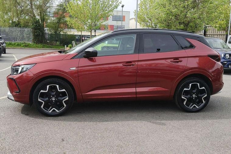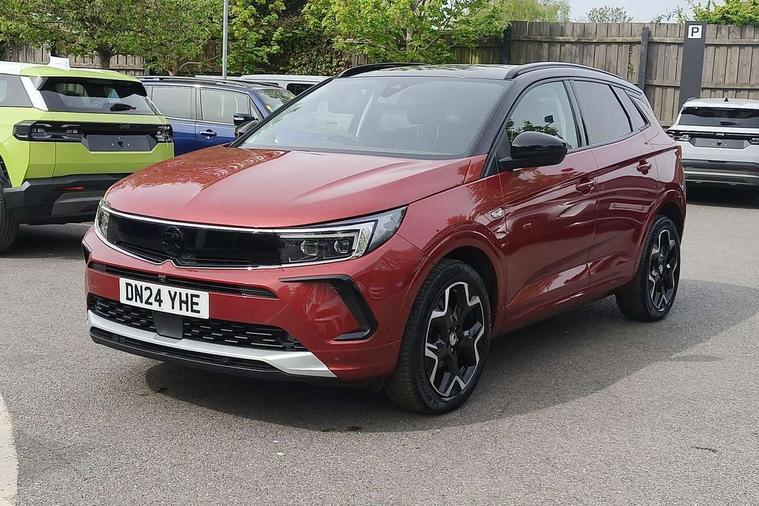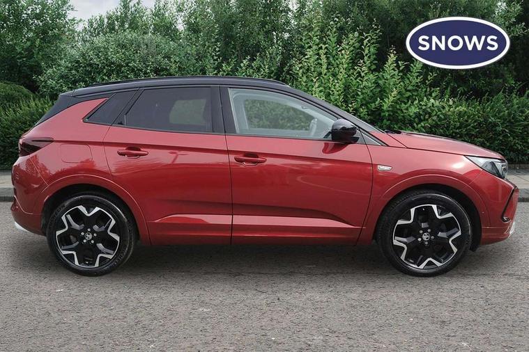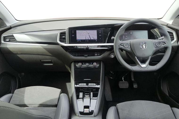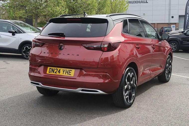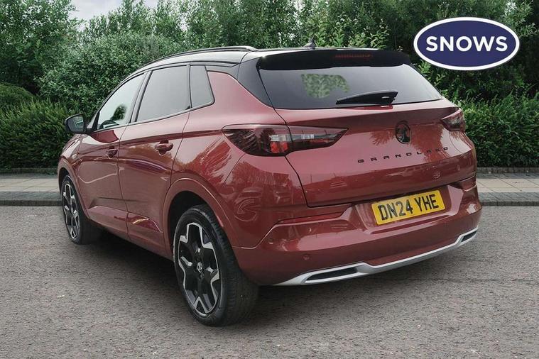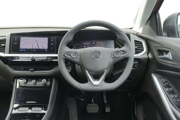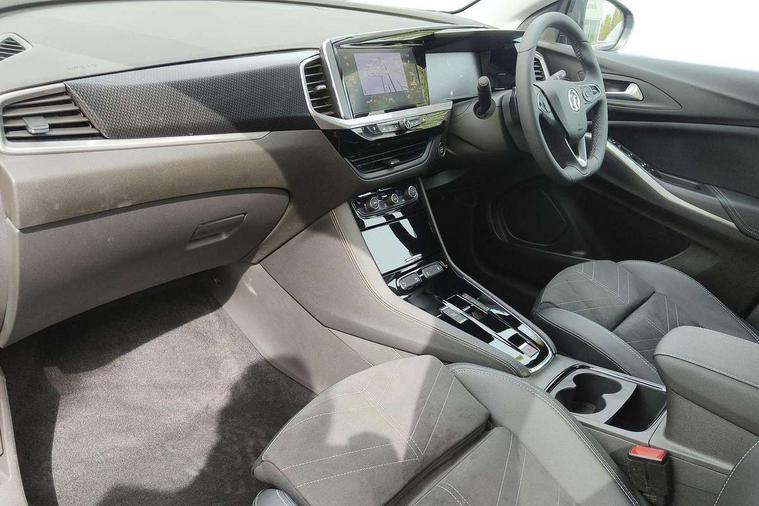 Central facia display with digital clock, outside air temperature and audio information, Digital fuel gauge with low fuel level warning light, Digital rev counter, Digital speedometer, Digital water temperature gauge with warning light, Drive mode selector (Eco, Normal, Sport), Driver drowsiness alert system, Driver information - Total mileage, service indicator, oil life, Front and rear parking distance sensors with 360 degree rear view camera and advanced park assist, Gearshift up/down indication light, Highway integration assist (Lane positioning assistant and Adaptive cruise control), Lane departure warning system, Lane keep assist, Lights on audible warning, Multi function trip computer - Trip odometer, vehicle range, average speed and fuel economy, instantaneous fuel economy and driving time, Multimedia Pure Panel Navigation System incl 10" colour touchscreen, 12" digital instrument cluster & satellite naviagtion, Power operated tailgate with foot sensor, Side blind spot alert, Speed sensitive electric power assisted steering, Speed sign recognition, Start/stop system, Vauxhall connect including Emergency call (SOS e-call) and Breakdown call (b-call), Wireless charger for mobile devices, Anti-roll bars, Compound crank rear suspension with coil springs and gas pressure dampers, Independent decoupled MacPherson strut front suspension with gas pressure dampers and coil springs, anti-roll bar, Six speaker - four front + two rear, Steering wheel mounted audio/phone/cruise controls, Automatic lighting control, Automatically dimming anti dazzle rear view mirror, Black door mirrors, Black side window trim, Body colour door handles, Body colour lower front and rear bumpers, protective wheel arches and lower door cladding, Body colour upper front bumper, Collapsible windscreen wipers, Dark tinted rear windows, Door to door illumination, Electric adjustable/heated/folding door mirrors, Electrically operated front and rear windows with safety auto reverse and one touch up/down facility, Front wiper system spraying directly from wipers, Hazard warning lights, Heated rear screen with timed cut off, Heated windscreen, High beam assist, High gloss black exterior detailing, High gloss black Griffin for Vizor and tailgate with high gloss black Grandland tailgate lettering, High gloss black roof rails, High level centre rear brake light, IntelliLux adaptive LED pixel headlights and LED tail lights, Intermittent rear window wash/wipe, LED daytime running lights, LED front fog lights, Magic wash, Manual headlight beam levelling, Rain sensor windscreen wipers, Rear side wing doors, Rear spoiler, Reversing light, Shark fin aerial, Silver effect protective front and rear skid plate, Soundproof insulated windscreen, Two speed windscreen wipers with variable intermittent wipe, Upper and lower bumper design, Vizor front grille, Welcome lighting, 12V electrical accessory socket in front, 3 bench rear seats in 2nd row, 3 spoke heated flat bottom leather effect steering wheel with satin chrome effect bezel, 6 way adjustable Ergonomic active heated sports style front seats AGR approved with seat cushion extension and lumbar adjustment, 60/40 split folding rear seat with centre rear seat armrest and load though facility, Advanced predictive logic control system using a sun sensor, Alcantara upholstery, Ambient centre console downlighter, Automatic air direction and fan speed with manual override, Charcoal filter, Chrome effect interior door handles, Covered storage compartment in centre console and in driver armrest, Driver's centre armrest, Driver/passenger sunvisors with illuminated vanity mirrors, Dual zone electronic climate control, Front door pockets with 2.6 litre capacity, Front seat back storage pockets, Fully carpeted luggage area, Height adjustable headrests, Illuminated luggage area, ISOFIX on front passenger and rear outer seats, Luggage compartment cover, Reach + rake adjustable steering column, Rear centre seat head restraint, Rear door pockets with 1.8 litre capacity, Rear passenger compartment heating ducts, Rear reading lights, Two drinks holders in centre console, Anti-lock braking system (ABS), Automatic emergency braking with pedestrian detection, Child proof locks on rear doors, CSC - Cornering stability control, Deactivation switch for front passenger front and side impact airbags, Deflation detection system, Driver airbag, Dual seatbelt pretensioners on front seats, EBD - Electronic brakeforce distribution, Electronic parking brake, Electronic stability program (ESP) including traction control, Forward collision alert, Front brake ventilated disc 304mm diameter, Front passenger airbag, Front seat side impact airbags, Full-size curtain airbags for driver and front passenger, Hill start assist, Hydraulic Brake Assist (HBA), Inertia reel lap and diagonal seatbelts for all seats, Load limiters on outer rear seatbelt retractors, Pretensioners on outer rear seatbelt retractors, Rear brake ventilated disc 268mm diameter, Smart seatbelt reminder for front and rear seats, Tyre pressure monitoring system, Central locking, Deadlocking system, Electronically protected audio equipment, Engine deadlock immobiliser, Keyless entry and start, Locking wheel nuts, Remote security alarm system, Black door panels with black premium leather effect inserts, Dax decor facia panel with palladium medium finish, 19" diamond cut bi-colour alloy wheel,