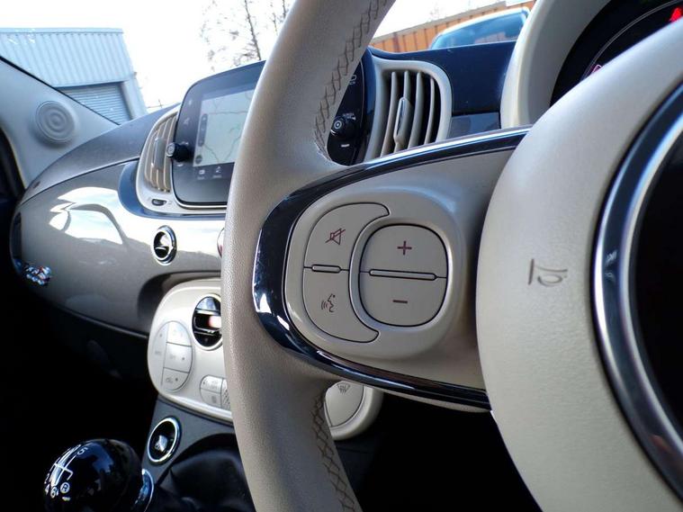8 buttons on steering wheel, Apple car play/Android Auto, Cruise control, Dualdrive PAS, External temperature gauge, Rear parking sensor, Speed limiter, Stop/start system, Trip computer, 6 speakers, Body colour bumpers, Chrome plated exterior door handles, Dusk and rain sensors, Electric front windows, Front fog lights, Heat insulated glass, Hybrid logo on rear, LED daytime running lights, 1 passenger grab handle, 50/50 split folding rear seats with height adjustable rear headrests, Auto climate control, Auxilliary 12V power socket, Chrome kit, Front headrests, Height adjustable drivers seat, Height adjustable steering wheel, Isofix child seat preparation, Techno leather steering wheel with audio controls, Navi pack - 500C, 7 airbags - Driver, passenger, side, window and drivers knee airbags, ABS/EBD, ESC + ASR/MSR + HBA + Hill holder, Passenger airbag deactivation system, Traction control, Tyre pressure monitoring system, Automatic door locking, Immobiliser, Locking fuel filler cap, Remote central locking,