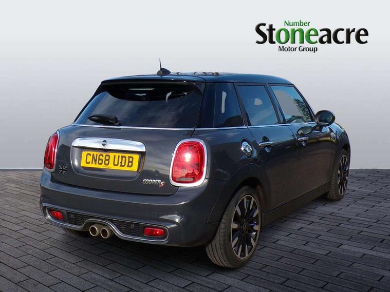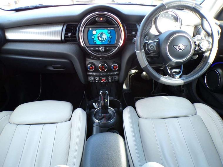 Compatible mobile phone bluetooth with audio streaming, Cruise control with brake assist, Instrument cluster, Mini E-call, MINI TeleServices, On board computer, Service interval indicator, Performance Control, Steptronic sport transmission with double clutch and steering wheel paddles, 6.5" touchscreen with LED ring, FM tuner and DAB digital radio, Automatic headlight activation switch, Bonnet scoop, Chrome border honeycomb structure radiator grille with S badge, Chrome plated fuel cap, Dynamic brake lights, Electric front+rear windows, Heated rear window, Heated windscreen washer jets, LED headlight with closed ring and daytime driving lights, Metal door sill strips with Cooper S imprint, Model logo Cooper S on right of tailgate, Rain sensor window wipers, Rear fog lights, Rear LED lights with union jack design, Rear window wiper, Side scuttle panel with integrated indicator, Sun/heat protection glass, Two central exhaust tailpipes with chrome finisher, White indicator lenses, 12V Accessory socket in centre console, 4 lashing eyes in luggage compartment, 60/40 split folding rear seat, Chrome interior highlights, Cupholders, Front and rear isofix with front passenger airbag deactivation, Glove compartment, Height and length steering column adjustment, Interior lighting with 12 basic colours selectable via toggle switch in roof, Leather gearshift lever and handbrake gaiters, Manual air conditioning, Mechanical seat adjustment, driver seat height adjust, forward/back and front seats backrest, Mini logo projection on floor from drivers exterior mirror, MINI Yours leather steering wheel with silver contrasting stitching with MINI Yours badge, Multifunction steering wheel, Satellite grey headlining, Storage compartments in doors, Storage pocket on back of front seats, Sunvisors with vanity mirrors, Tool kit, 3 point seatbelts on all five seats, 6 Airbags - front, side, head and seat belt tensioners, Anti-lock braking system (ABS), DSC - Dynamic Stability Control, Front and rear disc brakes, Hill start assist, Two tone horn, Tyre pressure monitoring system, Alarm system with tilt sensor, monitoring doors, bonnet interior and tailgate, Electronic vehicle immobiliser, Start/stop toggle with keyless go, Chrome line interior,