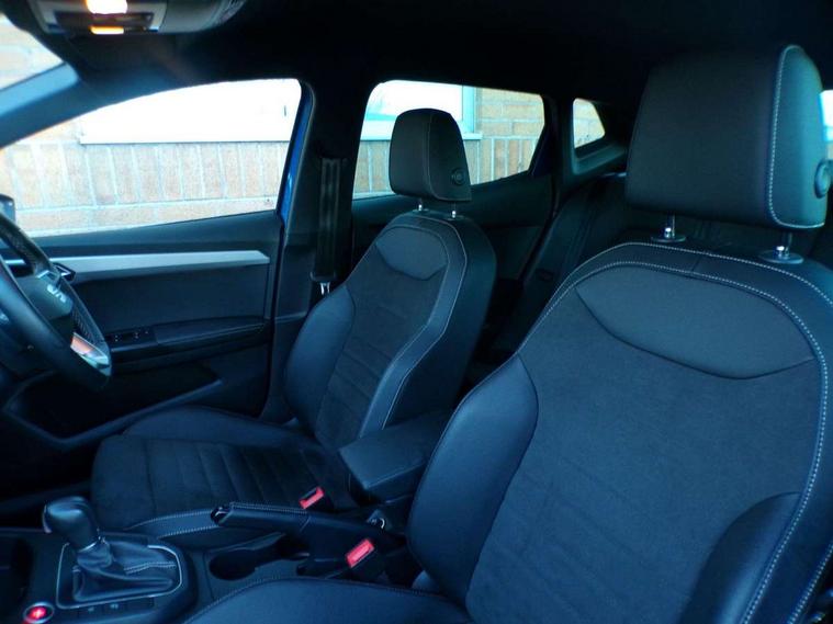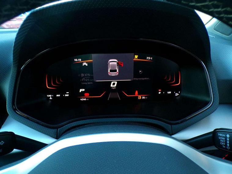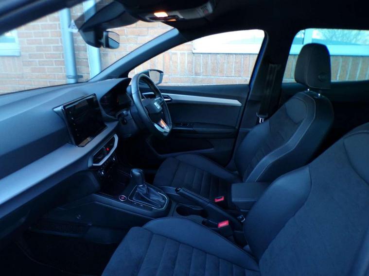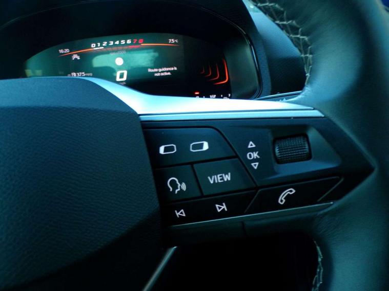 'Lights On' Reminder warning buzzer, 8" Digital cockpit, 9.2" touchscreen navigation system with type C USB socket, Voice control and DAB/AM/FM radio, Auto start and stop system, Bluetooth audio streaming with handsfree system, Digital clock, E-call, Full link smartphone integration with mirror link, wireless apple carplay, Google android auto + USB Type C cable for apple and android devices, Lane assist, Low fuel warning light, Outside temperature gauge, Power Steering, Rear parking sensor, Seat connect with safety, service, remote and online, SEAT logo boot release, Speed limiter, Trip computer, Comfort suspension, Auxiliary input socket, Radio/MP3 player, SD card slot, Steering wheel mounted controls, Anti theft roof antenna, Atom grey door mirrors, Auto dimming rear view mirror, Automatic rain sensing wipers, Body colour bumpers, Body colour door handles, Chrome window surround and upper grille surround, Dark tinted rear windows, Electric adjustable/heated/folding door mirrors, Electric front windows, Electric headlight adjustment, Electric rear windows, Front/rear fog lights, FULL LED automatic headlights with dynamic headlight range control, coming and leaving home, LED daytime running lights, LED tail lights, Rear side wing doors, Rear wiper, Third brake light, 3 seat bench in 2nd row, 60/40 split folding rear seat, Ambient interior lighting, Chrome detailing and black headlining, Comfort seats, Dual zone climate control with combination filter, Front centre armrest, Front courtesy lights, Front cupholders x 2, Front reading lights, Gear shift indicator, Glovebox, Height adjustable front and rear headrests (five), Height adjustable front seats, Height/reach adjust steering wheel, Illuminated air vent surrounds, Illuminated boot, Instrument lighting with brightness control, Isofix, Leather multifunction flat bottomed sports steering wheel, Microsuede cloth upholstery, Passenger sunvisor, Single front passenger seat, Storage pockets on back of front seats, Sunvisors with mirror and driver side card holder, 3 point seatbelts on all 3 rear seats, ABS, Active front headrests, Child locks on rear doors, Electronic stability control, Energy recovery system, Front assist forward collision warning and autonomous emergency braking, Front driver and passenger side airbags with curtain airbag and front passenger airbag deactivation, Hill hold control, Multi-Collision braking, Seat belt reminder for front and rear seats, Tiredness recognition system, Tyre pressure monitoring system, Electronic engine immobiliser, KESSY Keyless entry and go, Locking wheel bolts, Perimeter alarm and interior monitoring with backup horn and tow away protection, Remote central locking + deadlocks, 17" Dynamic machined alloy wheels in Nuclear grey,