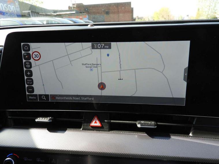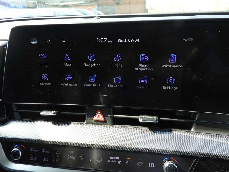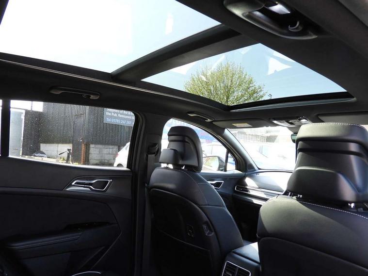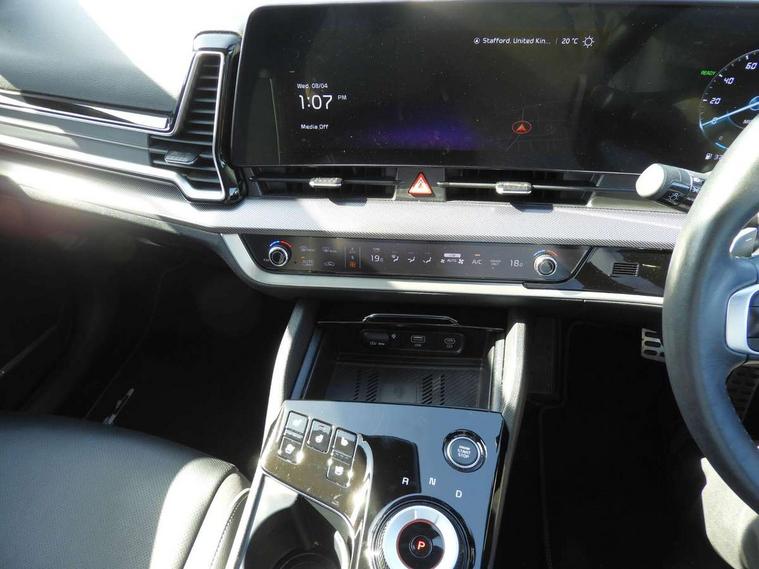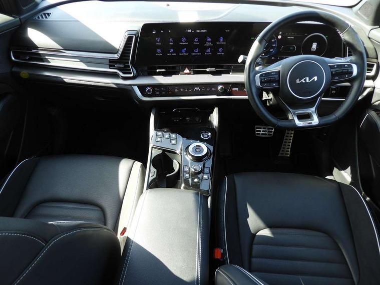 12.3" Display with navigation, 12.3" supervision colour cluster display, 360 degree around view monitor, Apple car play/Android Auto with voice control, Blind spot collision avoidance assist, Blind spot view monitor, Drive mode selector, E-call, Forward collision avoidance assist (FCA) - city/pedestrian/cyclist/junction covering, Front and rear parking sensors, Highway Driving Assist (HDA), Intelligent speed limit assist, Kia Connect (UVO), Lane Following Assist (LFA), Lane keep assist, Low washer fluid warning, Parking collision avoidance assist (PCA), Remote smart parking assist, Reversing camera system integrated into centre fascia screen, Smart cruise control with stop and go functionality, Smart power tailgate, Speed sensitive power steering, Trip computer, Windscreen washer level indicator, Wireless Smartphone charger, Intelligent Stop and Go, Terrain mode select (Mud, Snow, Sand), Bluetooth audio streaming, DAB Radio with MP3, Harman Kardon premium sound system, Rear USB port, Steering wheel mounted audio controls, USB C type charging ports on centre console, USB C type charging ports on side of front seats, USB port for connection of a media device, All round electric windows with drivers and front passenger auto up/down function, Automatic headlight control system, Automatic window defogger, Backlite glass heated with timer, Body colour and black bumper with silver accents, Body colour exterior door handles, Body colour radiator upper garnish and door garnish, Dual LED adaptive headlamps, Electric panoramic glass sunroof (Electric one touch with safety function), Electrically adjustable/heated/folding door mirrors with LED indicators, Front and rear skid plate - chrome, Gloss black door mirrors, Gloss black radiator grille, Gloss black side sill and wheel arch body mouldings, Glossy black roof rack, High beam assist, Interior electrochromic mirror, LED daytime running lights, LED front fog lamps, LED High mounted stop light, LED rear combination lamp, Rain sensing wipers with aero blades, Rear fog lamp, Rear privacy glass, Rear side wing doors, Rear spoiler, Rear wiper, Satin finished beltline, Silver coloured inserts to bumpers, Tinted rear glass, Trailer stability assist, 10 way driver/8 way passenger electrically power adjustable seats, 12V power socket in front centre fascia and luggage compartment, 3 seat bench in 2nd row, 3 x passenger assist grips, 40/20/40 split folding rear seat, All-round height adjustable headrests, Ambient lighting, Black headlining, Centre console storage box, Cupholders in rear armrest, D-Shaped sports leather steering wheel and perforated inserts with GT-Line logo, Door courtesy lamps, Drink holder at centre armrest, Driver and front passenger side sunvisors with illuminated vanity mirrors, Driver seat memory function, Drivers seat power lumbar support, Front and rear door storage, Front seat and rear pockets, Front/rear centre armrests, Gear shift indicator, Glovebox illumination, Heated front and outer rear seats, Heated steering wheel, Interior door lock/unlock function, ISOFIX Child seat top tethers and anchor fixings outer rear seats, LED interior personal lamp, LED lighting in overhead console, Luggage area LED light, Luggage area load cover, Luggage net with hooks, Metal paint interior door handles, Paddle shift controls, Rear cabin light, Rear coat hooks, Single front passenger seat, Sports pedals, Suede leather upholstery, Three zone climate control, Tilt/telescopic adjustable steering wheel, Ventilated front seats, Ventilation ducts to rear compartment, Active front headrests, All round 3-point seatbelts, Anti-lock braking system (ABS), Dual front side airbags, Dual horn, Electronic parking brake, Electronic stability control with downhill brake control, Front passenger airbag cut-off switch, Front seatbelt pretensioners + load limiters, Height adjustable front seatbelts, Hill start assist control (HAC), Impact sensing auto door unlocking, Multi collision brake assist, Rear door child safety locks, Rear seat alert system, Traction control, Twin curtain airbags, Twin front airbags, Tyre pressure monitoring system, Advanced anti-theft system including immobiliser and alarm, Door deadlocks, Engine Start/Stop Button with Smart Entry System, Locking wheel nuts, Speed sensitive auto door locking, Visible vehicle identification number, Aluminium pattern finish centre fascia and door garnish, 19" GT-Line alloy wheels, Michelin tyres, Tyre mobility kit,