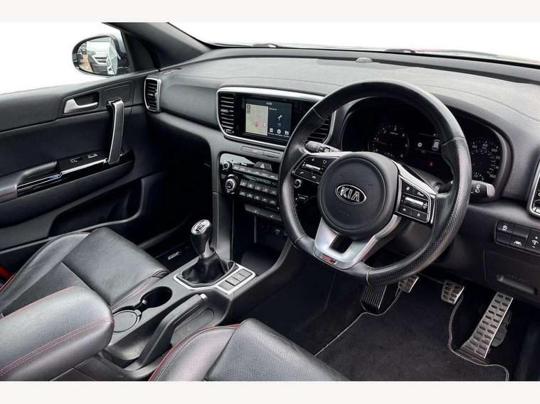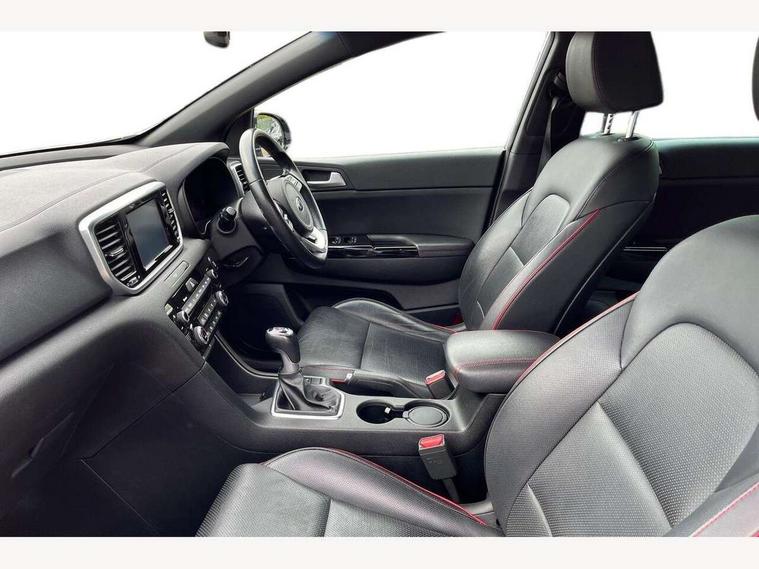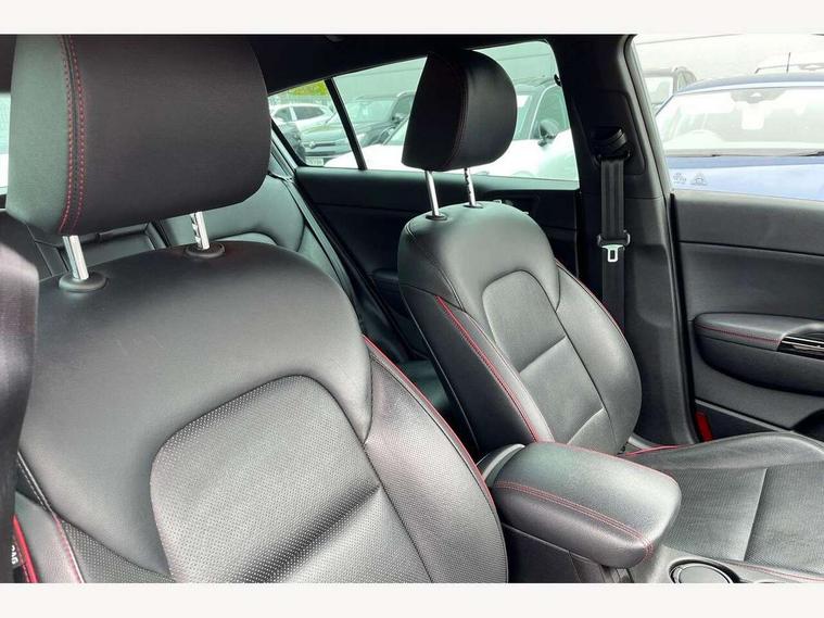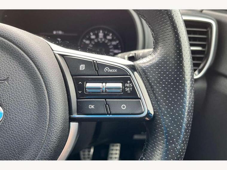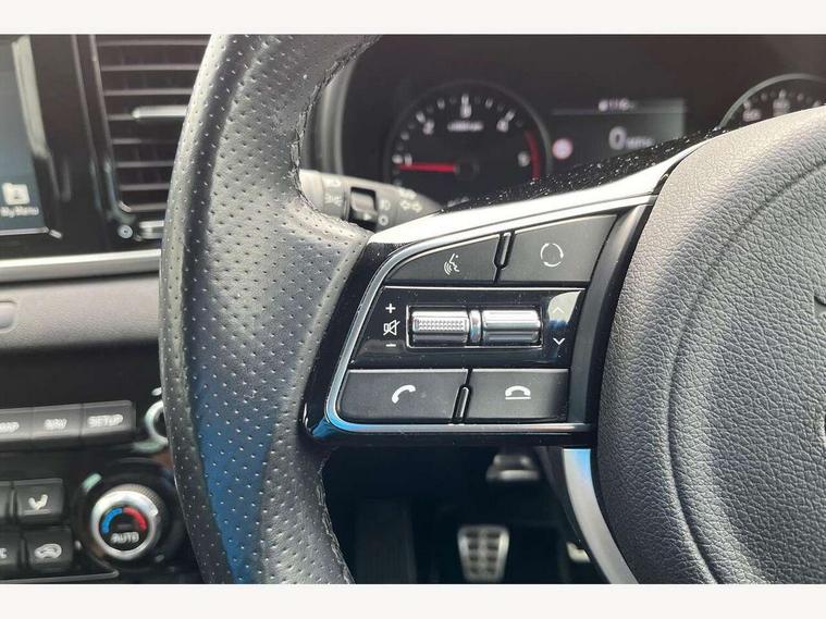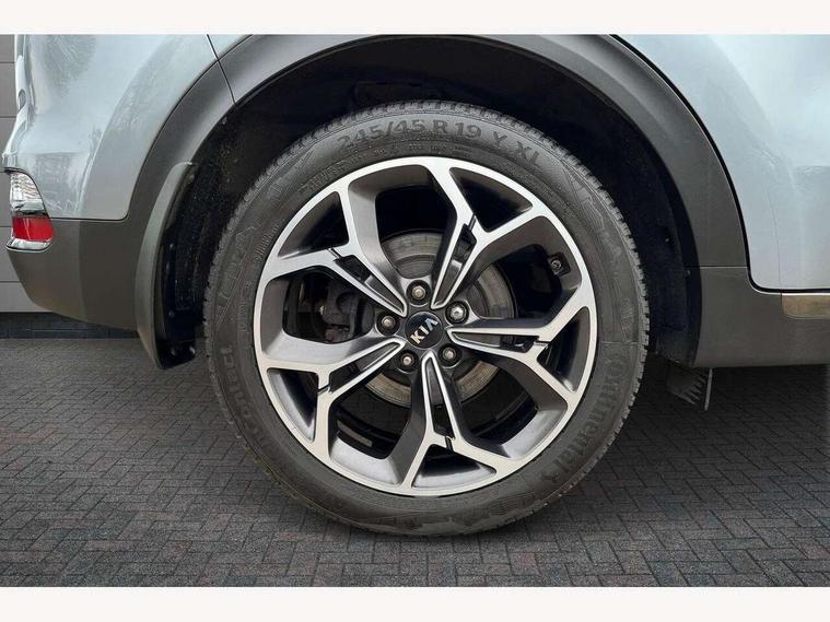 4.2" supervision colour cluster display, 7" touchscreen satellite navigation with European mapping and traffic messaging channel, Android auto with voice control, Apple car play with voice control, Bluetooth connectivity with voice control, Cruise control + speed limiter, Driver attention warning, Emergency stop signalling system, Front parking sensor, Kia connected services featuring TomTom live, Lane keep assist, Rear parking sensor, Reversing camera, Speed limit information, Speed sensitive power steering, Trip computer, Windscreen washer level indicator, Intelligent Stop and Go, 6 speaker audio system, Bluetooth audio streaming, DAB Radio with MP3, Rear USB port, Steering wheel mounted audio controls, USB/iPod/auxiliary input connections, All round electric windows with drivers auto up/down function, Auto dimming rear view mirror, Automatic headlights, Automatic lighting control, Black wheel arch body mouldings and side sills with dark chrome insert, Body colour door handles with chrome inserts, Body colour door mirrors, Chrome window surround, Dark chrome front bumper insert, Dark chrome grille surround, Dual exhaust pipes, Electrically adjustable/heated/folding door mirrors with LED indicators, Front wiper de-icer, High beam assist, High gloss black blade mesh radiator grille, LED Bi-Function headlights, LED daytime running lights, LED ice cube front fog lights, LED rear lights, Privacy glass (rear side windows and rear screen), Rain sensing front wipers, Rear spoiler, Rear wiper, Roof rails, Shark fin antenna, Silver painted front and rear skid plates, Speed sensitive front wipers, Tinted glass, Trailer stability assist, Welcome and follow-me home light functionality, Wide view drivers door mirror, Windscreen wiper de-icer, 12V power in front and rear centre console, 3 x passenger assist grips, 60/40 split folding rear seat, Air filter, All-round height adjustable headrests, Aluminium door scuff plates, Aluminium pedals, Black headlining, Centre cabin light, Centre console storage box, Chrome boot sill guard, D-Shaped sports leather steering wheel and perforated inserts with GT-Line logo, Door armrest in leather, Driver and front passenger side sunvisors with illuminated vanity mirrors, Driver's seat manual height adjust, Drivers seat power lumbar support, Dual zone automatic air conditioning, Front and rear door storage, Front cabin LED map light with sunglasses case, Front door courtesy reflectors, Front seat and rear pockets, Front/rear centre armrests, Gear shift indicator, Glovebox illumination, Heated front and outer rear seats, Interior door lock/unlock function, ISOFIX Child seat top tethers and anchor fixings, Leather trimmed gearshift, Leather upholstery, Luggage area light, Luggage area load cover, Luggage net with hooks, Rear centre armrest with cupholder, Rear coat hooks, Satin chrome interior door handles, Tilt/telescopic adjustable steering wheel, Ventilation ducts to rear compartment, Active front headrests, All round 3-point seatbelts, Anti-lock braking system with electronic brakeforce distribution, Dual front side airbags, Electronic stability control with downhill brake control, ESP + traction control, Front passenger airbag cut-off switch, Front seatbelt pretensioners + load limiters, Height adjustable front seatbelts, Hill start assist control (HAC), Impact sensing auto door unlocking, Rear door child safety locks, Twin curtain airbags with roll over sensor, Twin front airbags, Tyre pressure monitoring system, Advanced anti-theft system including immobiliser and alarm, Door deadlocks, Engine Start/Stop Button with Smart Entry System, Locking wheel nuts, Speed sensitive auto door locking, Visible vehicle identification number, High gloss black centre fascia, 19" alloy Wheels B-type, Tyre mobility kit,