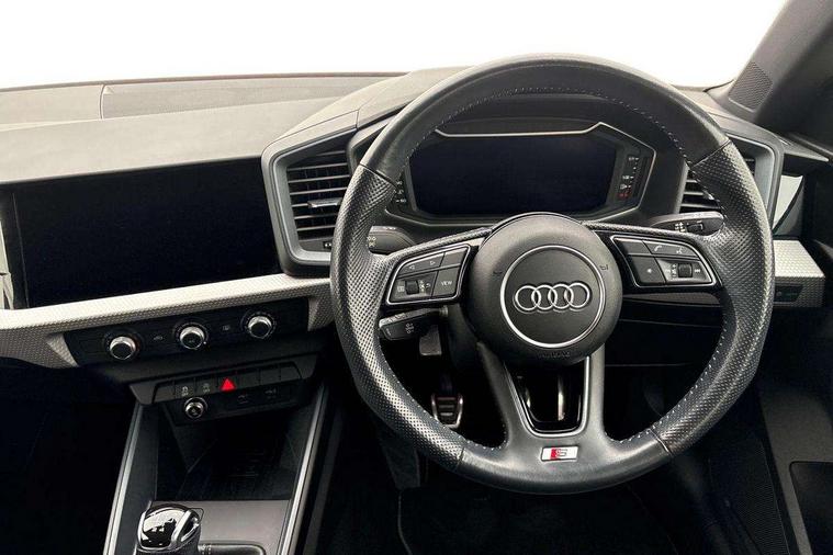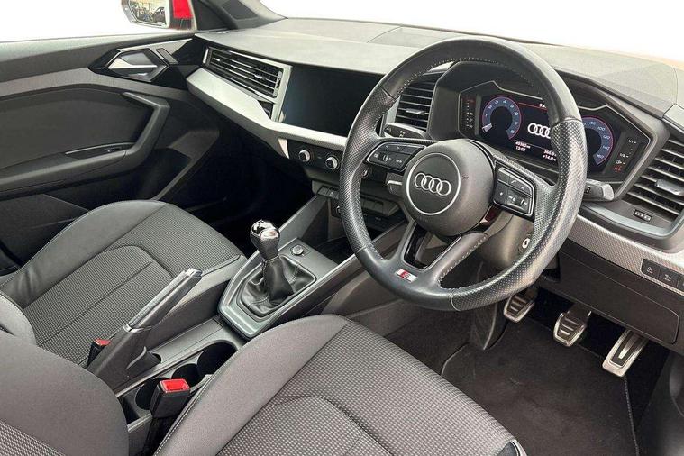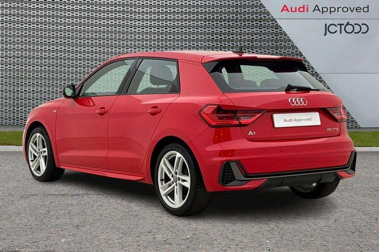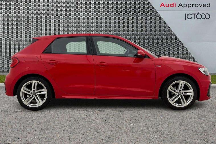 10.25" Digital instrument cluster display classis style instrument dials + speed, odometer, time, outside temperature, telephone menu + fuel level warning, Audi connect safety emergency and service including E-call, Audi smartphone interface with connect compatible smartphone via USB directly MMI display + Nav, music, third party apps controlled via MMI controller, Automatic start/stop system, Bluetooth interface, Cruise control, Driver's information system, Electromechanical power steering, Lane departure warning system, Rear parking sensor, Service interval indicator, Speed limiter, Voice control system, Washer fluid level indicator, Sports suspension, 1 x SDXC card reader, 1 x USB type C and 1 USB type A charging points, DAB Digital radio, MMI radio plus with 8.8" colour MMI display screen and MMI touch, Auto dimming rear view mirror, Body coloured door mirrors, Door sills with aluminium inlays and S Line logo, Electric front and rear windows, Electrically adjustable, heated, folding door mirrors with integrated LED side indicator, Front side air inlets in grained matt black and C frame in titanium black, Heat insulating glass windscreen and side windows, Heated rear windscreen, LED headlights with LED rear lights + dynamic rear indicators + headlight adjustment and high beam, turning light + LED daytime running lights, Radiator grille and rear diffuser in matt titanium black, Radiator protective grille frame in matt aluminium silver, Rain and light sensors, Rear fog lights, Rear wiper, S line badges on front wings, Side front spoiler lips in grained matt black, 12V socket in centre console with two cup holders, 3 rear seats with headrests, 40:60 Split folding rear seat or folded fully, Black cloth headlining, Driver and passenger seat with manual height adjust with forward and backwards adjustment, Front and rear black floor mats with contrast stitching in fine silver, Front head restraints, Height and reach adjustable steering wheel, ISOFIX child seat mounting for front passenger and outer rear seats including top tether attachment point of outer rear seats, Leather gear knob with aluminium trim, Luggage compartment light with front and rear reading lights, Manually adjustable lumbar support in front seats, Stainless steel pedals, LED interior lighting pack - A1, Luggage compartment pack - A1, S line exterior styling pack - A1 Sportback, 3x3 point rear seatbelts, Audi pre-sense front with pedestrain and cyclist recognition, Brake assist function, Driver and front passenger airbag with front side and head airbags, Electronic Stability Control including ABS, EBD, ASR and EDL, Front and rear seatbelt reminder, Front passenger airbag deactivation switch, Hill hold assist, Seatbelt height adjustment for front seats, Seatbelt monitoring, Tyre pressure warning light, Warning triangle and first aid kit, Anti theft alarm, Anti theft wheel bolts and loose wheel warning, Immobiliser, Remote central locking with 2 foldaway keys, Aluminium trim for control switches, air vents and digital instrument cluster, Silver grey inlays polygon structure in diamond paint finish, Structured grey accent areas including air vents, door handle recesses and centre console in quartz paint finish,