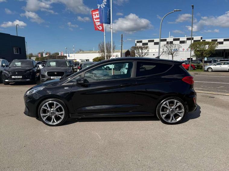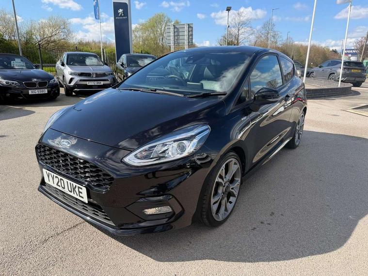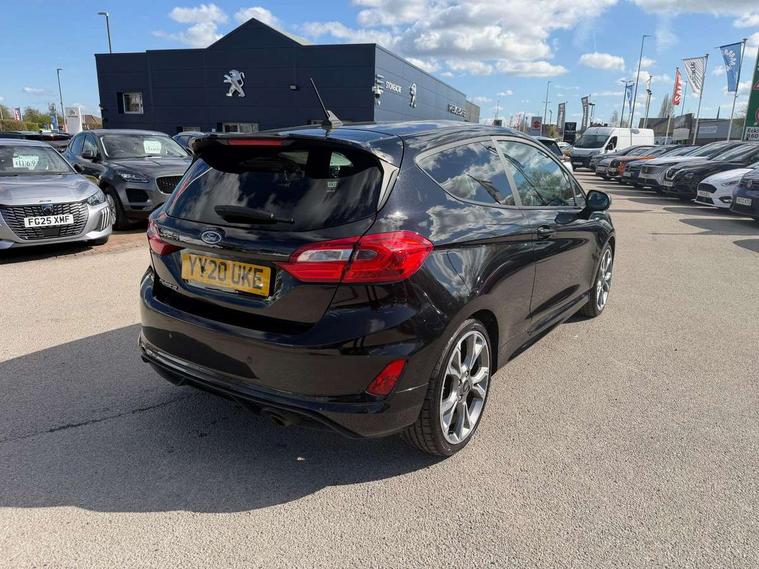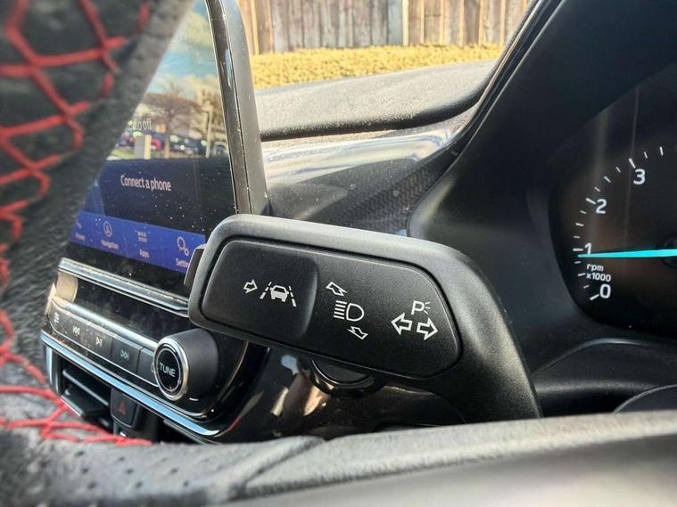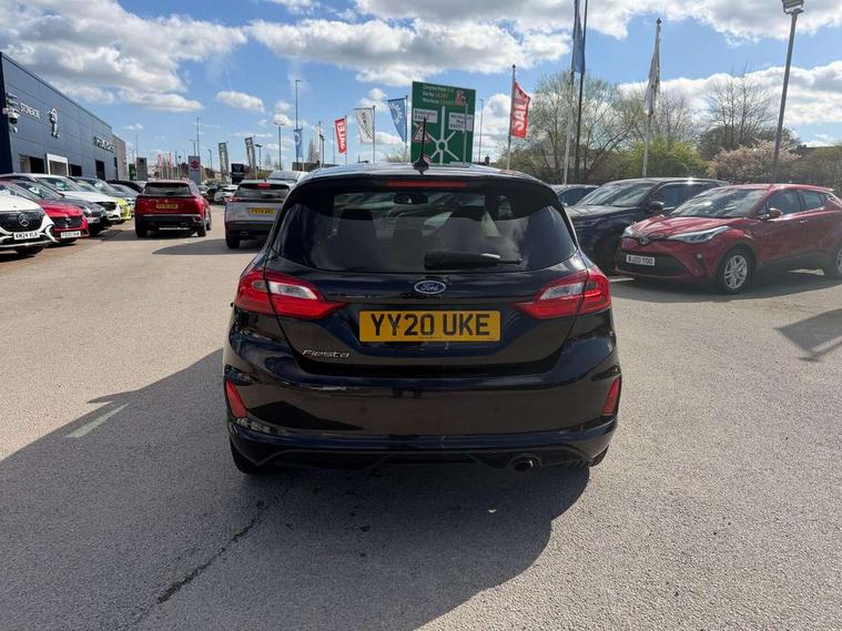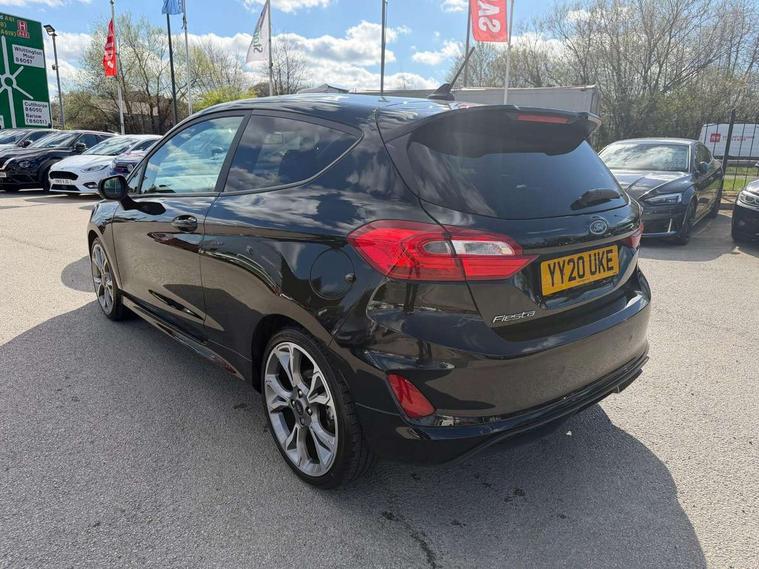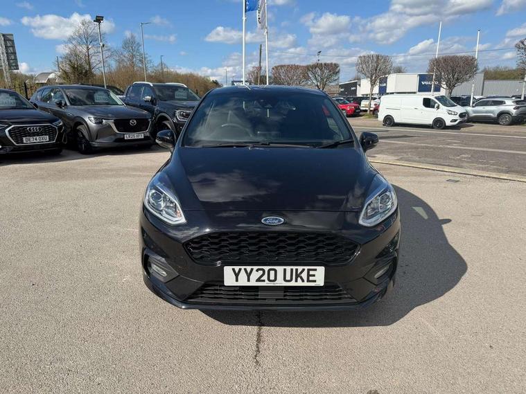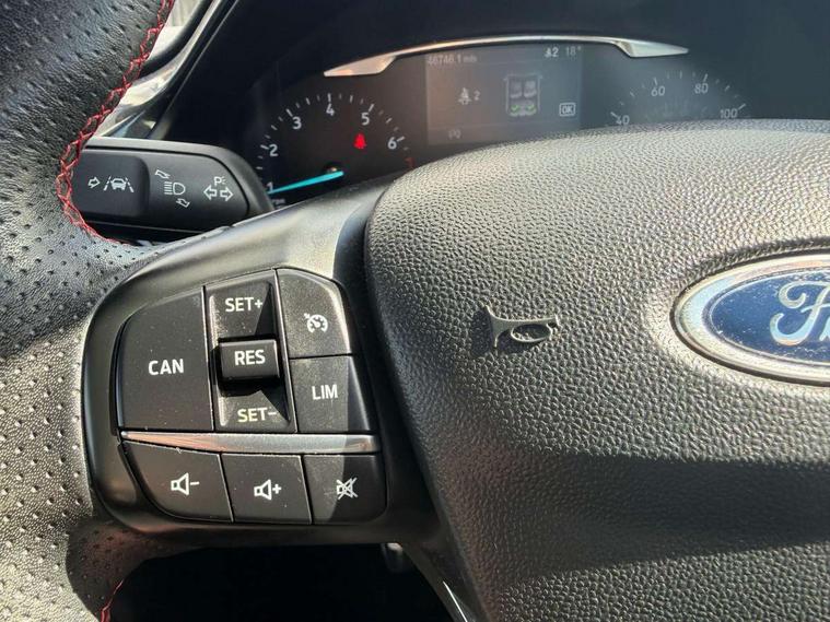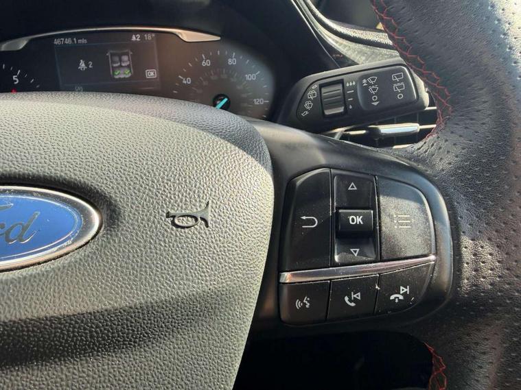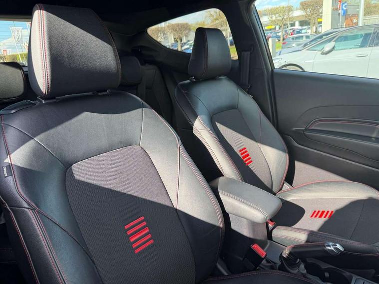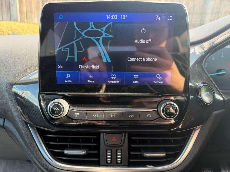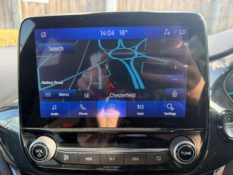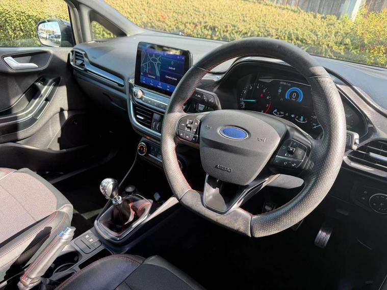 4.2" TFT instrument cluster screen, Bluetooth system, Electric power steering, Ford easy fuel, Rear parking distance sensors, Traffic sign recognition, Trip computer, Sports suspension, 2 USB ports, Auxiliary input socket, B&O Premium audio system with 8" touchscreen, 10 speakers, 360 degree sound system, Ford SYNC 3 navigation system and Ford pass connect, DAB Digital radio, Steering wheel mounted controls, Auto high beam, Body colour bumpers, Body colour door handles, Body colour large rear spoiler, Body coloured electrically operated and heated door mirrors with side indicators, Cornering front fog lights, Electric front windows/one touch facility, LED Night signature to rear lights, Power foldable door mirrors with puddle lights, Quickclear heated windscreen, Rain sensing wipers and auto dimming rear view mirror, Rear privacy glass, Rear wiper, Unique ST-Line upper grille & full bodystyling kit with ST-Line wing badges, 12V Accessory socket in centre console, 3 spoke flat bottomed leather steering wheel, 60/40 split folding rear seat, Adjustable head restraints, Black headlining, Boot carpet, Centre console with armrest and illuminated cupholders, Chrome inner door handles, Drivers and Passenger lumbar support, EATC - Electronic Auto Temperature control, Footwell illumination, Front map reading lights, Front seat and rear pockets, Front/rear floor mats, Height adjustable driver's seat, Height adjustable passenger seat, Illuminated glovebox, LED ambient lighting, Load area light, Overhead console with sunglasses holder, Pollen filter, Rake/reach adjustable steering wheel, Sensico wrapped handbrake and gearknob, Sports front seats, Sports pedals, NCAP Pack - Fiesta, Red pack - Fiesta ST-Line X, 3 point seatbelts on all rear seats, ABS+EBA, Curtain airbags, Driver and passenger airbags, Drivers knee airbag, Electronic stability control with hill start assist, Front passenger airbag deactivation, Front side airbags, Seatbelt warning, Two tone horn, Tyre pressure monitoring system, Ford keyfree system with Keyless entry and keyless start, MyKey system, Remote central locking & engine immobiliser, Thatcham Cat.1 alarm, 18" 5 spoke alloy wheels with rock metallic machined finish,