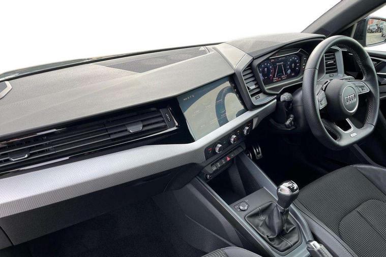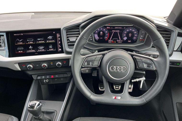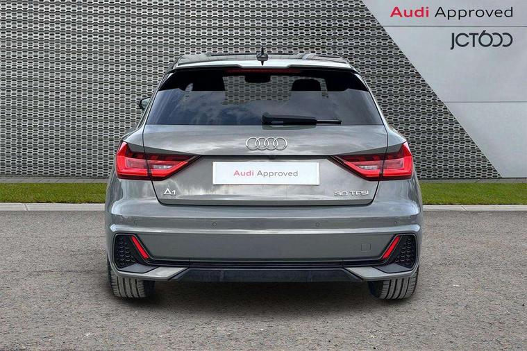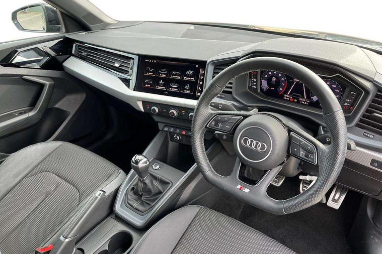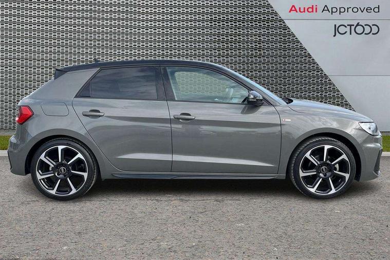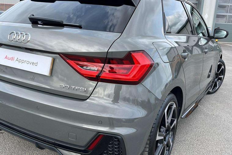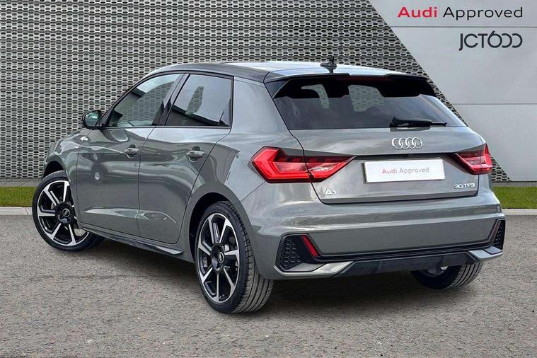 10.25" Digital instrument cluster display classis style instrument dials + speed, odometer, time, outside temperature, telephone menu + fuel level warning, Audi drive select - power steering assistance + engine, Audi smartphone interface with connect compatible smartphone via USB directly MMI display + Nav, music, third party apps controlled via MMI controller, Automatic start/stop system, Bluetooth interface, Cruise control, Driver's information system, Electromechanical power steering, Emergency e-call, Emergency services call system, Lane departure warning system, Service interval indicator, Speed limiter, Voice control system, Washer fluid level indicator, Sports suspension, 1 x SDXC card reader, 2 x USB type C connection points, DAB Digital radio, MMI radio plus with 8.8" colour MMI display screen and MMI touch, Auto dimming rear view mirror, Black door mirrors, Black side skirts, Body coloured bumpers, Door sill trims with aluminium inlays and logo, Electric front and rear windows, Electrically adjustable, heated, folding door mirrors with integrated LED side indicator, Front side air inlets in grained matt black and C frame in anthracite black, Front wing badges, Heat insulating glass windscreen and side windows, Heated rear windscreen, High level LED brake light, LED headlights with LED rear lights + dynamic rear indicators + headlight adjustment and high beam, turning light + LED daytime running lights, Radiator protective grille frame in matt aluminium silver, Rain and light sensors, Rear diffuser strip in matt titanium black, Rear fog lights, Rear side wing doors, Rear wing door, Rear wiper, Side front spoiler lips in grained matt black, 12V socket in centre console with two cup holders, 3 rear seats with headrests, 3 seat bench in 2nd row, 3 spoke flat bottomed multi-function plus leather steering wheel with S badging, grips in preforated leather and contrast stitching, 40:60 Split folding rear seat or folded fully, Black cloth headlining, Driver and passenger seat with manual height adjust with forward and backwards adjustment, Front and rear black floor mats with contrast stitching in fine silver, Front head restraints, Front passenger seat, Height and reach adjustable steering wheel, ISOFIX child seat mounting for front passenger and outer rear seats including top tether attachment point of outer rear seats, Leather gear knob with aluminium trim, Luggage compartment light with front and rear reading lights, Manually adjustable lumbar support in front seats, Stainless steel pedals, Black styling pack - A1 Sportback Black Edition, LED interior lighting pack - A1, Luggage compartment pack - A1, 3x3 point rear seatbelts, Audi pre-sense front with pedestrain and cyclist recognition, Brake assist function, Driver and front passenger airbag with front side and head airbags, Electronic Stability Control including ABS, EBD, ASR and EDL, Front passenger airbag deactivation switch, Hill hold assist, Manual rear child locks, Seatbelt height adjustment for front seats, Seatbelt monitoring, Tyre pressure warning light, Warning triangle and first aid kit, Anti theft alarm, Anti theft wheel bolts and loose wheel warning, Immobiliser, Remote central locking with 2 foldaway keys, Aluminium trim for control switches, air vents and digital instrument cluster, Silver grey inlays polygon structure in diamond paint finish, Structured grey accent areas including air vents, door handle recesses and centre console in quartz paint finish, 18" 7 spoke rotor design alloy wheels in gloss anthracite black, diamond cut finish,