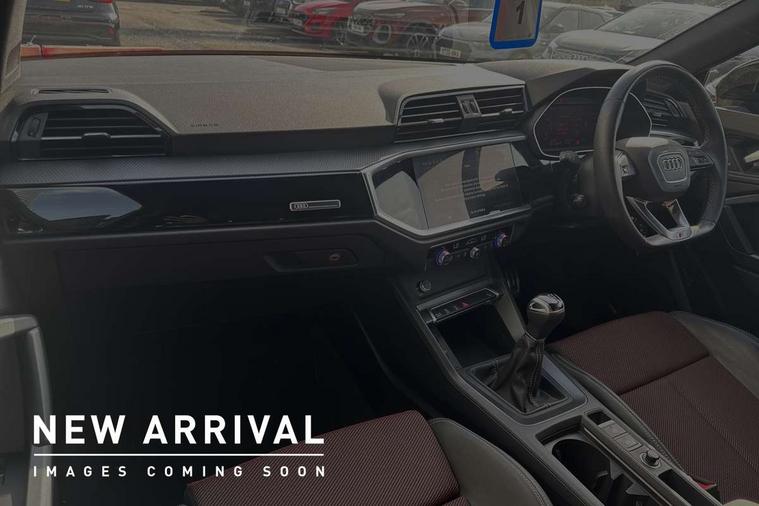 360 degree view camera, Amazon alexa Integration, Audi connect safety and service, Audi drive select, Audi lane departure warning, Audi Virtual Cockpit - 10.25" display, Bluetooth interface, Camera based traffic sign recognition, Cruise control + speed limiter, Legal emergency call, MMI Navigation Plus with high resolution 10.1 inch touchscreen colour display, Parking system plus, Phonebox light with wireless charging, Power operated tailgate, Progressive steering, Service interval indicator, Smartphone interface includes wireless Apple carplay/Android Auto, Start stop system with recuperation, Voice control system with natural language interaction, Sports suspension, 2 USB-C ports with charge and data functions, DAB digital radio module, SONOS premium sound system, Acoustic windscreen, Audi Beam uses LEDs to project the Audi logo onto the ground as you exit your Q3, Auto dimming door mirrors, Auto dimming frameless rear view mirror, Black roof rails, Electrically folding, adjustable and heated door mirrors with integrated LED side indicators and kerb view function for passenger side, Front and rear electric windows, Front fog lights, Grille vertical bars in aluminium silver/Matt, High gloss black finish B and C pillars, LED Dynamic rear indicators, LED rear lights, LED third brake light, Matrix LED headlights with LED daytime running lights, Panoramic glass sunroof, Privacy glass dark tinted rear and rear-side windows (from B-pillar backwards), Rain and light sensors, Rear diffuser grille in grained matt black, Rear diffuser strip in matt anthracite black, Rear side wing doors, Rear wiper, S line bumpers in contrasting Manhattan grey, Variable front intermittent wipers, 12V socket in rear centre console, 3 seat bench in 2nd row, 3 spoke flat bottomed multi-function leather sport steering wheel, 40:20:40 folding with manual adjustment for 60:40 forwards/backwards position and backrest angle, Adjustable rear seat bench/backrest with centre armrest and cupholder, Black cloth headlining, Dual zone electronic climate control, Electric lumbar support, Electrically adjustable front seats, Front and rear black floor mats with contrast stitching in rock grey, Front and rear headrests, Front centre armrest, Heated front seats, Height and reach adjustable steering wheel, Illuminated door sill trims with S logo, ISOFIX child seat mounting for front passenger with airbag deactivation and outer rear seat including top tether attachment point for outer rear seats, Perforated leather gearknob, Single front passenger seat, Stainless steel luggage compartment sill finisher, Stainless steel pedals, Twin leather upholstery with front sport seats + S embossing, Black styling pack - Q3, Non smoking pack - Q3, 3x3 point rear seatbelts, 6 airbags - Driver, front passenger, curtain and side windows, Audi pre-sense front with pedestrain and cyclist recognition, Electrically operated child locks on rear doors, Electromechanical parking brake, Electronic stabilisation control including ABS, ASR and EDL, Front seatbelt reminder, Hill descent control, Hill hold assist, Pre sense basic, Seatbelt monitoring, Tyre pressure warning, Warning triangle and first aid kit, Advanced key, Anti theft alarm, Anti theft wheel bolts, Immobiliser, Remote central locking, Aluminium look interior elements, Detail dashboard around MMI touch colour display in glass look, black with surround in aluminium look, Leatherette door armrest, Piano black inlay,