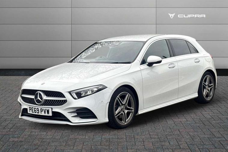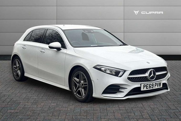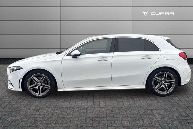 10.25" Digital instrument cluster display screen, 180 degree rear view camera with parking guidelines, Active lane keep assist, Active park assist with parktronic system including front and rear parking sensors, Attention assist, Brake pad wear indicator warning light, Direct steering, DYNAMIC SELECT with a choice of driving modes (ECO, Comfort, Sport and Individual), ECO start/stop function, Fluid level warning indicator for fuel, oil, coolant and washer fluid, Hard-disk navigation, Hey Mercedes Voice activation, Lamp failure indicator, Mercedes me connect including emergency call system, accident recovery, breakdown management and maintenance, Outside temperature gauge, Radio aerial integrated into roof spoiler, Service indicator (ASSYST), Speed sensitive power steering, Trip computer, Lowered comfort suspension, DAB Digital radio, Dual bluetooth interface, 2 USB ports (type C), MBUX multimedia system with DAB digital radio and touchpad including satellite navigation, Mid-range sound system, 4 Electric Front and Rear windows, Active aerodynamics with AIRPANEL in the front apron, Adaptive brake lights, AMG front, rear apron and side skirts, Blue tinted glass, Body colour bumpers, Body colour door handles, Body colour side skirt, Body coloured door mirrors, Chrome beltline trim, Diamond radiator grille with chrome pins and silver louvre + chrome insert, Electric adjustable and heated door mirrors with integrated LED side indicators, Exhaust system - Twin trapezoidal tailpipes in polished stainless steel, Headlamp assist automatic headlamp activation, Heated glass rear windscreen + timer control, LED high performance headlamps with integrated LED daytime running lights, LED tail lamp, LED third brake light, Privacy glass, Rain sensor windscreen wipers, Rear fog lights, Rear wiper, 12V socket, 3 Spoke flat bottom leather multi function steering wheel with perforated leather in grip area, 40:20:40 split folding rear seats, Air vents surround and cruciform nozzle in silver chrome, AMG floor mats with red stitching, Artico man-made leather/Microfibre Dinamica upholstery with red contrast stitching, Auto Mercedes-Benz child seat recognition sensor, Black roof lining, Brushed stainless steel sports pedals with rubber studs, Controller on centre console with chrome surround, Cup holder and stowage compartment lighting, Freight packaging without tie-down hooks, Front centre armrest with storage compartment, Front door sills with Mercedes Benz lettering, Front footwell lights, Front reading lamps in left and right console downlighter, Front seat backs luggage nets, Front seat cushion length adjustment, Front signal exit lamp, Front vanity lights, Gearshift paddles on steering wheel, Handle recess/closing light, Heated front seats, Height/reach adjustable steering column, Illuminated door sills, Illuminated glove compartment stowage, Interior lighting - 64 colour Ambient lighting, ISOFIX Child seat top tethers and anchor fixings, Luggage compartment cover, Manual height adjustable front seats, Oddments tray lighting, Rear armrest, Rear head restraints, Rear Reading Lamps, Seat occupancy sensor for front passenger seat, Spectacles compartment for driver, Sports seats with integrated headrests, Storage compartment under load area floor, Stowage compartment in centre console with retractable cover, Sunvisors with illuminated vanity mirrors, Touchpad, Touchpad illumination, Twin front cupholders, Two zone thermotronic luxury automatic climate control, Light and sight pack - A Class, Mirror package - A Class, Seat comfort pack - A Class, 3 rear 3 point seatbelts, ABS with Brake Assist, Active bonnet, Adaptive brake assist with hold function and hill start assist, Black seatbelts, Childproof locks manually operated for rear doors and electrically operated for rear power windows, Crash responsive emergency lighting, Driver and passenger head and side airbags, Drivers knee airbag, Dual stage driver/passenger airbags, Electronic parking brake, ESP curve dynamic assist, ESP with ASR, Front and rear seatbelt reminder, Front brake callipers with Mercedes Benz lettering, Tyre pressure monitoring system, Warning triangle and first aid kit, Window airbags, Alarm system/interior protection/immobiliser, Keyless entry lock/unlock, Remote central locking and crash sensor with emergency opening function, 18" AMG 5 twin spoke light alloy wheels in titanium grey with highsheen finish, Summer tyres, Tirefit sealant kit,