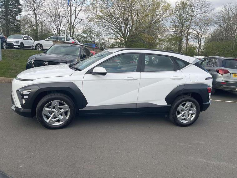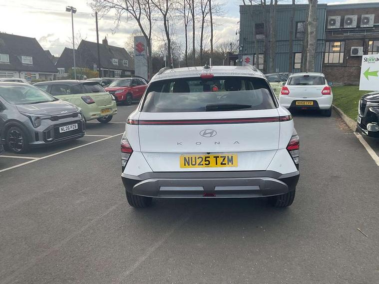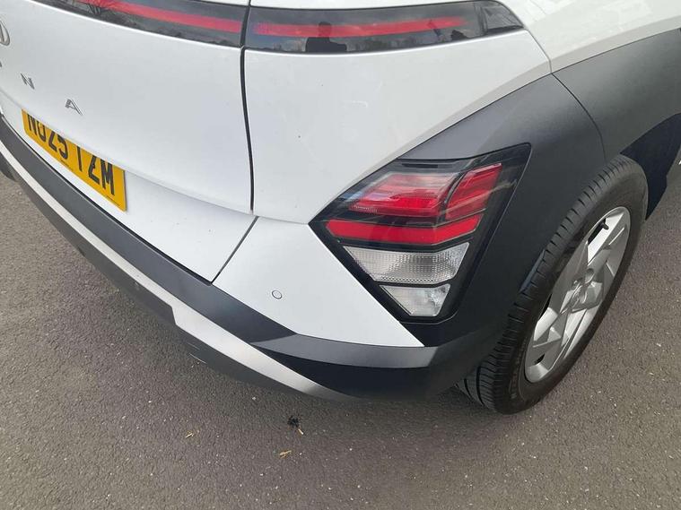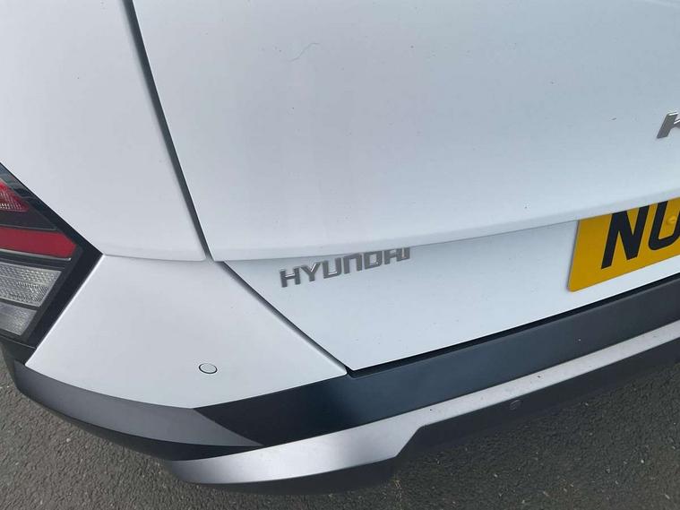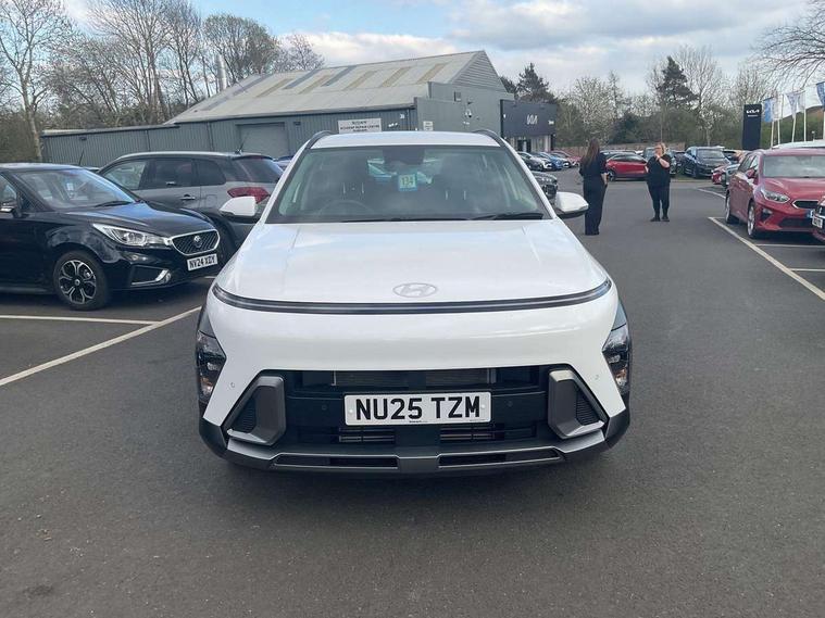 12.25" digital instrument cluster, 12.3" touchscreen centre console display satellite navigation with bluelink, live services and mapcare, Bluetooth connectivity with voice recognition, Cruise control, Driver status monitor (DSM), Driver supervision instrument cluster with 12.3" LCD display, eCall emergency call system, Feature on demand - Enabled, Forward collision avoidance assist (FCA 1.5) - Car, pededstrian, cycle and junction turning, Front parking sensor, Intelligent speed limit assist, Lane follow assist, Lane keep assist, Leading vehicle departure alert (LVDA), Parking system with rear camera and guidance system, PAS, Rear parking sensor, Rear view camera with dynamic guidelines, Roadside assistance, Wireless Smartphone Integration includes Apple CarPlay and Android auto, 2 front USB C and 2 rear USB C charging points, DAB Digital radio, Speakers - Front, rear and tweeters, Steering wheel audio, phone and cruise controls, Auto dimming rear view mirror, Automatic headlights with dusk sensor, Automatic windscreen wipers with rain sensor, Black painted wheel arch inserts, Body colour exterior door handles, Body coloured door mirrors, Door mirror LED indicator lights, Electric front windows with anti-trap mechanism and one touch control, Electric rear windows, Electrically adjustable and heated door mirrors, Full LED MFR headlights, LED daytime running lights, LED taillights, LED upper and lower rear lights, Power folding door mirrors, Rear roof spoiler with integrated LED brake light, Rear side wing doors, Rear skid plate - silver, Rear wiper, Roof rails, Tinted glass in front and rear doors, Windscreen auto defog function, 12V power outlet in front console, 2 zone climate control, 3 seat bench in 2nd row, Adjustable head restraints, Cloth upholstery, Driver and passenger front seat pockets, Driver's seat lumbar support, Driver/passenger manual seat height adjustment, Driver/passenger sunvisors and illuminated vanity mirrors, Floor mats, Height/reach adjustable steering column, Leather steering wheel, Leather wrapped steering wheel and gear knob, LED centre interior light, LED front interior light, Luggage compartment LED lighting, Luggage shelf, Metal paint effect interior door handles, Rear centre armrest with cupholders, Single front passenger seat, Vertical adjustment rear head restraints, Trailer wiring package - Kona, Airbag - front, front side, curtain and centre front airbag, Anti-lock brake system (ABS), Childproof rear door locks, Downhill brake control, Electric parking brake, Electronic stability control, Fixed 3 point for second row centre passenger seatbelt, Hill start assist control (HAC), Rear seat alert, Tyre pressure monitoring system, Alarm/immobiliser, Rear occupant alert, Remote central locking, Smart key with keyless entry and start/stop button, Five year annual vehicle health checks, 17" Alloy wheels, Temporary mobility kit (TMK),
