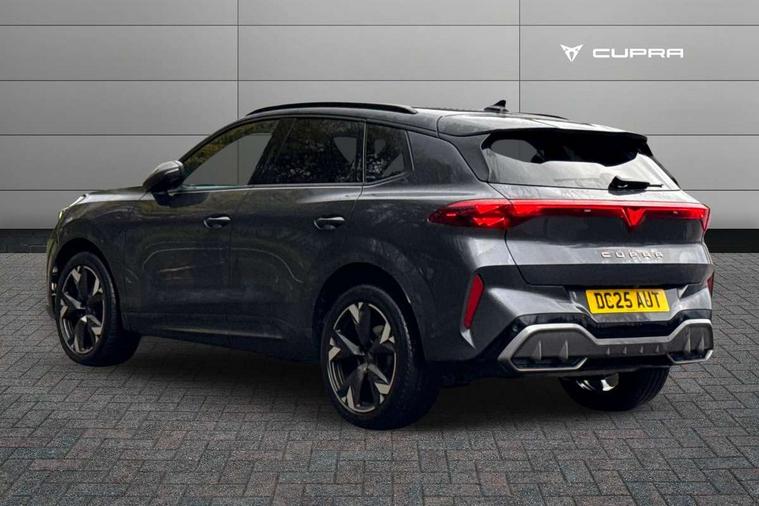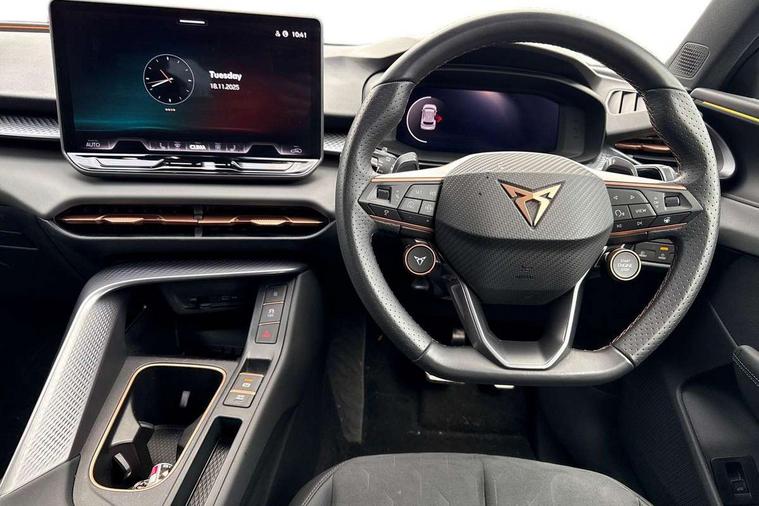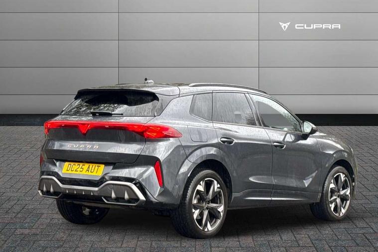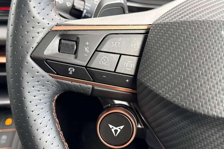 10.25" digital cockpit and configurable dashboard, Adaptive cruise control with follow-to-stop and speed limiter, Advanced driver alert system, Advanced lane assist with semi-automatic vehicle control in a medical emergency and traffic jam assist, Driving profile selection and conventional shock absorber, Dynamic road sign display, E-call, Electric tailgate with virtual pedal, Emergency steering support with turn assist, Four x USB Type C ports (2 in front and 2 in rear), Front and rear parking sensors, Front assist (Forward collision warning with automatic braking) with multifunction camera and front cross traffic assist, Head up Display, Intelligent park assist, Media system with Nav - 12.9" touch display, voice control, full link phone (wired/wireless), DAB and Steering wheel mounted controls, Rear traffic assist, Side and exit assist, Speed sensitive power steering, Start/stop system with regenerative braking, Top view camera (front camera, rear camera, 2 side cameras), Wireless phone charger, Auto dimming rear view mirror, Black roof rails, CUPRA 3D rear lights with ceremony & swiping indicator and illuminated logo, Dark tinted rear windows, Daytime running lights with automatic headlight control and Coming and Leaving home function, Door mirrors with memory function and lowing function on passenger mirror, Dynamic headlight range control, Electric front/rear windows, Electrically adjustable, heated and folding door mirrors, Front fog lamps with cornering function, Heat reflecting windscreen, High beam assist, LED headlamps with signature "CUPRA LED", Rain sensing wipers, Rear fog light on one side, back up light on both sides, Rear side wing doors, Rear wash/wipe, Third brake light, Welcome lights (within exterior mirror housing), 3 seat bench in 2nd row, Black roof lining, Cupra sports pedals, Dinamica cloth upholstery, Driver seat memory function, Electrically adjustable front seats including lumbar support, Front and rear head restraints, Front and rear reading lights X 4, Front centre armrest, Heated front seats, Heated leather wrapped multi function sports steering wheel with tiptronic, Illuminated interior front door sills, Isofix, Operating voltage 12V, Single front passenger seat, Smart wraparound interior lighting, Sunvisors with illuminated mirror, Three zone climate control with control panel in rear, Unsplit rear seat bench, split folding backrest, with centre armrest, Variable luggage/load compartment floor, 3 point seatbelts in front with pretensioner and electric height adjustment, 3 point seatbelts on all rear seats, Brake control system - ESC and brake booster, Child proof door locks, Driver and front passenger airbags, Electronic parking brake, Front and rear disc brakes, Front interaction airbag, Front passenger airbag deactivation switch, Front side airbags with curtain airbags, Pre-crash front and rear seat belt tensioner, window closure and hazard lights, Tyre pressure monitoring system, Visual and acoustic seat belt reminder, electric contact in front and rear, Anti theft alarm, Keyless locking and starting system with keyless access, Locking wheel bolts, Black decorative trims, Chrome interior detailing, 19" Spectrum exclusive machine alloy wheels, Tool kit,