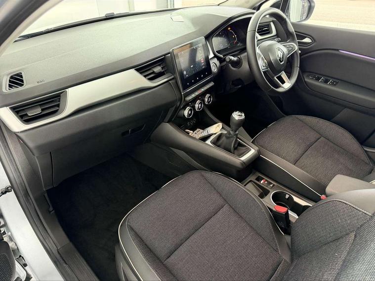 7" TFT Driver information display, Cruise control + speed limiter, EasyLink 7" touchscreen with navigation, google search and traffic information, Eco mode, Front and rear parking sensors with rear view camera, Gear change indicator, Lane departure warning system, Lane keep assist, Multisense with 3 driving modes + 8 ambient lighting colours, Renault automatic emergency assist, Smartphone integration compatible with Apple CarPlay and Android Auto, Traffic sign recognition with over speed prevention, Trip computer, Variable assistance power steering, Wireless phone charger, DAB Radio with Bluetooth and USB, 2 reverse gear LED lamps and 1 rear LED fog lamp in the bumper, Auto dimming rear view mirror, Automatic front wipers with rain sensors, Automatic headlights, Automatic high/low beam, Black side door protection with chrome effect, Body colour door handles, Body coloured bumpers, Body coloured door mirrors, C Shaped LED front and rear lighting signatures with 3D effect on the rear lights, Chrome around front air deflectors, on front wing deco element and window lining, Day time running light, Drivers one touch window with anti-pinch feature, Extra tinted glass in rear windows and tailgate, Front and rear electric windows, Front grille with chrome upper trim, Full LED headlights, Grey front and rear skid plate, LED front fog lights, LED high level brake lights, LED turn indicators on door mirrors, Longitudinal roof bars, Rear side wing doors, Rear wiper, Shark fin antenna, 12V Accessory socket, 3 rear headrests, 60/40 split and fixed base rear seat bench, Automatic climate control with one touch demist function and air quality regulator, Centre console storage tray, Front head restraints, Glovebox, Heating system with pollen filter, Height adjustable driver's seat, Height adjustable passenger seat, Height/reach adjust steering wheel, ISOFIX child seat fixing points on rear outermost seats, LED front roof lights, Middle console with armrest and storage, Modular boot floor, Rear air vents, Single front passenger seat, Sliding rear bench, Synthetic leather steering wheel, Synthetic leather/cloth upholstery, 3 rear seatbelts, ABS+EBA, Distance warning alert, Driver and front passenger, side, head and curtain airbags, Driver height adjustable seat belt, Electric parking brake with auto hold function, Electronic stability control, Front and rear no seatbelt warning sound, Front dash warning indicator in case of heavy braking, Front driver and passenger side airbag deactivation, Hill start assist, Rear door and window child locking function for rear door, Tyre pressure warning light, Anti drill door locks and locking fuel cap, Central door locking, Deadlocking system, Hands free keycard with push button and start/stop function, RAID (Renault Anti-Intruder Device) automatic door locking, Black soft touch dashboard, 18" Pasadena diamond cut alloy wheels with grey inserts,