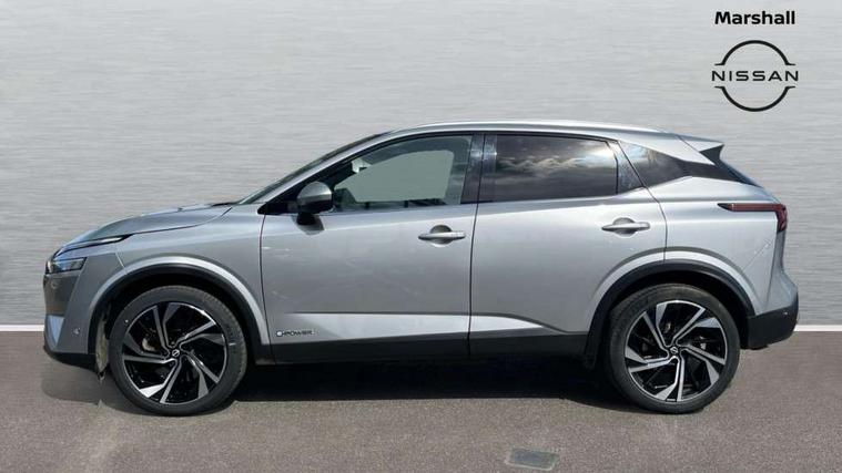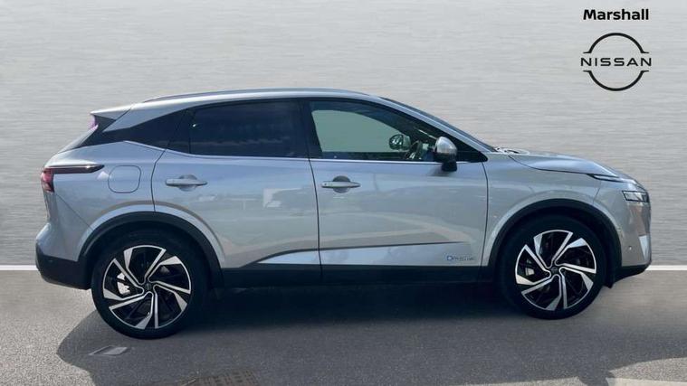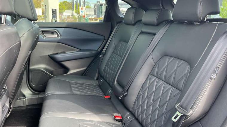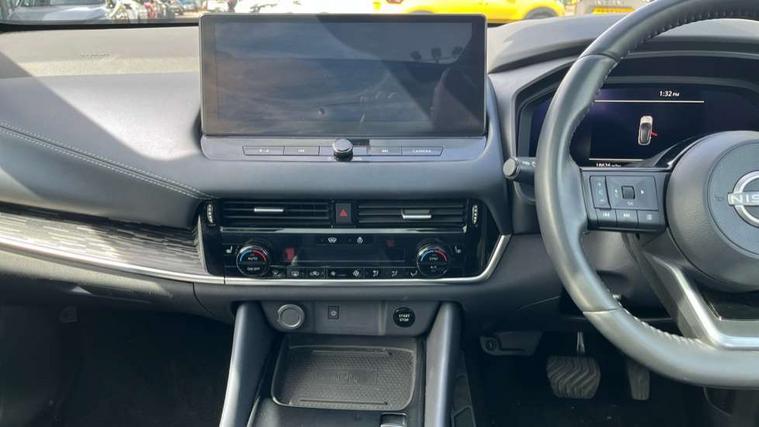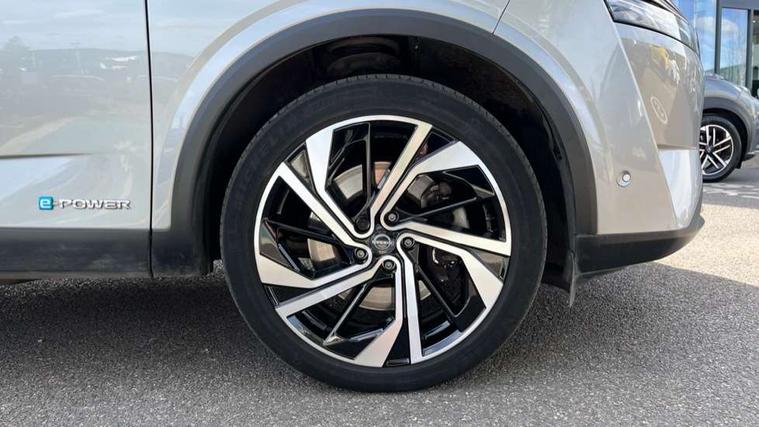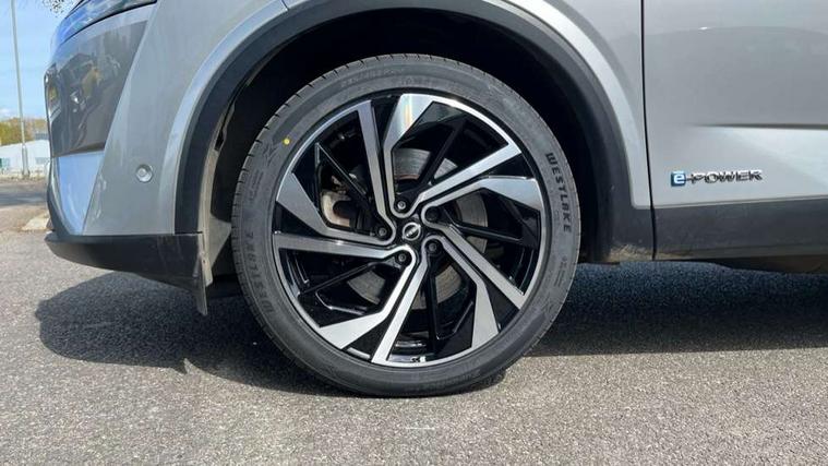 Advanced windscreen head up display, Android auto/Apple CarPlay (Wired), Blind spot warning, Drive modes (sport, normal, eco), Electric speed sensitive power steering, Emergency and breakdown call, Front and rear parking sensors, Full Digital 12.3" TFT Digital Combimeter, Google maps services - search, weather, 3D maps and Google street view, Hands free power tailgate, Idle stop/start system, Intelligent around view monitor, Intelligent Cruise control (ICC), Intelligent driver alert system, Intelligent forward collision warning, Intelligent lane intervention, Lane departure prevention, Lane departure warning system, Lane keep assist, Moving object detection, Nissan connect 12.3 inch touchscreen infotainment system, Nissan connect navigation, Pro pilot park assist, ProPILOT with Navi-Link, Push button starter, Rear cross traffic alert, Rear view camera, Remote control services - door locks, lights, horn and car locator, Telematics - notifications and connectivity services, TomTom live traffic services, Traffic sign recognition with legal speed adjustment, Trip computer, Virtual personal assistant and firmware over the air capability, Wireless apple carplay, Wireless charging pad, 10 Bose speakers - 2 tweeters, 6 high and medium frequency door speakers and 2 in subwoofer, AM/FM audio system with DAB, Bluetooth audio streaming, Bose acoustimass bass box, Digital amplifier, Front USB connections (Type-A and Type-C), Rear USB charging only ports (Type-A and Type-C), Auto dimming rear view mirror, Auto rear wiper when reversing, Automatic hazard signal with emergency stop signal, Body colour mirror caps, Body coloured door handles, Bodyside mouldings, Chrome side window finisher, Door handle with button, Door mirror memory, e-POWER badging, Electric auto folding door mirrors, Electrically adjustable and heated door mirrors with LED turn indicator, Follow me home headlights, Front and rear LED turning signals, Headlights auto levelling system, Intelligent auto headlights, LED daytime running lights, LED front fog lights, LED headlights with adaptive driving beam, LED rear lights, One touch front and rear electric windows with remote opening and closing, Privacy glass, Rear bumper with graphite insert, Rear reversing light (bulb lighting), Rear roof spoiler, Rear side wing doors, Rear styling plate, Reverse tilting door mirrors, Shark fin antenna, Splash free rain sensing wipers, Super UV and infrared cut glass, Thermaclear heated windscreen, Three blink turn signal, 12v power socket in dashboard and luggage, 2x Rear coat hooks, 3 bench rear seats in 2nd row, 3 rear headrests, 4 folding assist grip, 6 Luggage hooks - 4 on floor, 2 on side, 60/40 split folding rear seat bench, Ambient lighting around centre console, Ambient lighting in front doors, Centre console storage tray, Chrome interior door handles, Dark black/blueish PVC wrapping, Dark headlining, Driver and front passenger sunvisors with illuminated vanity mirrors, Driver seat back pocket, Dual zone automatic climate control with pollen filter, e-POWER shifter, Electric 4-way lumbar support for drivers seat, Electric adjustable 4 way lumbar support for passenger seat, Electrically adjustable driver seat with massage and memory functions, Front and rear door storage, Front centre console and armrest, Front cupholders x 2, Front door with bottle holders, Glovebox with light, Hard trunk cover, Heated front seats, Heated steering wheel, Height adjustable driver's seat, Height adjustable front headrests, Height adjustable passenger seat, Leather steering wheel, Luggage board system, Luggage space lighting, Manually adjustable passenger (slide recline + lifter), Multifunction steering wheel, Passenger seat back pocket, Quilted premium leather upholstery, Rear armrest with 2 cupholders, Rear door bottle holders, Single front passenger seat, Soft PVC kneepad, Steering wheel switches, Tilt/telescopic adjustable steering wheel, Two rear isofix child seat anchorage points with top tether, Welcome light and doors with console tray ambient lighting, Glass roof pack with roof rails - Qashqai, 3x3 point rear seatbelt pretensioners + load limiters, ABS with EBD and brake assist, Active brake limited slip, Auto hold function, Child locks on rear doors, Curtain and front side, far side airbags, Driver and passenger airbags, Driver, passenger and 2nd row rear seat belt reminder, Electronic parking brake, Front seatbelt pretensioners + load limiters, Height adjustable front seatbelts, Hill start assist, Intelligent blind spot intervention, Intelligent front emergency braking with pedestrian, cyclist recognition and junction assist, Intelligent rear automatic braking, Tyre pressure monitoring system, Vehicle dynamic control, Advance intelligent key with driver memory storage (seats, mirrors, audio), Capless fuel filler, Engine immobiliser, Remote central door locking with deadlocking, Thatcham Cat.1 alarm, Interior instrumental panel C finisher, 20" Diamond cut alloy wheels, Tyre puncture repair kit,