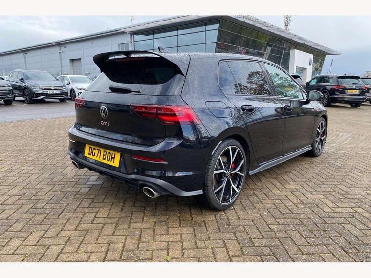 Adaptive cruise control (ACC) with speed limiter and front assist (reacting to vehicles pedestrians and cyclists), Car2X communication, Digital cockpit pro - 10.25" high resolution TFT dash display screen with customizable menus and information, Driver alert system, Driver profile selection, Dynamic road sign display, eCall - Emergency call service for SOS calls to emergency response, Lane assist, Lane change assistant, Mobile phone interface with wireless inductive charging function, Progressive steering, Speedo, rev counter, electronic odometer, trip, service interval display, exterior temperature and fuel gauge, Start/Stop function, Travel assist with emergency side assist with electrically foldable door mirrors, Warning buzzer and light for front seatbelts unfastened, Wireless app connect, Front differential lock, Petrol Particulate Filter, XDS electronic differential lock for improved traction and handling, Premium USB cable in choice of either Apple or Android smartphone compatibility, Advanced high beam control dynamic light assist for LED matrix headlamps, Auto dimming rear view mirror, Automatic headlamp activation with Coming home and Leaving home feature, Body colour bumpers, Body colour door handles, Body colour door mirrors with integrated indicators, Body colour rear roof spoiler, Chrome plated tailpipes (1 either side), Front and rear electric windows, GTI Clubsport styled bumpers, Heat insulating glass windscreen, Heated rear windscreen, High level 3rd brake light, Highway light, Illuminated front grille, IQ.Light - LED Matrix headlights, dynamic headlight control with advanced high beam control matrix dipped main beam + LED DRL + 22 LED lights, LED front fog lights with 5 honeycomb design, LED License plate illumination, LED rear combination lamp inlcuding dynamic turn signal, Performance rear spoiler, Rain sensor, Rear fog light on one side and reversing lights on both sides, Rear tinted glass 65% light absorbing from B pillar backwards, Rear windscreen washer and wiper with interval delay, Remote electrically heated, adjustable and foldable door mirrors, including door mirror puddle lights and reverse activated kerb-view adjustment on pa, Welcome light, 12V socket in front centre console, 12V socket in luggage compartment, 3 rear head restraints, 3 zone climate with controls in the rear, Aluminium gear knob, Ambient lighting - Customisable 30 colour ambient lighting, Ambient lighting, exterior illuminated styling elements at the sides, Black roof lining, Brushed stainless steel pedals, Centre console, Chrome plated surround to electric mirror button, window switch and air vent surrounds, Drivers and front passengers sun visors with vanity mirrors, Front + rear carpet mats, Front centre armrest with storage compartment, Front cupholders x 2, Front reading lights x 2 incorporating LED technology, Front seat lumbar support adjuster, Front sports seats, Glovebox, Height adjustable front seats, Height and reach adjustable steering wheel, Isofix child seat preparation for 2 rear child seats and front passenger seat, Leather wrapped multifunction sports heated steering wheel with paddle shift, Luggage compartment lighting, Removable luggage compartment cover, Split folding backrest with centre armrest and unsplit rear seat bench, Woven fabric storage compartments in front and rear doors, 3 point height adj front seatbelts + pretensioners, 3 rear three point seatbelts, ABS, Driver and front passenger airbag with front passenger airbag deactivation, Drivers and front passengers safety optimised head restraints, Electronic parking brake with auto hold, ESC (Electronic Stability Control), Extended pedestrian protection measures, Front and rear passengers curtain airbag system including front side airbags, Front disc brakes, Rear disc brakes, Two tone horn, Tyre pressure monitoring system, Alarm with interior protection and deactivation via infotainment system, Electronic engine immobiliser, Keyless entry with start/stop button on centre console, Black metal chrome decorative inserts in dash and front door trim panels, Soul dashboard, Tyre mobility kit Includes 12V compressor and tyre sealant,