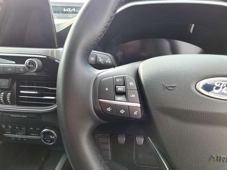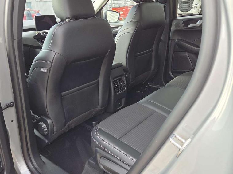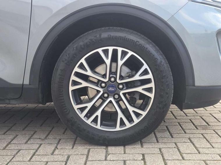 12.3" digital colour instrument cluster, Ford easy fuel, Ford SYNC 3 with 8" TFT LCD touchscreen, App Link, andriod auto/apple carPlay, emergency assistance and navigation with Ford pass connect, Front and rear parking sensors, Hands free power tailgate, Lane keeping aid with lane departure warning, Power assist steering, Rear view camera, Selectable drive modes, Service interval indicator, Standard suspension, Twist beam rear suspension, B&O premium audio system with 10 speakers and subwoofer, 2 USB ports, DAB radio/CD, Auto dimming rear view mirror, Auto headlamps with high and low beam, Auto wipers, Front LED fog lamps, LED daytime running lights, LED rear lights, Power folding heated door mirrors with puddle lights, Power front/rear windows with global close, Privacy glass, Quickclear heated windscreen, Rear side wing doors, Rear spoiler, Rear wiper, Silver roof rails, Third brake light, Twin exhausts, 10 way power adjustable drivers seat, 2nd row sliding seats with 60:40 split, 8 way manual passenger seat including lumbar support and height adjust, Ambient lighting, Centre console with electronic parking brake, Electronic automatic temperature control (EATC), Front and rear floor mats, Front and rear head restraints, Partial premium touch sensico leather upholstery with black cloth inserts, Rear charging point, Single front passenger seat, Sports seats, 3x3 point rear seatbelts, Airbags - front driver/passenger, front and rear curtain, Drivers knee airbag, Electronic stability control (ESC) and ABS, Ford MyKey Gen 2 safety system, Manual child proof rear door locks, Post collision braking, Pre collision assist with autonomous emergency braking, Rear seat Occupancy alert, Tyre pressure monitoring system, Engine immobiliser, Keyless entry and Ford power start button (Keyless start), Locking wheel nuts, Remote powered central double locking doors, Thatcham category 1 alarm, 18" 5x2 spoke magnetic and machined finish alloy wheels,