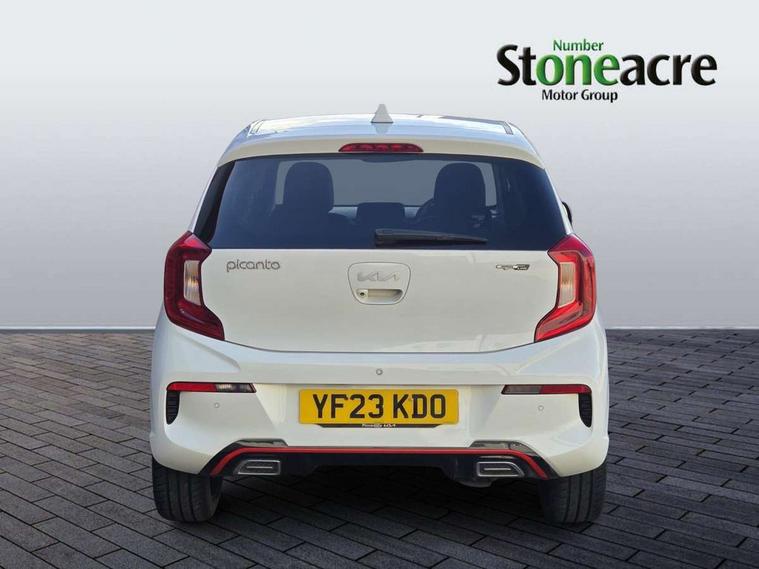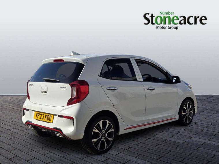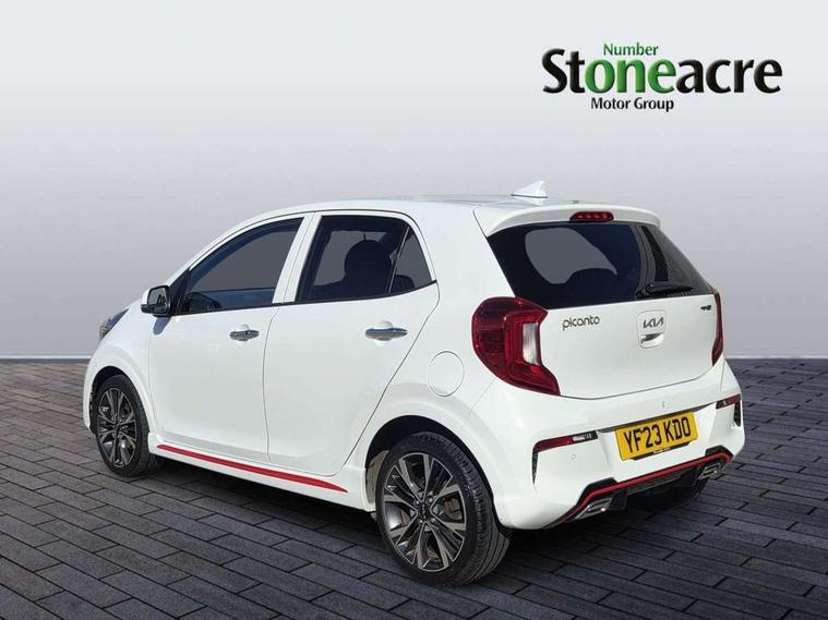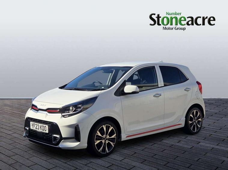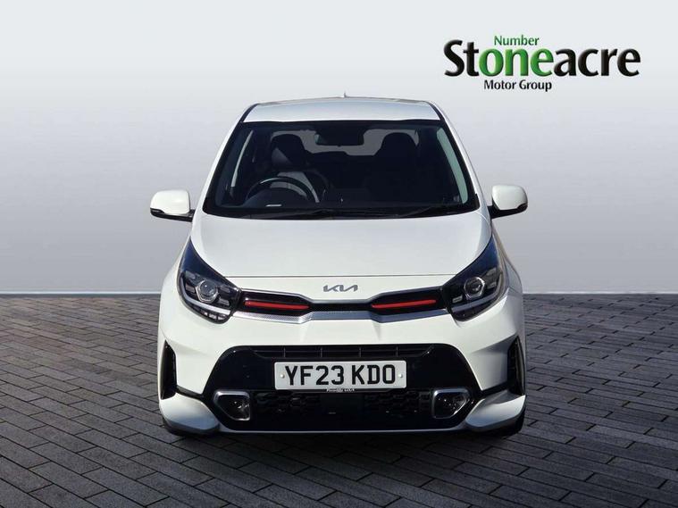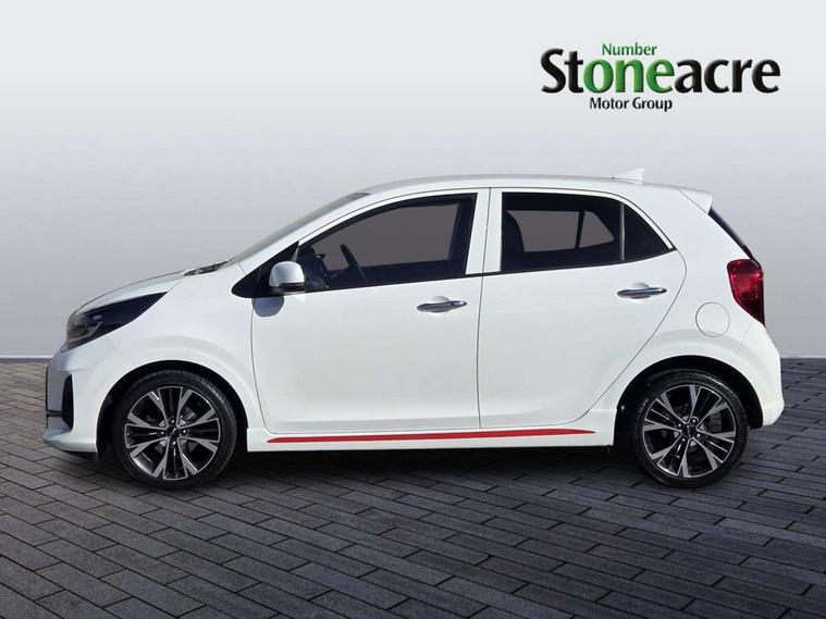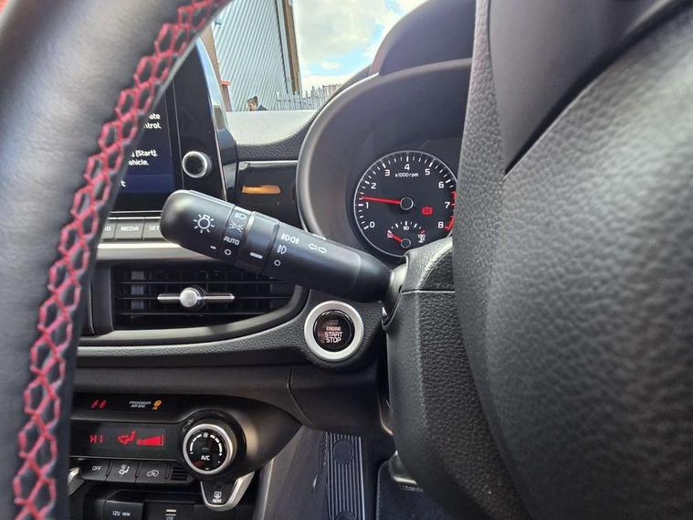 8" touch screen satellite naviagtion with RDS and DAB with telematics, Apple car play/Android Auto with voice control, Cruise control + speed limiter, Emergency call service, Emergency stop signalling system, External temperature gauge, Kia Connect (UVO), Motor driven power steering, Rear parking sensors, Reversing camera system with dynamic guidelines (Integrated into centre fascia screen), Tachometer, Trip computer, Wireless Smartphone charger, 6 speaker audio system, Bluetooth with music streaming, Steering wheel mounted controls, USB ports for connection of a media device, Automatic headlight control system, Bi-function projection headlights, Black beltline mouldings, Black grille with silver surround, Body colour B pillars, Body colour bumpers, Body colour side sill mouldings, Body coloured mirrors and chrome exterior handles, Day/night rear view mirror, Electric adjustable/heated/folding door mirrors with LED indicators lights, Front and rear electric windows with drivers's auto up/down function, Front fog lights, Headlamp levelling, Heated rear window, High mount brake light, LED daytime running lights, LED rear fog lights, Privacy glass - Rear windows and tailgate, Rain sensor, Rear side wing doors, Rear wash/wipe, Speed variable front wipers, Sports front and rear bumpers with gloss black skid plates twin exhaust, Tinted glass, Visible VIN plate, Welcome and follow-me home light functionality, 1 x rear coat hook, 12V power point front, 2 seat bench in 2nd row, 3 x passenger assist grips, 60/40 split/folding 2nd row of seats, All round height adjustable headrests, Automatic air conditioning, Black and red accents front door armrest, Centre Console with Storage Box and Sliding Armrest, Cupholders in centre console, D-cut steering wheel with red stitching, Driver and front passenger sunvisors with driver's side illuminated vanity mirrors, Driver seat height adjust, Faux leather upholstery, Front cabin lights, Glovebox, Heated front seats, Heated steering wheel, High gloss lower centre fascia trim, door armrest and air vents, ISOFIX Child seat top tethers and anchor fixings, Leather trimmed steering wheel and gearshift, Luggage area light, Luggage area parcel shelf, Passenger front seatback pockets, Satin chrome interior door handles, Single front passenger seat, Slide/reclining front seats, Tilt adjustable steering wheel, Advanced Driver Assistance Pack - Picanto, 2 x 3-point rear seatbelts, ABS/EBD, Automatic unlocking of doors in case of impact, Dual front airbags, ESC + BAS + VSM + HAC, Front passenger airbag cut-off switch, Front seatbelt height adjusters, Front seatbelt pretensioners + load limiters, Hill hold control, Knee airbags, Rear child proof door locks, Seatbelt warning, Side impact protection, Torque vectoring brake based and straight line stability (SLS), Traction control, Twin curtain airbags, Twin front side airbags, Tyre pressure monitoring system, Anti theft alarm, Engine immobiliser, Locking wheel nuts, Smart key with engine start/stop button, 16" alloy GT-Line wheels, Tyre mobility kit,