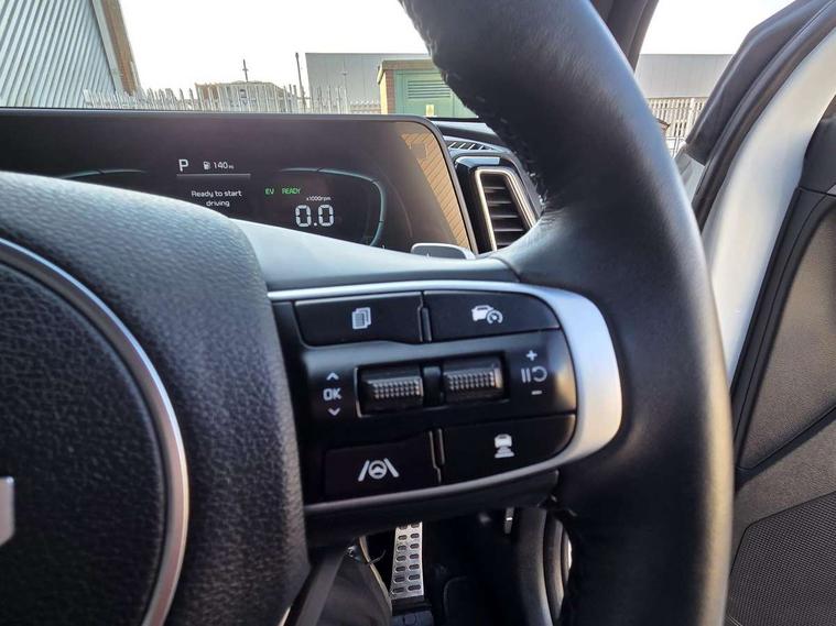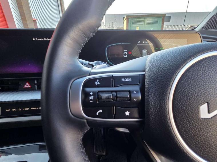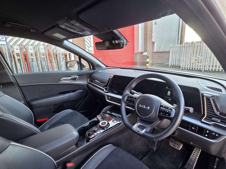 12.3" Touchscreen navigation system, 4.2" driver display screen, Apple car play/Android Auto, Drive mode selector, Driver attention warning, E-call, Emergency stop signalling system, Forward collision avoidance assist (FCA) - city/pedestrian/cyclist/junction covering, Front and rear parking sensors, Highway Driving Assist (HDA), Intelligent speed limit assist, Kia Connect (UVO), Lane Following Assist (LFA), Lane keep assist, Low washer fluid warning, Motor driven power steering, Rear view monitor, Reversing camera system integrated into centre fascia screen, Smart cruise control with stop and go functionality, Speed limiter, Tailgate, Trip computer, Windscreen washer level indicator, Terrain mode select (Mud, Snow, Sand), 1x USB-C port in front, 2 rear USB-C ports, 6 speaker audio system, Bluetooth audio streaming, DAB Radio with MP3, Steering wheel mounted audio controls, USB C type charging ports on centre console, USB port for connection of a media device, All round electric windows with drivers and front passenger auto up/down function, Auto dimming rear view mirror, Automatic headlight control system, Automatic window defogger, Black and body coloured bumpers, Body colour exterior door handles, Body colour radiator upper garnish and door garnish, Electrically adjustable/heated/folding door mirrors with LED indicators, Front and rear chrome skid plates, Gloss black door mirrors, Gloss black radiator grille, Gloss black side sill and wheel arch body mouldings, Glossy black roof rack, GT-Line exterior styling, Heated rear window, High beam assist, Interior electrochromic mirror, LED daytime running lights, LED front fog lamps, LED headlamps (low and high beam - MFR type), LED High mounted stop light, LED rear combination lamp, Rain sensing wipers with aero blades, Rear fog lamp, Rear privacy glass, Rear roof spoiler, Rear side wing doors, Rear wiper, Satin finished beltline, Silver window surround, Tinted rear glass, Trailer stability assist, 12V power socket in front centre fascia and luggage compartment, 2nd row personal lamps, 3 seat bench in 2nd row, 3 x passenger assist grips, 40/20/40 split folding rear seat, All-round height adjustable headrests, Alloy pedals, Automatic air conditioning, Black headlining, Centre console storage box, Cupholders in rear armrest, Door courtesy lamps, Drink holder at centre armrest, Driver and front passenger side sunvisors with illuminated vanity mirrors, Driver's seat manual height adjust, Drivers seat power lumbar support, Front and rear door storage, Front cabin, rear & luggage compartment lights, Front passenger's seat manual height adjustment, Front seat and rear pockets, Gear shift indicator, Glovebox illumination, GT-Line Interior Styling, Heated front seats, Heated steering wheel, ISOFIX Child seat top tethers and anchor fixings outer rear seats, Leather steering wheel, Luggage area load cover, Luggage area parcel shelf, Luggage board, Luggage compartment under floor storage, Luggage net with hooks, Manual adjust steering wheel, Metal paint interior door handles, Overhead console lamp, Paddle shift controls, Rear air conditioning, Rear cabin light, Rear coat hooks, Single front passenger seat, Suede leather upholstery, Ventilation ducts to rear compartment, Active front headrests, All round 3-point seatbelts, Anti-lock braking system (ABS), Dual front side airbags, Dual horn, Dynamic brake control, Electronic parking brake with auto hold function, Electronic stability control with downhill brake control, Front passenger airbag cut-off switch, Front seatbelt pretensioners + load limiters, Height adjustable front seatbelts, Hill start assist control (HAC), Impact sensing auto door unlocking, Multi collision brake assist, Rear airbags, Rear door child safety locks, Rear seat alert system, Seatbelt reminder warning, Traction control, Twin curtain airbags, Twin front airbags, Tyre pressure monitoring system, Vehicle stability management, Customisable automatic door locking, Customisable automatic door unlocking, Door deadlocks, Engine Start/Stop Button with Smart Entry System, Locking wheel nuts, Smart key with motion sensor, Speed sensitive auto door locking, Thatcham category 2 security alarm and immobiliser, Visible vehicle identification number, Aluminium pattern finish centre fascia and door garnish, 19" GT-Line alloy wheels, Tyre mobility kit,