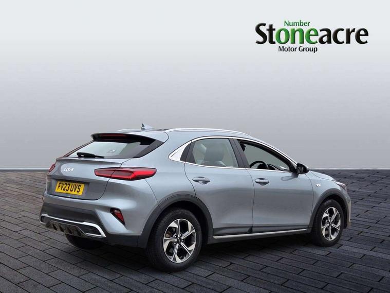 4.2" supervision colour cluster display, 8" colour touch screen, Android auto with voice control, Apple car play with voice control, Bluetooth with Voice Recognition & Music Streaming, Cruise control + speed limiter, Driver attention warning, Emergency call service, Forward Collision-Avoidance Assist (FCA) - City/Pedestrian/Cyclist, Lane Following Assist (LFA), Lane keep assist, Motor driven power steering, Reversing camera with dynamic guide lines, Tailgate, Trip computer, Intelligent Stop and Go, 1x Rear USB-C, 2x Front USB (1x USB-C, 1x USB-A), 7 speakers, DAB Radio with MP3, Rear console USB C-type charge port, Steering wheel mounted controls, All-round Electric Windows with Front Auto Up & Down Function, Automatic headlights, Black side sill mouldings with chrome inserts, Black wheel arch trim, Body colour bumpers, Body colour exterior door handles, Body colour rear spoiler, Body coloured door mirrors with matt black lower housing, Body coloured shark fin antenna, Electrically adjustable and heated door mirrors, Heated rear window with timer, High beam assist, High glossy black and satin chrome rear skid plate, LED Bi-Function projection headlights, LED daytime running lights, LED High-mounted Brake Light, LED rear fog light, LED rear lights, Matt black and satin chrome radiator grille, Rain sensor, Rear side wing doors, Rear wiper, Satin chrome window surround, Silver roof rails, Smaller XCeed badge on rear left hand tailgate, Tinted glass, Variable front intermittent wipers, Windscreen Washer Level Warning, 3 seat bench in 2nd row, 60/40 split folding rear seat, Air conditioning, All-round height adjustable headrests, Centre console storage box/armrest, Chrome interior door handles, Cloth door trim, Cupholders in centre console, Driver and passenger front seat pockets, Driver's seat height adjuster, Front and luggage area 12V power sockets, Front and rear door storage, Front cabin map light with sunglasses case, Illuminated driver and front passenger sunvisors with vanity mirror, ISOFIX Child seat top tethers and anchor fixings, Leather steering wheel, Luggage area light, Luggage area parcel shelf, Luggage hooks, Premium cloth upholstery, Rear cabin light, Rear centre armrest with cupholders, Single front passenger seat, Tilt/telescopic adjustable steering wheel, ABS with Electronic Brakeforce Distribution (EBD) and Brake Assist System (BAS), All round 3-point seatbelts, Dual horn, Electronic stability control (ESC) and vehicle stability management (VSM), Front passenger airbag cut off switch, Height adjustable front seatbelts, Hill start assist control (HAC), Impact sensing auto door unlocking, Manual handbrake, Rear door child safety locks, Seatbelt reminder warning, Traction control, Twin curtain airbags, Twin front airbags, Twin front side airbags, Tyre pressure monitoring system, Alarm system, Engine Immobiliser & Deadlocks, Locking wheel nuts, Remote central door locking with fold away key, 16" alloy wheels, Tyre mobility kit,