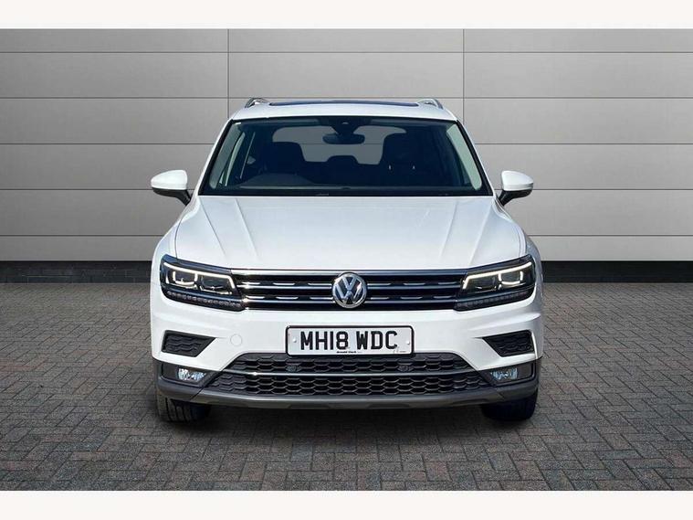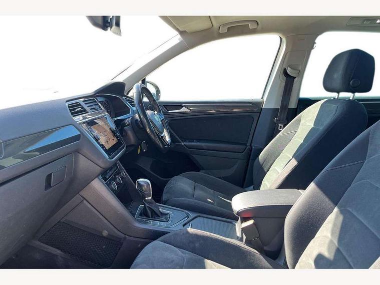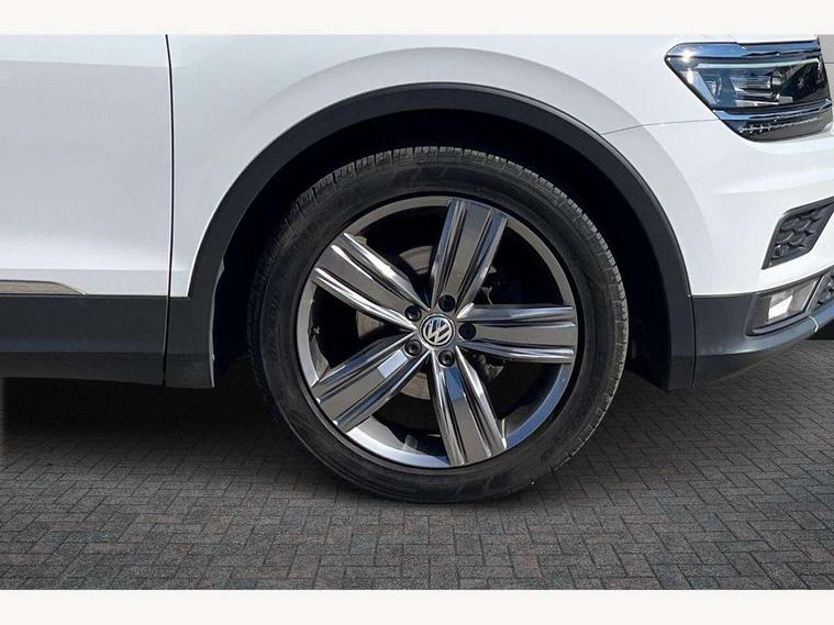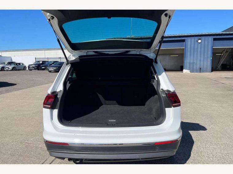 Active information display, Adaptive cruise control, App-Connect, Bluetooth phone integration system, Distance control assist, Fatigue detection system, Instrument cluster, Lane assist, Low washer fluid warning light, Outside temperature display, Service interval indicator, Speed limiter, Warning lights, Diesel particulate filter, XDS electronic differential lock, 2x USB sockets in front, Aux-in socket, DAB Digital radio, MP3 compatible single CD player, SD card slot, Auto dimming interior mirror, Automatic activation of hazard warning lights, Black door protector with chrome inserts, Body colour door handles, Body colour door mirrors, Body coloured bumpers, Chrome side body trim, Chrome side window surrounds, Chrome trimmed radiator grille, Coming/leaving home lighting function, Dusk sensor + auto driving lights, Electric folding door mirrors, Electric heated + adjustable door mirrors, Electric panoramic sunroof with sunblind, Front and rear electric windows, Heated rear window, LED headlights with dynamic light assist daytime running lights and cornering front fog lights, LED rear lights, Rain sensor windscreen wipers, Rear windscreen washer and wiper with interval delay, Silver rear diffuser trim, Silver roof rails, Silver under body guard, Tinted windows (B pillar backwards), Windscreen wipers/ intermittent wipe + 4 position delay, 12V Accessory socket in centre console, 3 rear headrests, 3 zone climate control, 4 load lashing points, 40:20:40 split folding rear seats, Bag hook in luggage compartment, Driver + front passenger lumbar support, Foldable passenger seatback, Front + rear carpet mats, Front centre armrest with 12v socket, Front centre armrest with storage + rear 2 air vents + cupholders, Front seatback folding tables, Height/reach adjust steering wheel, Illuminated driver/passenger vanity mirrors, Illuminated scuff plates, Interior light with delay, Isofix Preparation 2 Rear child seats, Leather gear knob, Load through provision with 2 cupholders when folded, Lockable cooled glovebox, Luggage compartment lighting, Luggage compartment side storage, Map pockets on front seats, Passenger seat height adjuster, Passenger underseat drawer, Rear cupholders, Removable luggage cover, Sliding/reclining rear seats, Storage compartment in driver's door, Storage compartment in passenger's door, Storage compartment in rear doors, Storage tray on dashboard, Sunglasses storage, Variable boot floor, Ambient lighting pack - Tiguan, 3 rear 3 point seatbelts, ABS+EBD+Brake assist, Active bonnet, Active pedestrian safety system, Curtain airbags, Driver/Front Passenger airbags, Driver/Passenger whiplash optimised head restraints, Drivers knee airbag, DTC - Drag torque control, Electronic parking brake with auto hold, ESP with EDL + ASR, First aid kit, Front assist including city emergency braking, Front side airbags, Head airbag system, Height adjustable front 3 point seatbelts + pretensioners, Hill hold control, Passenger airbag deactivate switch, Passenger knee airbag, Pre crash system, Rear side airbags, Seatbelt warning lamp and buzzer, Two tone horn, Warning triangle, Alarm with interior protection, Electronic engine immobiliser, Remote central locking with 2 remote folding keys, Chrome door trim inserts, Piano black interior trim, Steel space saver spare wheel,