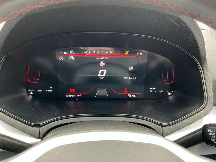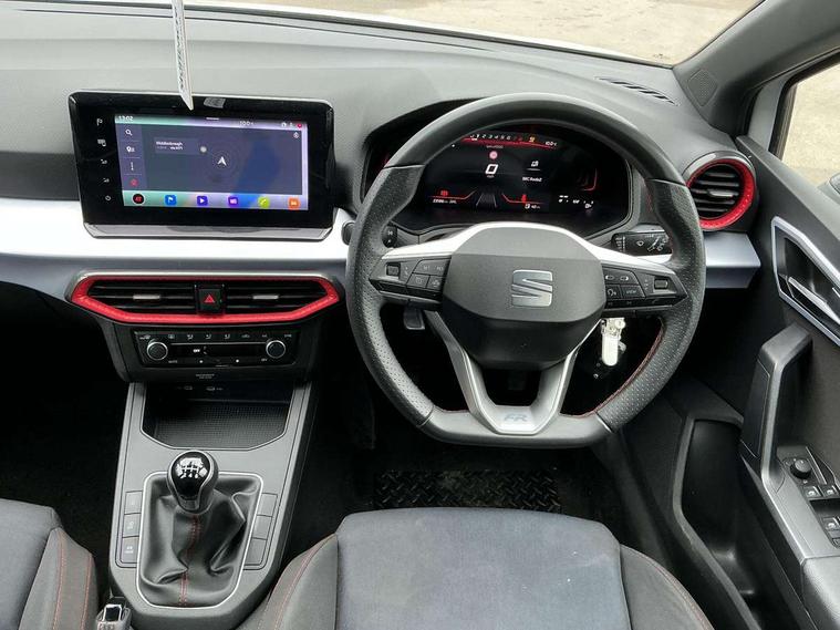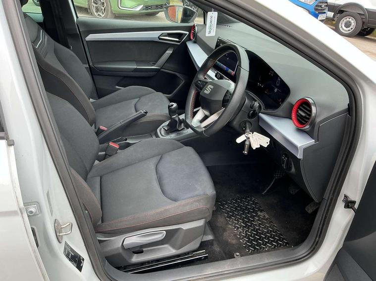 'Lights On' Reminder warning buzzer, 8" Digital cockpit, 9.2" touchscreen navigation system with type C USB socket, Voice control and DAB/AM/FM radio, Auto start and stop system, Bluetooth audio streaming with handsfree system, Digital clock, E-call, Full link smartphone integration with mirror link, wireless apple carplay, Google android auto + USB Type C cable for apple and android devices, Lane assist, Low fuel warning light, Outside temperature gauge, Power Steering, Rear parking sensor, Seat connect plus with safety, service, remote and online, SEAT drive profiles and ECO function, SEAT logo boot release, Speed limiter, Traffic sign recognition, Trip computer, Sports suspension, 6 speakers, Auxiliary input socket, Radio/MP3 player, SD card slot, Steering wheel mounted controls, Anti theft roof antenna, Auto dimming rear view mirror, Automatic rain sensing wipers, Black door mirror caps, Body colour bumpers, Body colour door handles, Brilliant black window surrounds, Dark tinted rear windows, Electric adjustable/heated/folding door mirrors, Electric front windows, Electric headlight adjustment, Electric rear windows, Front/rear fog lights, FULL LED automatic headlights with dynamic headlight range control, coming and leaving home, LED daytime running lights, LED 3rd brake light, LED tail lights, Rear roof spoiler with FR twin exhausts, Rear side wing doors, Rear wiper, 3 seat bench in 2nd row, 60/40 split folding rear seat, Ambient interior lighting, Chrome detailing and black headlining, Cloth upholstery, Dual zone climate control with combination filter, Front courtesy lights, Front cupholders x 2, Front reading lights, Gear shift indicator, Glovebox, Height adjustable front and rear headrests (five), Height adjustable front seats, Height/reach adjust steering wheel, Illuminated air vent surrounds, Illuminated boot, Instrument lighting with brightness control, Isofix, Leather multifunction flat bottomed sports steering wheel, Passenger sunvisor, Single front passenger seat, Sports seats, Sunvisors with mirror and driver side card holder, Safety and driving pack (S) - Ibiza, 3 point seatbelts on all 3 rear seats, ABS, Active front headrests, Child locks on rear doors, Electronic stability control, Energy recovery system, Front driver and passenger side airbags with curtain airbag and front passenger airbag deactivation, Hill hold control, Multi-Collision braking, Seat belt reminder for front and rear seats, Tiredness recognition system, Tyre pressure monitoring system, Locking wheel bolts, Perimeter alarm and interior monitoring with backup horn and tow away protection, Remote central locking + deadlocks, 17" Alloy wheels in Brilliant silver,