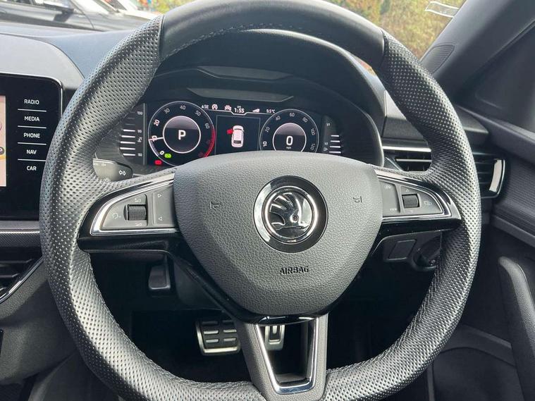 Amundsen satellite navigation with 9.2" glass colour touchscreen with virtual cockpit, Bluetooth system, Easy light assist, Front assist system, Lane assist, Multifunction colour trip computer, Rain and light assist with auto dimming rear view mirror, Speed limiter, Wireless SmartLink for Apple Car Play, 2 USB - C ports, 8 loudspeakers, DAB Digital radio, Body colour door mirrors and handles, Chrome grille surround, Electric folding door mirrors, Electrically adjustable and heated door mirrors, Front and rear electric windows, Front fog lights with cornering function, High beam control, Privacy glass, Tinted windows, 12V Accessory socket in centre console, 12V socket in luggage compartment, Chrome inner door handles, Chrome on gear and handbrake lever, Chrome strip on the dash and door panel, Dual zone climate control, Glasses storage in roof liner, Glovebox with cooling system and illumination, Height adjustable passenger seat, Instrument cluster with chrome painted decor ring, ISOFIX for rear passenger seat, Net in centre console, Reading lights for driver and front passenger, Storage compartment under front seats, Sun visor with make up mirror for front passenger, Textile floor mats, Third rear headrest, Umbrella, Curtain airbags, Emergency call and proactive services, Front head and side airbags, Hill hold control, Passenger airbag switch off function, Seat belt reminder for all seats, Two tone horn, Alarm, Anti-theft wheel bolts, Keyless entry with start/stop button, SAFE function for remote central locking, Temporary space saver wheel,