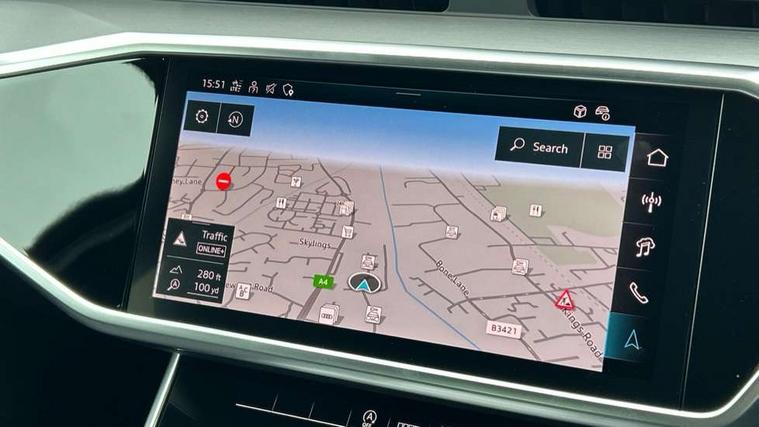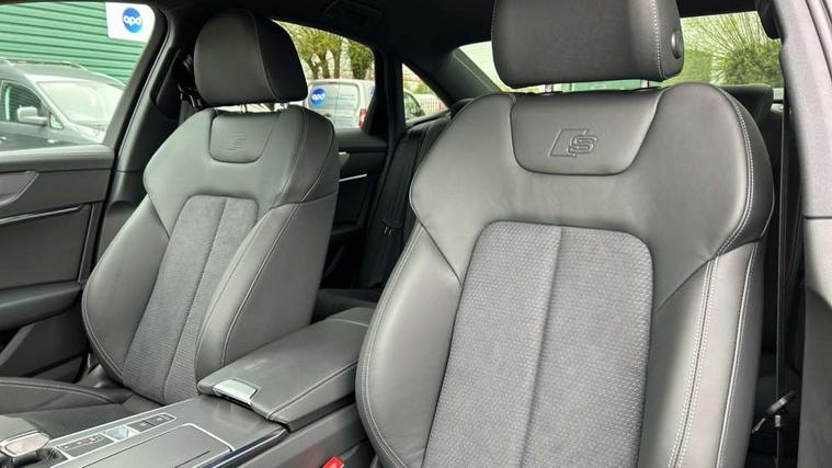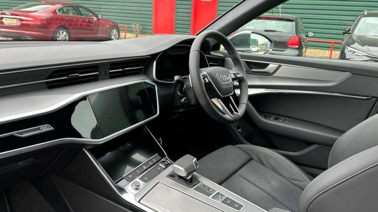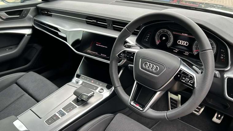 Audi connect safety and service (e-call), Audi connect with Amazon Alexa Integration, Audi drive select, Audi parking system plus - acoustic and visual park assist system for front and rear, Audi virtual cockpit, Automatic start/stop system with coasting functionality, Bluetooth interface, Camera based traffic sign recognition, Electric boot lid release, Lane departure warning system, MMI navigation plus with 10.1" and 8.6" touch screens, Progressive steering, Rear view camera, Service interval indicator, Smartphone interface includes wireless Apple carplay/Android Auto, Voice control system, Sports suspension, Audi front music interface, Audi sound system, Auxiliary input socket, DAB Digital radio, USB connection, Body coloured door mirrors, Electric front/rear windows, Electrically adjustable heated and folding + automatically dimming exterior mirrors with memory function, Frameless auto dimming interior rear view mirror, Front intermittent wipers, Heat insulating darkened glass in side and rear windows, Heat insulating glass in windshield, LED rear lights with dynamic indicators, LED signature front daytime running light, LED third brake light, Matrix LED headlights, Matt black rear diffuser with diffuser strip and tailpipes in chrome, Matt black side air intake grille with inlay in matt aluminium, Privacy glass, Radiator grille in anthracite black matt, single frame in chrome and horizontal struts in matt aluminium silver, Rain and light sensors, Rear boot, Rear side wing doors, 2 zone deluxe electronic climate control, 3 spoke high multi-function perforated leather steering wheel with contrast stitching and shift paddles, 40/20/40 split folding 3 rear seat bench in 3 parts with rear centre armrest, Audi phone box light, Black cloth headlining, Electrically adjustable front seats including seat height, fore/aft position, backrest angle and 4-way lumbar with memory for driver's seat, Front and rear floor mats, Front centre armrest, Front head restraints, Heated front seats, Height/reach adjust steering wheel, Illuminated door sill trims with S logo, Illuminated sun visors with vanity mirrors, Leather gear knob, Rear headrests, Single front passenger seat, Stainless steel pedals and foot rest, Tool kit and car jack, LED Interior Ambient Lighting Pack - A6, Non smoking pack - A6, S line exterior style pack - A6, 3 point seatbelts on all seats, Airbags - Front side, front and rear including head, Audi pre-sense front, EBD - Electronic brakeforce distribution, Electromechanical parking brake, Electronic Stability Control (ESC) including ABS, ASR and EDL, Extended pedestrian protection measures, ISOFIX child seat mounting for front passenger seat and ISOFIX child seat mounting with Top Tether for outer rear seats, Manual child proof rear door locks, Seatbelt monitoring, Tyre pressure warning light, Warning triangle and first aid kit, Anti theft alarm with tow away protection, Anti-theft wheel bolts and wheel loosening detection, Immobiliser, Keyless Go, Remote central locking, Matt brushed aluminium inlays,