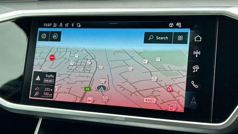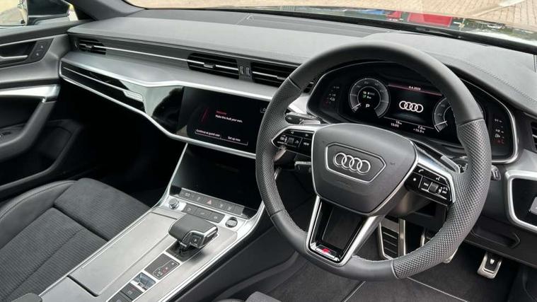 Audi connect safety and service (e-call), Audi connect with Amazon Alexa Integration, Audi drive select, Audi parking system plus - acoustic and visual park assist system for front and rear, Audi virtual cockpit, Automatic start/stop system with coasting functionality, Bluetooth interface, Camera based traffic sign recognition, Lane departure warning system, MMI navigation plus with 10.1" and 8.6" touch screens, Power operated tailgate, Progressive steering, Rear view camera, Service interval indicator, Smartphone interface includes wireless Apple carplay/Android Auto, Voice control system, 3 pin 10 amp domestic charging cable, 52 litre fuel tank, 7.4 kW onboard charger, Compact charging system, Hybrid propulsion system, Industrial connector CEE 32A, 230V, long and straight for the e-tron charging system, Mode 3 charging cable for public charging (AC), Sports suspension, Type 2 socket for AC charging, Audi front music interface, Audi sound system, Auxiliary input socket, DAB Digital radio, USB connection, Aluminium roof rails, Body colour rear roof spoiler, Body coloured door mirrors, Electric front/rear windows, Electrically adjustable heated and folding + automatically dimming exterior mirrors with memory function, Frameless auto dimming interior rear view mirror, Front intermittent wipers, Heat insulating darkened glass in side and rear windows, Heat insulating glass in windshield, LED rear lights with dynamic indicators, LED signature front daytime running light, LED third brake light, Matrix LED headlights, Matt black rear diffuser with diffuser strip and tailpipes in chrome, Matt black side air intake grille with inlay in matt aluminium, Privacy glass, Radiator grille in anthracite black matt, single frame in chrome and horizontal struts in matt aluminium silver, Rain and light sensors, Rear side wing doors, Rear wiper, 3 spoke high multi-function perforated leather steering wheel with contrast stitching and shift paddles, 4 zone deluxe automatic climate control, 40/20/40 split folding 3 rear seat bench in 3 parts with rear centre armrest, Audi phone box light, Black cloth headlining, Electrically adjustable front seats including seat height, fore/aft position, backrest angle and 4-way lumbar with memory for driver's seat, Front and rear floor mats, Front centre armrest, Front head restraints, Heated front seats, Height/reach adjust steering wheel, Illuminated door sill trims with S logo, Illuminated sun visors with vanity mirrors, Leather gear knob, Luggage compartment system, Rear headrests, Single front passenger seat, Stainless steel pedals and foot rest, Tool kit and car jack, LED Interior Ambient Lighting Pack - A6, Non smoking pack - A6, S line exterior style pack - A6, 3 point seatbelts on all seats, Airbags - Front side, front and rear including head, Audi pre-sense front, EBD - Electronic brakeforce distribution, Electromechanical parking brake, Electronic Stability Control (ESC) including ABS, ASR and EDL, Extended pedestrian protection measures, ISOFIX child seat mounting for front passenger seat and ISOFIX child seat mounting with Top Tether for outer rear seats, Manual child proof rear door locks, Seatbelt monitoring, Tyre pressure warning light, Warning triangle and first aid kit, Anti theft alarm with tow away protection, Anti-theft wheel bolts and wheel loosening detection, Immobiliser, Keyless Go, Remote central locking, Matt brushed aluminium inlays, Tyre repair kit,