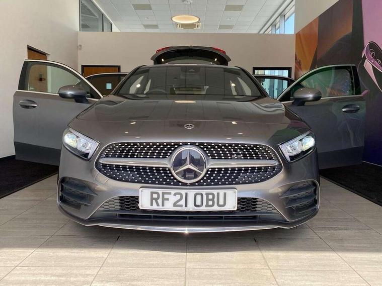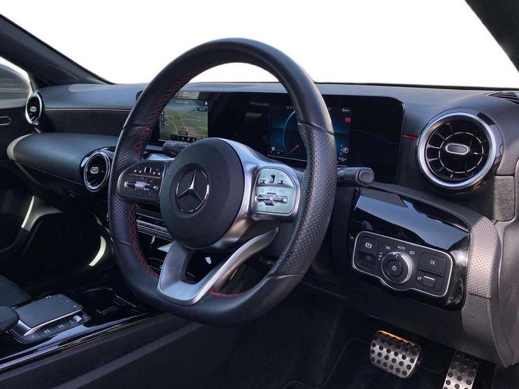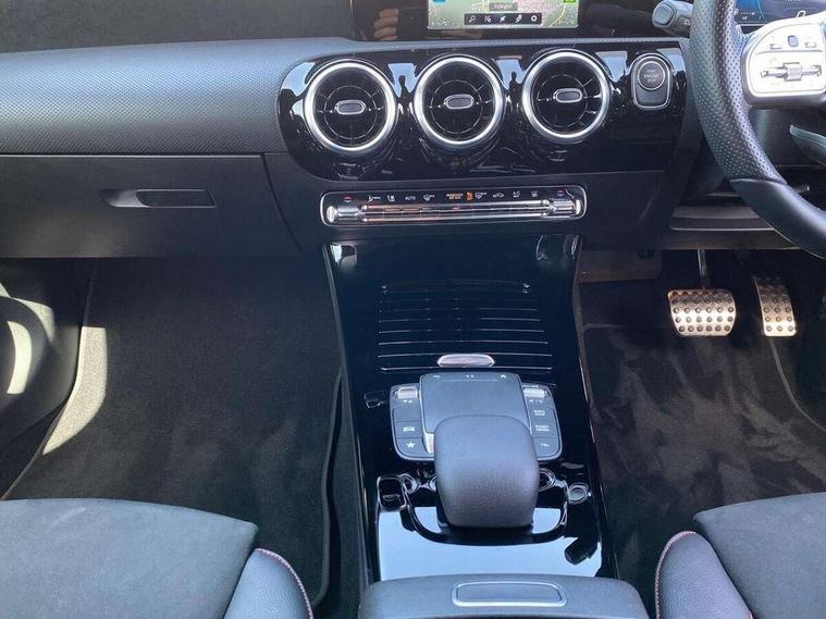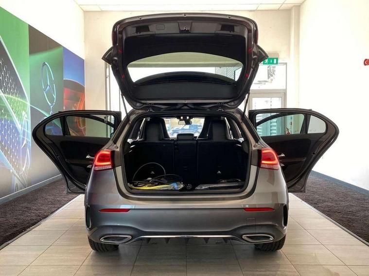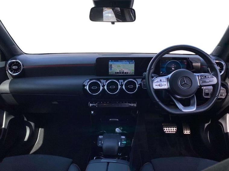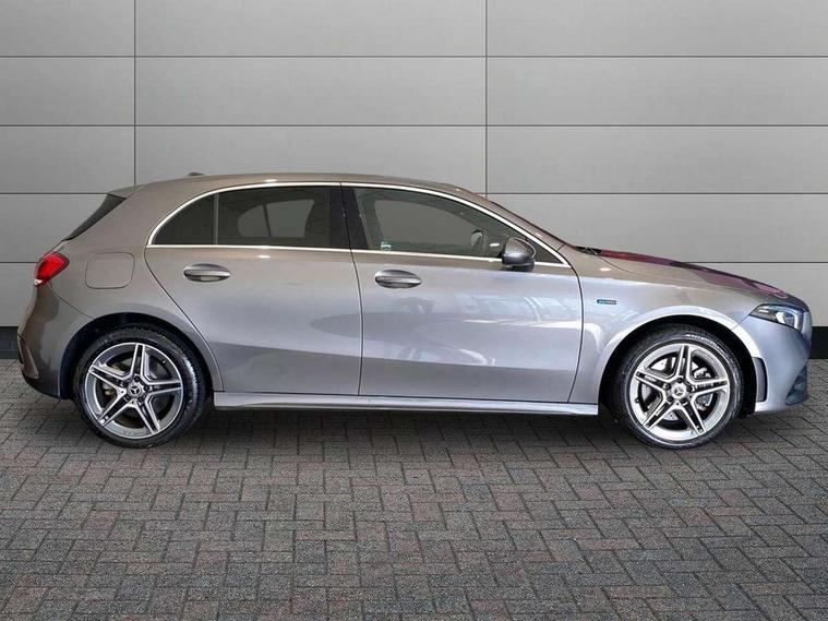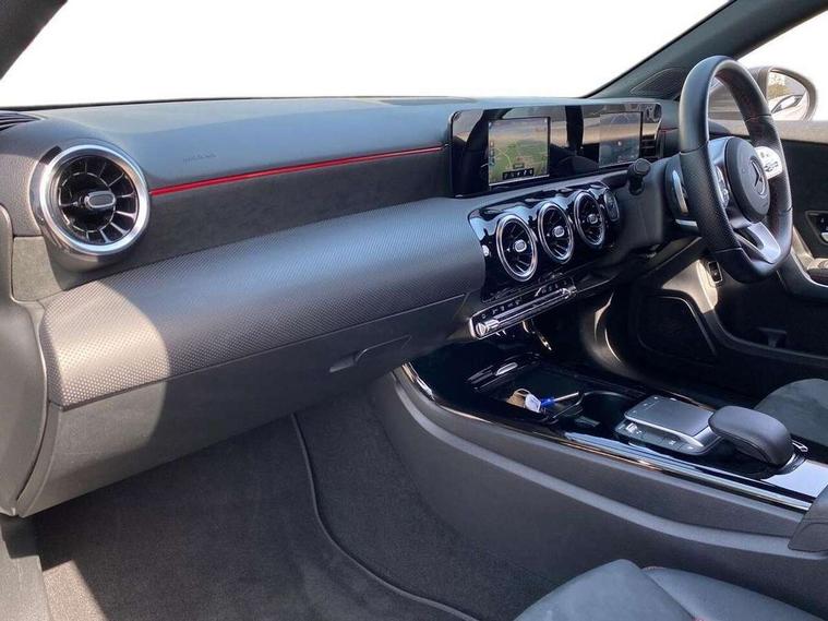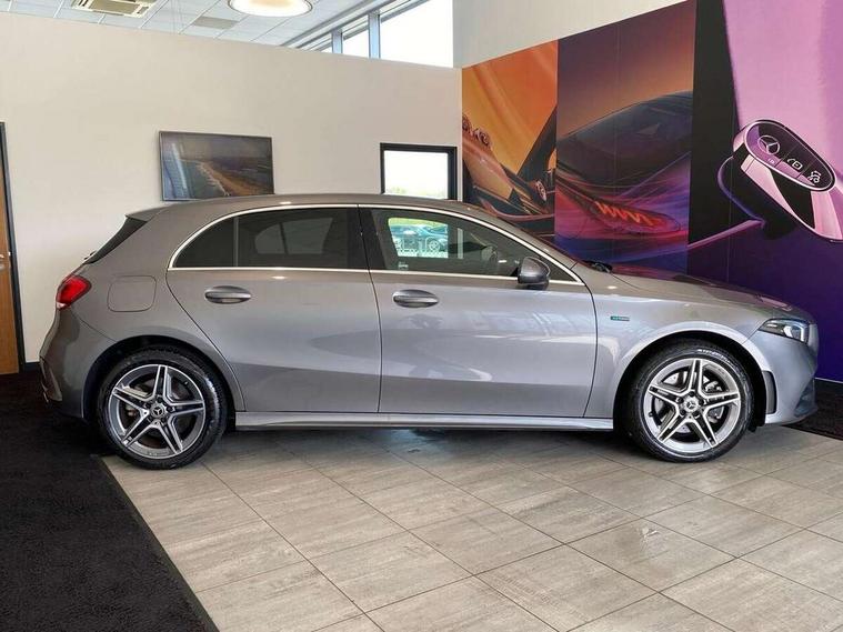 180 degree rear view camera with parking guidelines, 7" colour screen in instrument panel, 7" touchscreen media display, Acoustic ambient protection, Attention assist, Brake pad wear indicator warning light, Car wash mode, Cruise control + speed limiter, Direct steering, Dual bluetooth interfaces, DYNAMIC SELECT with a choice of driving modes (ECO, Comfort, Sport and Individual), ECO start/stop function, Fluid level warning indicator for fuel, oil, coolant and washer fluid, Hard-disk navigation, Hey Mercedes Voice activation, Lamp failure indicator, Mercedes me connect including emergency call system, accident recovery, breakdown and maintenance management, Mercedes me remote services, Outside temperature gauge, Owners manual in English, Pre-installation for private car sharing, Preinstallation for Mercedes Benz link, Remote and charging services plus, Service indicator (ASSYST), Speed sensitive power steering, Trip computer, 7.4 kW monophase on board charger, Comfort suspension, Mode 3 charging cable 11 kW, Rear axle multi-link, 2 USB ports (type C) in rear stowage compartment and one in front of center console, 6 speakers, DAB Digital radio, MBUX multimedia system with DAB digital radio and touchpad including satellite navigation, Mercedes-Benz sound system - 100W, 4 Electric Front and Rear windows, Adaptive brake lights, AMG bodystyling - Front apron with splitter in chrome, rear apron with chrome trim and chrome visible trim elements in tailpipe, Black weather strip, Body colour bumpers, Body colour door handles, Body colour side skirt, Body coloured door mirrors, Chrome beltline trim, Diamond radiator grille with chrome pins and silver louvre + chrome insert, Electric adjustable and heated door mirrors with integrated LED side indicators, EQ badging, Exhaust system - Twin visible tailpipes in polished stainless steel, Headlamp assist automatic headlamp activation, Heated glass rear windscreen + timer control, LED high performance headlamps with integrated LED daytime running lights, LED tail lamp, LED third brake light, Privacy glass, Radio aerial, Rain sensing windscreen wipers with two sensitivity settings, Rear fog lights, Rear wiper, Window line trim strip in chrome, 3 pin charging cable plug, 3 Spoke flat bottom leather multi function steering wheel with perforated leather in grip area, 40:20:40 split folding rear seats, Artico man-made leather/Microfibre Dinamica upholstery with red contrast stitching, Auto Mercedes-Benz child seat recognition sensor, Black air vents with surround in silver chrome, Black roof lining, Brushed stainless steel sports pedals with rubber studs, Charging socket, Controller on centre console with chrome surround, Floor mats with stitched edging and AMG lettering, Front centre armrest with storage compartment, Front door sills with Mercedes Benz lettering, Front seat backs luggage nets, Front seat cushion length adjustment, Galvanished gear shift paddles on steering wheel, Heated front seats, Height/reach adjustable steering column, Interior mirror with reading lamps in black and frameless, Manual height adjustable front seats, Pre-entry climate control, Rear head restraints, Seat occupancy sensor for front passenger seat, Sports seats with integrated headrests, Stowage compartment in centre console with retractable cover, Sunvisors with illuminated vanity mirrors, Touchpad on center console, Twin front cupholders, Two zone thermotronic luxury automatic climate control, Light and sight pack - A Class, Seat comfort pack - A Class, 3 rear 3 point seatbelts, ABS with Brake Assist, Active bonnet, Active brake assist includes forward collision warning system with autonomous braking, Adaptive brake assist with hold function and hill start assist, Childproof locks manually operated for rear doors and electrically operated for rear power windows, Crash responsive emergency lighting, Driver and passenger head and side airbags, Drivers knee airbag, Dual stage driver/passenger airbags, Electronic parking brake, ESP curve dynamic assist, ESP with ASR, Front and rear seatbelt reminder, Front brake callipers with Mercedes Benz lettering, ISOFIX and top tether child seat fixing points in two outer rear seats, Perforated front brake discs, Radar based regeneration, Tyre pressure monitoring system, Warning triangle and first aid kit, Window airbags, Alarm system/interior protection/immobiliser, Keyless Go, Remote central locking and crash sensor with emergency opening function, Urban guard vehicle protection system with immobiliser and interior protection, Black seatbelts, Dinamica microfibre trim in black, 18" AMG 5 twin spoke light alloy wheels in titanium grey with highsheen finish, Summer tyres, Tirefit sealant kit,