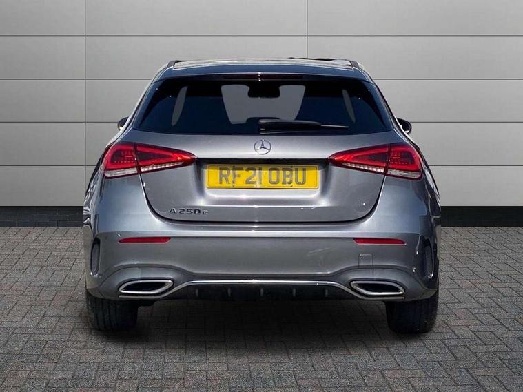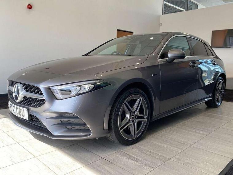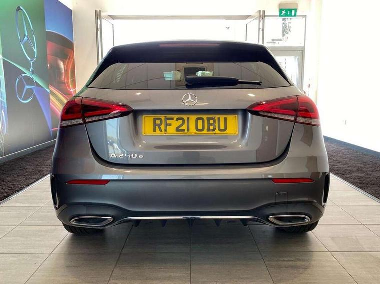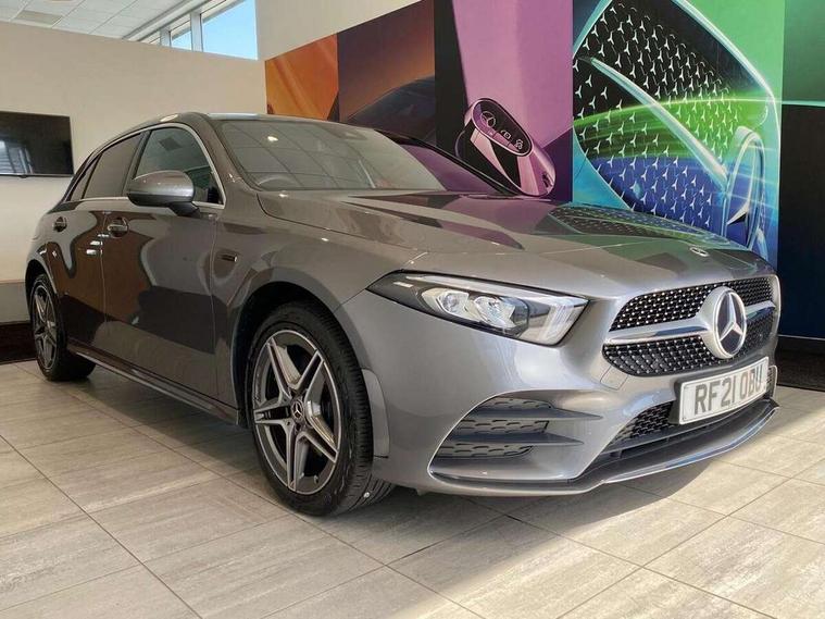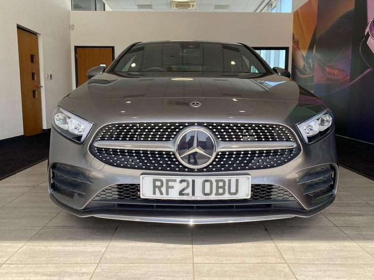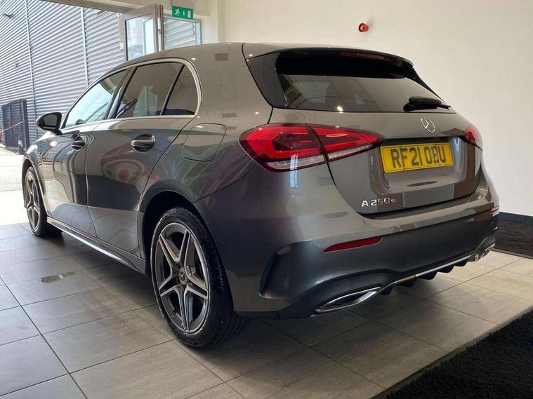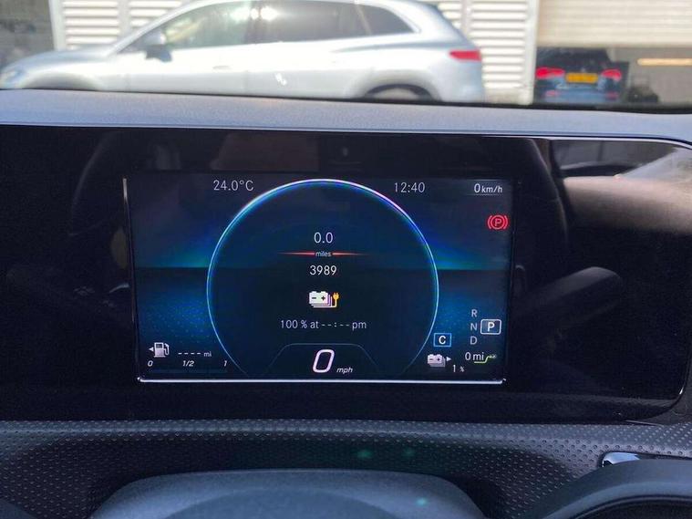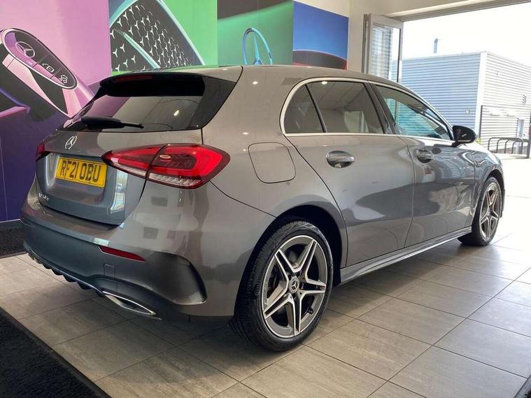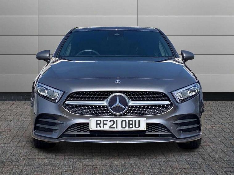 180 degree rear view camera with parking guidelines, 7" colour screen in instrument panel, 7" touchscreen media display, Acoustic ambient protection, Attention assist, Brake pad wear indicator warning light, Car wash mode, Cruise control + speed limiter, Direct steering, Dual bluetooth interfaces, DYNAMIC SELECT with a choice of driving modes (ECO, Comfort, Sport and Individual), ECO start/stop function, Fluid level warning indicator for fuel, oil, coolant and washer fluid, Hard-disk navigation, Hey Mercedes Voice activation, Lamp failure indicator, Mercedes me connect including emergency call system, accident recovery, breakdown and maintenance management, Mercedes me remote services, Outside temperature gauge, Owners manual in English, Pre-installation for private car sharing, Preinstallation for Mercedes Benz link, Remote and charging services plus, Service indicator (ASSYST), Speed sensitive power steering, Trip computer, 7.4 kW monophase on board charger, Comfort suspension, Mode 3 charging cable 11 kW, Rear axle multi-link, 2 USB ports (type C) in rear stowage compartment and one in front of center console, 6 speakers, DAB Digital radio, MBUX multimedia system with DAB digital radio and touchpad including satellite navigation, Mercedes-Benz sound system - 100W, 4 Electric Front and Rear windows, Adaptive brake lights, AMG bodystyling - Front apron with splitter in chrome, rear apron with chrome trim and chrome visible trim elements in tailpipe, Black weather strip, Body colour bumpers, Body colour door handles, Body colour side skirt, Body coloured door mirrors, Chrome beltline trim, Diamond radiator grille with chrome pins and silver louvre + chrome insert, Electric adjustable and heated door mirrors with integrated LED side indicators, EQ badging, Exhaust system - Twin visible tailpipes in polished stainless steel, Headlamp assist automatic headlamp activation, Heated glass rear windscreen + timer control, LED high performance headlamps with integrated LED daytime running lights, LED tail lamp, LED third brake light, Privacy glass, Radio aerial, Rain sensing windscreen wipers with two sensitivity settings, Rear fog lights, Rear wiper, Window line trim strip in chrome, 3 pin charging cable plug, 3 Spoke flat bottom leather multi function steering wheel with perforated leather in grip area, 40:20:40 split folding rear seats, Artico man-made leather/Microfibre Dinamica upholstery with red contrast stitching, Auto Mercedes-Benz child seat recognition sensor, Black air vents with surround in silver chrome, Black roof lining, Brushed stainless steel sports pedals with rubber studs, Charging socket, Controller on centre console with chrome surround, Floor mats with stitched edging and AMG lettering, Front centre armrest with storage compartment, Front door sills with Mercedes Benz lettering, Front seat backs luggage nets, Front seat cushion length adjustment, Galvanished gear shift paddles on steering wheel, Heated front seats, Height/reach adjustable steering column, Interior mirror with reading lamps in black and frameless, Manual height adjustable front seats, Pre-entry climate control, Rear head restraints, Seat occupancy sensor for front passenger seat, Sports seats with integrated headrests, Stowage compartment in centre console with retractable cover, Sunvisors with illuminated vanity mirrors, Touchpad on center console, Twin front cupholders, Two zone thermotronic luxury automatic climate control, Light and sight pack - A Class, Seat comfort pack - A Class, 3 rear 3 point seatbelts, ABS with Brake Assist, Active bonnet, Active brake assist includes forward collision warning system with autonomous braking, Adaptive brake assist with hold function and hill start assist, Childproof locks manually operated for rear doors and electrically operated for rear power windows, Crash responsive emergency lighting, Driver and passenger head and side airbags, Drivers knee airbag, Dual stage driver/passenger airbags, Electronic parking brake, ESP curve dynamic assist, ESP with ASR, Front and rear seatbelt reminder, Front brake callipers with Mercedes Benz lettering, ISOFIX and top tether child seat fixing points in two outer rear seats, Perforated front brake discs, Radar based regeneration, Tyre pressure monitoring system, Warning triangle and first aid kit, Window airbags, Alarm system/interior protection/immobiliser, Keyless Go, Remote central locking and crash sensor with emergency opening function, Urban guard vehicle protection system with immobiliser and interior protection, Black seatbelts, Dinamica microfibre trim in black, 18" AMG 5 twin spoke light alloy wheels in titanium grey with highsheen finish, Summer tyres, Tirefit sealant kit,