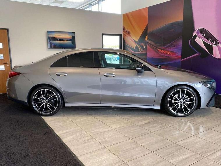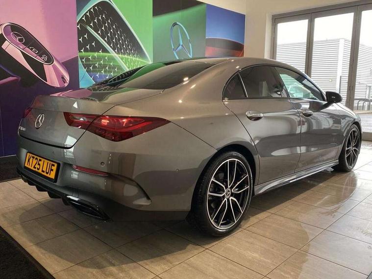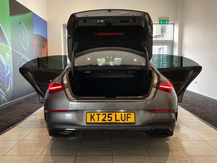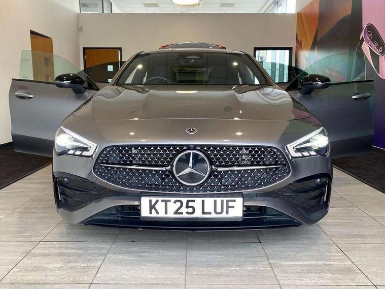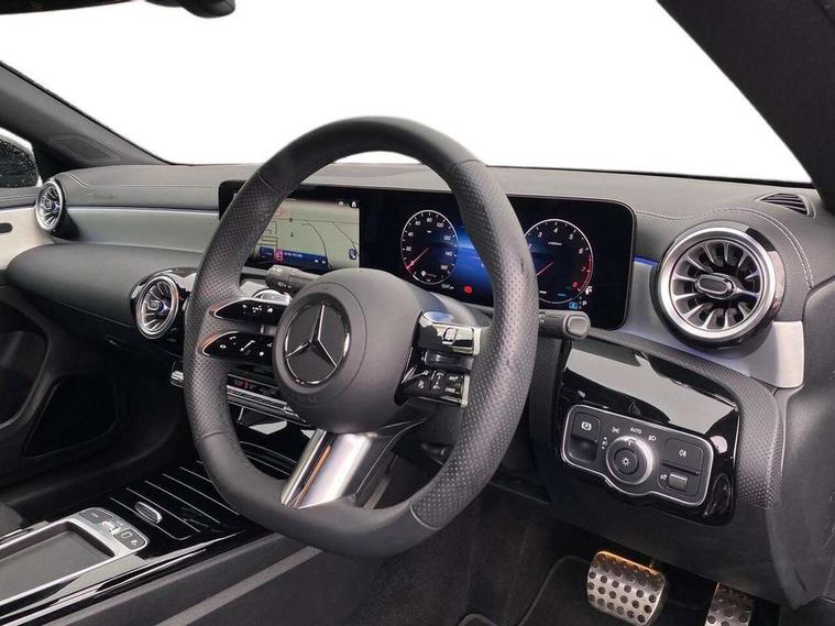10.25 inch Instrument display with digital cockpit, 10.25 inch touchscreen central media display, Active lane keeping assist, Attention assist - Monitors steering behaviour and long journey fatigue, Blind spot assist, Bluetooth connection, Car wash mode, Cruise control with limiter, Direct steer system, DYNAMIC SELECT with a choice of driving modes (ECO, Comfort, Sport and Individual), ECO start/stop function, Fingerprint sensor, Fluid level warning indicator for fuel, oil, coolant and washer fluid, Hard-disk navigation, Hey Mercedes Voice activation, Lamp failure indicator, Mercedes me connect including emergency call system, accident recovery, breakdown and maintenance management, Mercedes me remote services, Outside temperature gauge, Owners manual in English, Pre-installation of private car share, Radio aerial integrated into front and rear windshields, Service indicator (ASSYST), Smartphone integration with Apple CarPlay and Android auto, Speed limit assist, Trip computer in multifunction display with current consumption indicator, Wireless charging in the front centre console, Comfort suspension with ride height lowering, Rear axle multi-link, DAB digital radio tuner, MBUX multimedia system, Mercedes Benz advanced sound system (225 W) with 10 speakers, 1 central speaker, speakers on doors, a tweeter on door, one sub woofer + boost amplifier, Pre installation for Mercedes Benz Link, Adaptive brake lights, AMG body styling with AMG front apron and rear apron and visible exhaust tailpipe in chrome trim elements, Body colour door handles, Electric windows, Electrically adjustable and heated door mirrors with integrated LED indicators, Exhaust system with 2 Visible tailpipe trim elements and rear apron with trim in chrome, Hand free access, Headlamp assist automatic headlamp activation, Heated glass rear windscreen + timer control, High level LED third brake light, Interior mirror with black reading lamps and frameless, LED high performance headlamps with integrated LED daytime running lights and adaptive highbeam assist, LED tail lamp, Privacy glass with dark tinting on rear side windows and rear window, Radiator grille with Mercedes-Benz pattern in chrome and central Mercedes star, single louvre in high-gloss black with chrome inserts, Rain sensing windscreen wipers with two sensitivity settings, Rear boot, Rear fog lamp, Rear side wing doors, Variable front intermittent wipers, 3 seat bench in 2nd row, 3 twin spoke flattened multifunction steering wheel in nappa leather - horizontal twin spoke in high gloss black, vertical twin spoke in silver chrome, 40:20:40 split folding rear seat backrests, Air condition air vents with surround in silver chrome, Air conditioning - Two zone thermotronic luxury automatic climate control with display, Artico man-made leather/Microcut microfibre upholstery, Automatic child seat recognition sensor, Black roof lining, Brushed stainless steel sports pedals with rubber studs, Electrically adjustable front memory seats including 4 way lumbar support, Floor mats with stitched AMG lettering, Fluorescent jacket, Front centre armrest with stowage, Galvanished gear shift paddles in silver chrome, Interior lighting - 64 colour Ambient lighting, Luggage net on driver/front passenger seat backrest, Manually height and reach adjustable steering column, Rear armrest with two integral cup holders for drinks, Rear head restraints, Single front passenger seat, Sport seats with fixed head restraints, Stowage compartment in centre console with retractable cover, Sunvisors with illuminated vanity mirrors, Twin front cupholders, Two outer rear seat isofix and top tether child seat fixing points, Keyless go comfort pack - CLA, Light and sight pack - CLA, Mirror pack - CLA, Night package - CLA, Parking pack with reversing camera - CLA, Seat comfort pack - CLA, USB package plus - CLA, Winter pack - CLA, Active bonnet pedestrain safety measure which detects an impact and raises bonnet by 65mm, Active brake assist includes forward collision warning system with autonomous braking, Adaptive brake assist with hold function and hill start assist, Anti lock braking system (ABS) with brake assist, Bonnet with power domes, Brake calipers with Mercedes-Benz lettering, Brake pad wear warning indicator, Childproof locks manually operated for rear doors and electrically operated for rear power windows, Crash responsive emergency lighting, Crystal grey seat belts, Driver and front passenger head and sidebags, Driver and front passenger windowbags, Drivers knee airbag, Dual stage driver and front passenger airbags, Electric parking brake, Electronic stability programme with acceleration skid control, ESP curve dynamic assist, Exit warning, Front and rear seatbelt reminder, Front passenger seat occupancy sensor, Perforated front brake discs, Sports braking system, Three point rear seat belts, Tyre pressure monitoring system, Warning triangle and first aid kit, Alarm system with immobiliser and interior protection -Thatcham category 1, Guard 360 deg vehicle protection - tow away protection with visual, acoustic warning, interior monitoring, preinstallation for parking damage, Remote central locking and crash sensor with emergency opening function, Light aluminium with longitudinal grain interior trim, 19" AMG 5 twin spoke light alloy wheels painted in high gloss black with high sheen finish, Summer tyres, Tirefit tyre sealant kit,