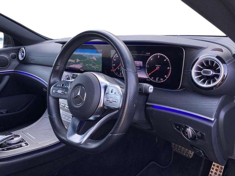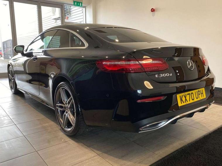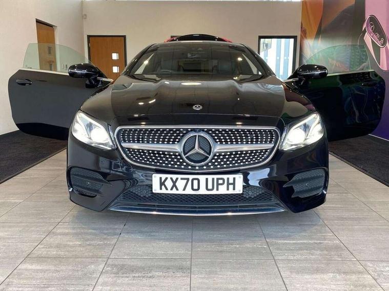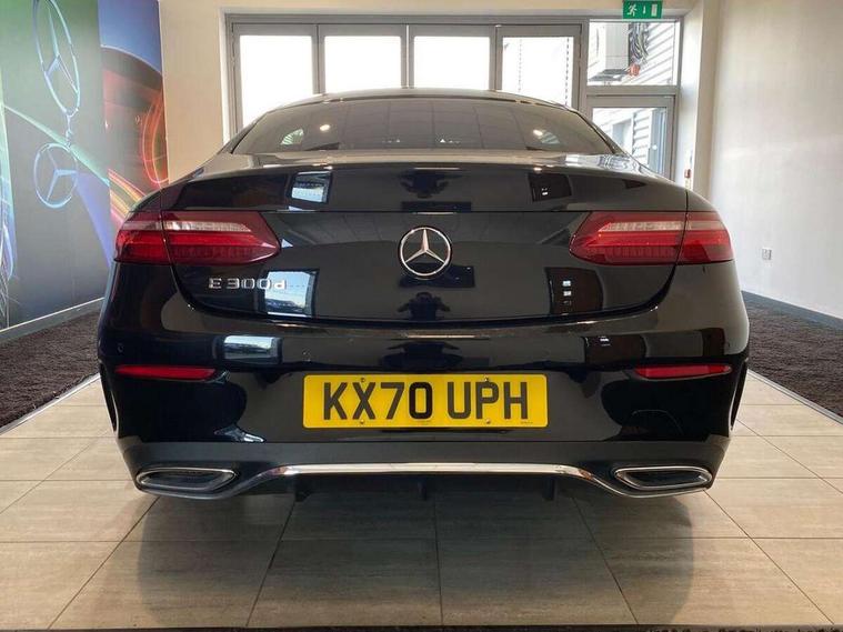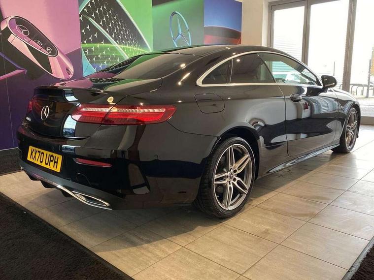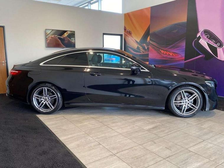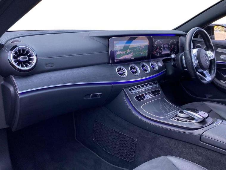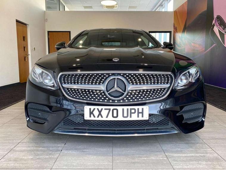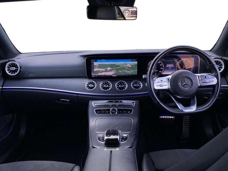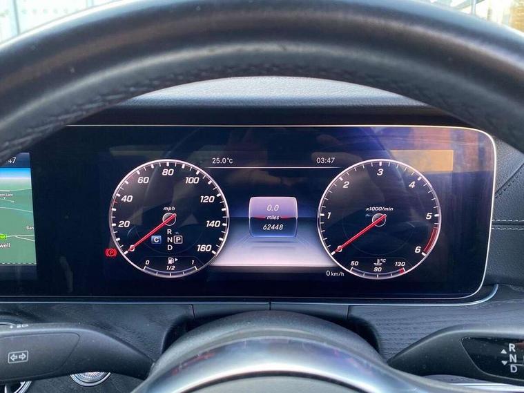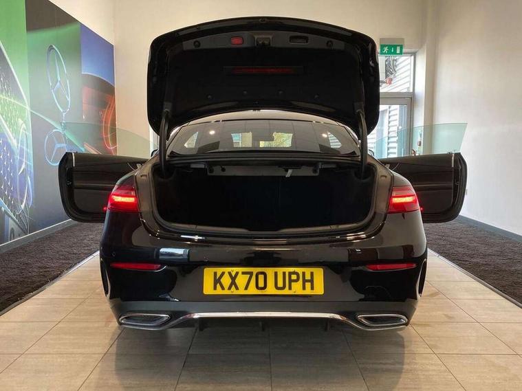 360 degree parking camera, Active parking assist including front and rear parking sensors, Analogue clock, Attention assist, Blind spot assist, Brake wear warning display, Cockpit display 12.3" widescreen digital instrument cluster, Collision prevention assist plus, COMAND online HDD navigation with Radio/Media interface, linguatronic + smartphone integration/Apple CarPlay/Android Auto and 12.3" Cockpit display, Cruise control with variable speed limiter, Direct steer speed sensitive steering, DYNAMIC SELECT with a choice of driving modes (ECO, Comfort, Sport, Sport+ and Individual), ECO start/stop function, High resolution 12.3" multimedia colour display, Mercedes connect me, Outside temperature display, Pre-installation for Vehicle Monitoring, Pre-installation for Vehicle Setup, Remote boot release, Service indicator (ASSYST), Status display for rear seat belts in instrument cluster, Touchpad with control wheel, Traffic sign assist, Trip computer in multifunction display showing current fuel consumption, Wireless charging, 25 litre AdBlue tank, 66 litre fuel tank, Agility control sports suspension with selective damping system, 2 USB ports in centre console, 2 USB ports in the rear, DAB Digital radio, Smartphone integration via Android Auto/Apple CarPlay, Media Interface, USB and Bluetooth interface and touchpad with control wheel, Adaptive brake lights, AMG bodystyling front and rear aprons, side skirts, AMG boot lid spoiler in body colour, Body colour door handles, Body coloured bumpers, Electric windows with one touch opening/closing and obstruction sensors, Exterior mirrors heated and electronically adjustable, Illuminated front door sill panels with Mercedes-Benz lettering, Multibeam LED Intelligent Light System with Adaptive Highbeam Assist, Pre-installation for roof rail systems, Privacy glass Includes rear side windows and rear windscreen, Radiator grille with integral star and 2 louvres in matt iridium silver with chrome trim, Rear LED lights, Top surround of side windows in polished aluminium, Visible twin pipe exhaust system integrated into bumper, Waistline in polished aluminium, 3-spoke flat bottom multifunction AMG steering wheel with Touch Control buttons, trimmed in black nappa leather, 40:20:40 split folding rear seats, Artico man-made leather upper dashboard and beltlines with contrast stitching, Automatic child seat recognition sensor, Automatic two zone climate control, Belt feeder driver and front passenger seat belt automatically positioned within easier reach, Black roof lining, Central stowage compartment with 12 V socket in centre console, Central stowage compartment with USB socket for use with Android Auto and Apple CarPlay, Centre armrest and door handle illumination, Chrome door pins, Floor mats with AMG lettering, Front and rear door pockets, Front centre armrest with stowage compartment, Front footwell lights, Glasses compartment in overhead control panel, Glove compartment - lockable, air conditioned and illuminated, Head restraints for driver and front passenger (four-way adjustability)and in rear (two-way), Heated front seats, Interior lighting - 64 colour Ambient lighting, Interior rear light/integral reading lights, Isofix rear child seat fastenings, Multi contour front sports seats, Seat occupancy sensor for front passenger seat, Sports pedals in brushed stainless steel with black rubber studs, Steering column manually adjustable for height and reach, Steering wheel gearshift paddles, Steering wheel touch control buttons for audio and onboard settings, Sunvisors with illuminated vanity mirrors, Memory pack - E Class, Mirror pack - E Class, Seat comfort pack - E Class, Stowage pack - E Class, 2 x 3-point rear seat belts, Active bonnet pedestrian safety measure which detects an impact and raises bonnet, Active brake assist, Adaptive brake system with HOLD function and brake drying in the wet, Adaptive driver and front passenger airbags, Airbags - sidebag for driver and front passenger with combined thorax/pelvis bag, Anti-lock braking system (ABS), Drivers knee airbag, Electric parking brake, Electronic Stability Programme, Front and rear window airbags, Head airbags, Hill hold function, Perforated front brake discs with "Mercedes-Benz" lettering, Pre-Safe anticipatory safety system, Seatbelt warning, Tyre pressure monitoring system, Warning triangle and first aid kit, Alarm system/interior protection/immobiliser, Central locking with interior switch, automatic locking and crash sensor with emergency opening function, Chrome surround electric key, Keyless entry go starting function, Black open pore ash wood, Open pore black ash wood centre console, 19" AMG 5 twin spoke alloy wheels in titanium grey with high sheen finish, Run flat tyres,