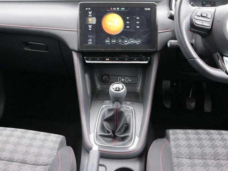 'Lights On' Reminder warning buzzer, 10.1" colour touchscreen, Android Auto, Apple CarPlay, Bluetooth connectivity, Cruise control with speed limiter, eCall emergency call system, PAS, Rear parking sensors, Trip computer, USB mobile phone charging function, 4 speaker audio system, DAB audio, Radio/MP3 player, USB/aux input socket, Auto headlights, Body colour bumpers, Body colour door handles, Body colour electric adjustable folding heated door mirrors, Chrome side window trim, Follow me home headlights, Front and rear aero wiper, Front and rear electric windows with driver's one-touch up/down, LED Bi-Function headlights, LED centre brake light, LED daytime running lights, Rear side wing doors, Rear spoiler, Rear wiper, Silver roof rails, 12V power sockets, 2nd row 60/40 split/fold, 3 rear headrests, 3 seat bench in 2nd row, 4 way manually adjustable passenger seat, 6-way manually adjustable driver's seat, Adjustable dual height boot floor, Air conditioning, Boot light, Driver's footrest, Front cupholders x 2, Front grab handles, Front headrests, Front reading lights, Front seat back map pockets, Glovebox, Houndstooth fabric upholstery, Illuminated switches and controls, Internal chrome door handles, ISOFIX restraints on outer rear seats x2, Leather steering wheel, Rake/reach adjustable steering wheel, Rear grab handle, Single front passenger seat, 3x3 point rear seatbelts, ABS/EBD, Anti rolling protection, Automatic unlocking of doors in case of impact, Dual front airbags, EBA, ESP, Front passenger airbag deactivation switch, Front seatbelts (3-point + pretensioner + load limiter), Front side airbags, Fuel cut off safety device, Hill launch assist, Rear door child safety locks, Rear passenger seatbelt alert, Seatbelt reminder for driver and front passenger, Side curtain airbags, Tyre pressure monitoring system, Alarm system and engine immobiliser, Automatic latching door, Remote central locking, Second remote key, Speed sensing door locks, Superlocking, 17" Typhoon diamond cut alloy wheels, Tyre repair kit,