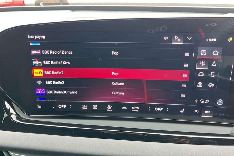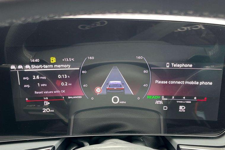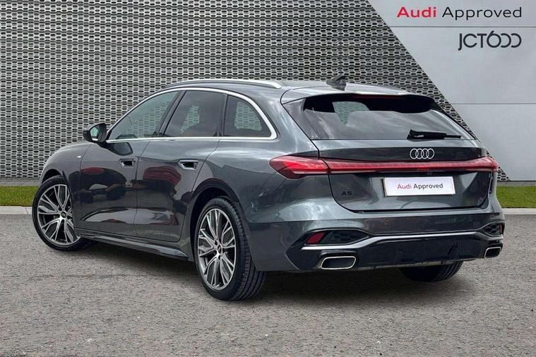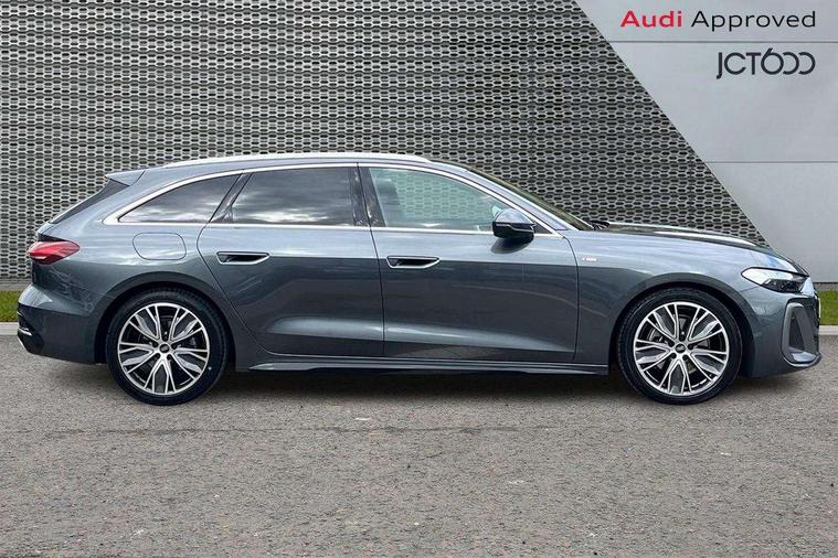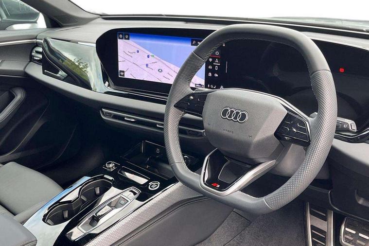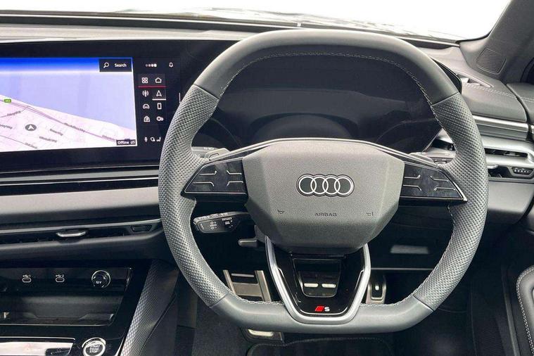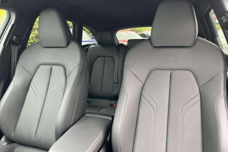 Adaptive cruise control, Advanced driver attention and fatigue montior, Audi application store, Audi assistant, Audi connect emergency call and service, Audi drive select, Audi virtual cockpit plus with 11.9" OLED colour display, Automatic start/stop system with coasting functionality, Camera based traffic sign recognition, Intersection assist, Lane departure warning, MMI navigation plus with high resolution 14.5" OLED touchscreen colour display, Park assist plus, Parking system plus with 360 display, Progressive steering with servotronic, Rear view camera, Smartphone interface, Swerve assist and turn assist, Traffic sign based speed limiter, Sports suspension lowered by 20mm, 2 USB-C ports in both the front and rear, Audi sound system impressive sound with 8 loudspeakers including centre speaker and subwoofer, 6-channel amplifier with a total output of 180 watts, DAB digital radio reception, Smartphone compartment with wireless charging, Aluminium roof rails, Aluminium window trims, Auto dimming rear view mirror, Body colour door mirrors, Door mirrors - electrically adjustable, heated, folding and auto dimming on both sides, Front and rear electric windows, Front door sill trims with aluminium inlays, illuminated with 'S' logo, High beam assist, LED headlights Plus incl. digital daytime running lights, turning light, all-weather light, motorway light, manouevring light and intersection light, LED rear lights pro incl. dynamic rear indicators and illuminated light strip with animated coming and leaving home function, LED third brake light, Privacy glass, Rear and side windows with heat insulating glass, Rear side wing doors, Rear wash/wipe, S Line badges on the front wings, S line bumpers, radiator grille and diffuser in phantom black and diffuser insert in matt anthracite, White rhombus logo projection light in exterior mirrors, Windscreen with acoustic glazing, 3 rear headrests, 3 seat rear bench, 3 spoke leather steering wheel with multi-function buttons with touch control, flattened on top and bottom, with S badging and contrast stitching, 3-zone automatic climate control, 40:20:40 split folding rear seat bench with centre armrest and cup holders, Comfort front centre armrest, Front and rear floor mats, Front seats with manual adjustment for position and 4-way electric lumbar support, Front sport seats with integrated headrest and S embossed logo, Headlining in black cloth, Heated front seats, i-Size child seat mounting on the front passenger side and outer rear seats, i-Size and top tether on the outer rear seats, Luggage compartment lid, electrically opening and closing, Manual steering column height and depth adjustment, Single front passenger seat, Stainless steel pedals and footrest, Steering wheel grips in perforated leather and shift paddles, Ambient lighting package plus - A5, 3x3 point rear seat belts, Driver airbag, Electric child safety locks, First aid kit with warning triangle and vests, Front emergency brake assist, Front passenger airbag, Front passenger airbag deactivation, Front side airbags with head airbag system and front interaction airbag, Hill hold assist, Seat belt monitoring with rear seat occupant reminder, Tyre pressure loss indicator, Anti theft alarm, Anti-theft wheel bolts, Keyless Go, Accent surfaces and control buttons in gloss black, Black dashboard with contrast stitching, Inlays in matt brushed aluminium with linear embossing, anthracite, Softwrap in leatherette with contrast stitching, Upper and lower interior elements in leatherette, Tyre repair kit,
