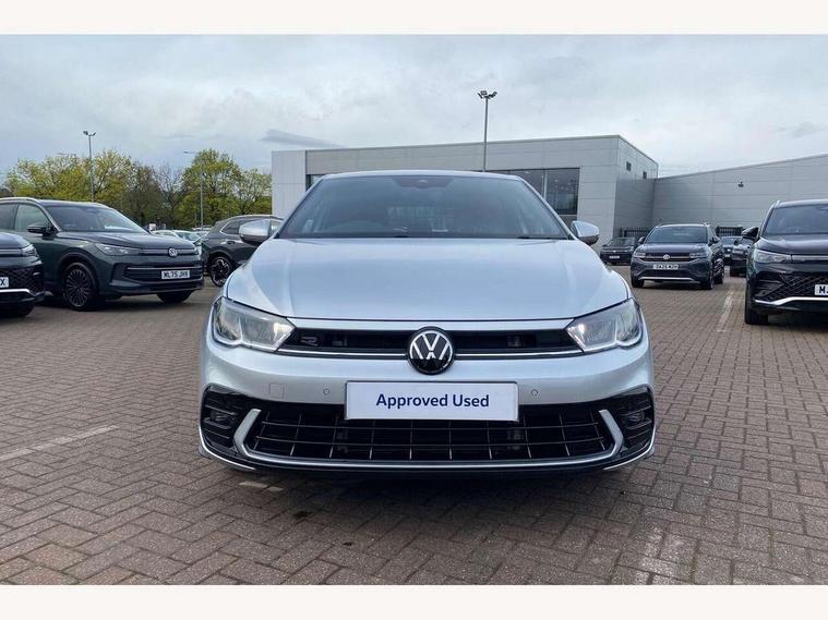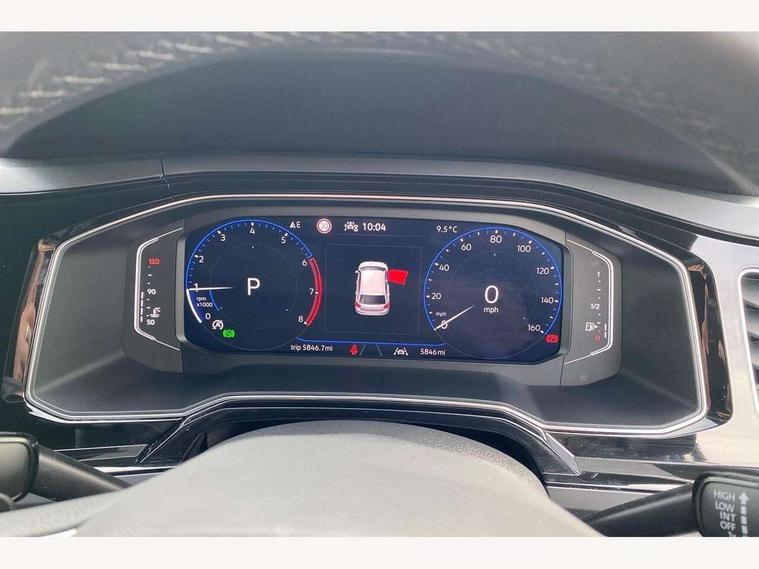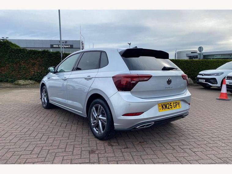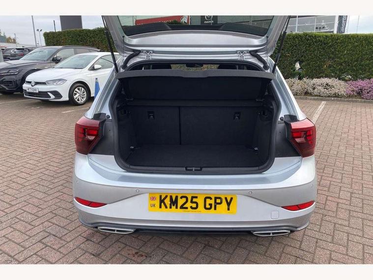 Adaptive cruise control with follow-to-stop and speed limiter, Advanced driver attention and drowsiness monitor, Bluetooth mobile phone interface, Digital Cockpit Pro with 10.25" Display, Dynamic road sign display, Emergency call service, Multifunction camera, Power assisted speed sensitive steering, Preparation for We connect and We connect plus, Speedo and rev counter, electronic odometer, trip, service interval display and fuel gauge, Standard rear axle, Travel Assist - Lane keeping system and traffic jam assist, Travel assist including emergency assist, Trip computer, Warning signal and warning light for front and rear seatbelts not fastened, Washer fluid level indicator, Wireless app connect, Front wheel drive, Rear shock absorpion, Start-stop system with battery regeneration (recuperation - energy recovery during braking), DAB Digital radio, Diversity antenna for FM reception, Front and rear 6 speakers, Body colour bumpers, Body colour door handles, Electric front windows, Front scuff plates with R-Line logo, Heat insulating glass windscreen, Power folding adjustable/heated exterior mirrors and front passenger exterior mirror lowering function, Rear electric windows, Rear fog light, Rear side wing doors, Rear windscreen washer and wiper with interval delay, Third brake light, 12V power socket in centre console, 2 USB-C ports in the front, 2 USB-C charging sockets on the center console in the rear, 3 rear head restraints, 60/40 split folding rear seat and rear seat bench not split, Air care climatronic air conditoning system with active combination filter and 2-zone temperature control, Black roof lining, Carpet mats, front and rear, Chrome plated radiator grille inserts, air vent surrounds and light switch surrounds, Door and side trim panel, Driver and front passenger seat height adjustment, Driver/passenger sunvisors with illuminated vanity mirrors, Front centre armrest, Front footwell illumination, Front seat backrest storage pockets, Front sports comfort seats, Handbrake lever handle in leather, Headliner in recycled material, Isofix child seat preparation easy-fit (for two outer rear seats, and front passenger seat) compatible with I-size, Karoso artvelours cloth upholstery, Leather trimmed gear knob, LED interior light with switch off delay and dimmer, 2 reading lights front and rear, Luggage compartment cover, Luggage compartment floor, Luggage compartment lighting, Lumbar adjustment for front seats, Single front passenger seat, Stainless steel pedals, Standard pedal cluster, Three spoke leather wrapped multifunction steering wheel with shifting paddles, Light and sight pack - Polo R-Line/Black Edition, 3 point height adj front seatbelts + pretensioners, 3x3 point rear seatbelts, ABS, Driver and front passenger airbag with front passenger airbag deactivation, Drivers and front passengers safety optimised head restraints, ESC (Electronic stability control) + EDL (Electronic Differntial lock) and ASR (Traction control), Extended and predictive pedestrian/ cyclist protection, Front curtain and side airbags with center airbag, Front/rear disc brakes, Hill hold control, Manual child lock in rear doors, Single tone horn, Tyre pressure loss indicator, Alarm with interior protection, Anti-theft alarm system with interior monitoring, backup horn, and towing protection, Anti-theft wheel bolts, Electronic engine immobiliser, Chrome applications on rotary light, mirror adjustment, window regulator switches, outlet with frame in black, Dark grey anodised matt decorative inserts in dash and front door panels, 16" Coventry alloy wheels, Low rolling resistance tyres,
