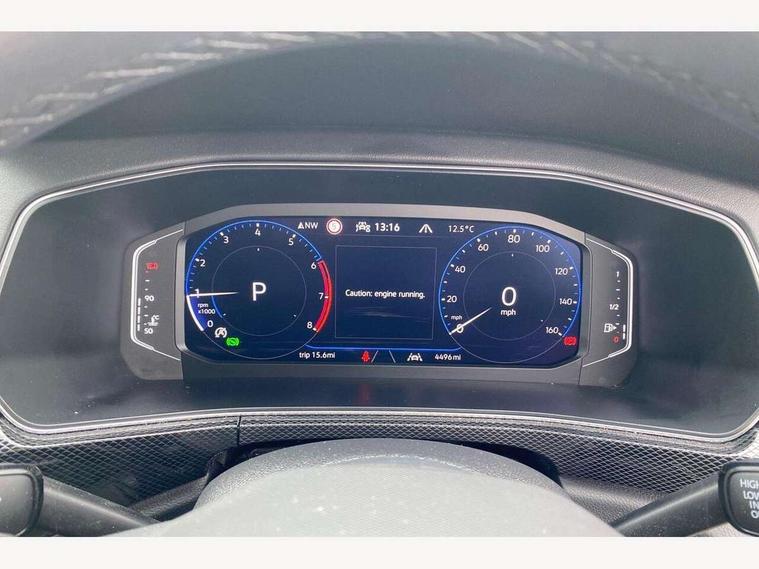 'Lights On' Reminder warning buzzer, 10.25" Digital cockpit pro, Advanced driver attention and drowsiness monitor, Blind spot monitoring, Car information display, Driver profile selection including ECO function, Dynamic road sign display, E-Sim card for online connectivity, eCall emergency call system, Front and rear parking sensors, Front assist, forward collision warning, autonomous emergency braking and speed limiter, Low washer fluid warning light, Multifunction computer with visual gear change recommendation for fuel consumption, Multifunction front facing camera for distance control, Operating permit alteration, Power assisted steering, Predictive adaptive cruise control, Preparation for navigation system with media and internet package, Preparation for We connect and We connect plus, Semi-automated driving assistance, travel assist including lane keeping system Lane Assist and emergency assisst, Speedo, rev counter, electronic odometer, trip, service interval display, exterior temperature and fuel gauge, Warning sound and light for doors and tailgate open, Warning sound and light for front seatbelts unfastened, Wireless Car net app connect with Apple CarPlay, combined functionality of Apple CarPlay/Android Auto and MirrorLink, Wireless charging, Misfuel prevention device, Start-stop system with battery regeneration (recuperation - energy recovery during braking), 2 USB C ports in front, 2 USB charging sockets on the centre console in the rear charging capacity upto 45W, Diversity antenna for FM reception, Music playback - MP3, WMA and AAC files, Radio, Automatic dimming interior rear view mirror, Automatic hazard lights activation under emergency braking, Automatic headlight control with LED separate daytime running light and coming home and leaving home feature, Body colour door handles, Body colour door mirrors, Body coloured bumpers, Dynamic headlight range control with self adjusting whilst driving, Electric folding door mirror, adjustable, heated with front passenger exterior mirror lowering function, Exterior mirrors convex on the left and aspherical on the right, Front and rear electric windows, Front door sill protectors with R-Line logo, Galvanised body, Heat insulating and laminated safety glass windshield, Heat insulating darkened glass in side and rear windows, High Beam Assist, automatic sensing for switching between dipped and main beam, LED rear combination lights, LED third brake light, Lower door sills and door pillars in black, Privacy glass for rear side windows and rear window, Rain sensor, Rear fog light on one side, reversing light on both sides, Rear side wing doors, Rear window aerial, Rear window wiper with intermittent control, Reflectors in all doors, Scuff plates, Tailgate with integrated roof spoiler, 12V Accessory socket in centre console, 2 Front and rear reading lights incorporating LED technology, 3 rear head restraints, 3 seat bench in 2nd row, 60/40 split folding rear seat backrest, Air care climatronic 2 zone air conditioning system, Ambient lighting, Brushed stainless steel pedals, Chrome plated radiator grille inserts, air vent surrounds and light switch surrounds, Cloth upholstery, Comfort front sport seats, Door and side trim panel, Drawer under drivers seat, Driver and front passenger sunvisor with vanity mirror, Dust and pollen filter, Front + rear carpet mats, Front centre armrest with storage compartment, Front footwell illumination, Front seat back storage pockets, Glove compartment door with light, Heated front seats, Heating and fresh air system with 4 stage blower, Height/reach adjust steering wheel, Instrument lighting white adjustable panel illumination, Interior light with switch off delay and dimmer, Isofix anchors for child seats on outer rear seats and front passenger seats, Leather gearshift handle, Leather wrapped multifunction steering wheel, Luggage compartment floor, Luggage compartment lighting, Manual front seats with height adjustment, Padded dashboard, Removable luggage compartment cover, Single front passenger seat, Storage compartment in drivers and front passengers door, Titanium black roof lining, Unsplit sliding rear seat bench, 3 point outer rear seat belts with ECE label, 3 Point seatbelt for centre rear seat, Anti-lock Braking System (ABS) with Hydraulic Brake Assist (HBA), Automatic post collision braking system, Disc brakes in front, Disc brakes in rear, Driver and front passenger safety-optimised head restraints, Drivers and Front Passengers airbags with front passengers airbag deactivation switch, ESC with EDL and ASR (traction control), Extended and predictive pedestrian/cyclist protection, Front and rear passenger curtain airbag system including front side airbags, Height adjustable front 3 point seatbelts + pretensioners, Hill start assist, Pre crash preventive occupant protection, Proactive passenger protection system in combination with front assist, Rear door child safety locks, Rigid safety cell with front and rear crumple zones, Single tone horn, Tyre pressure loss indicator, Volkswagen roadside assistance, Alarm with interior protection, Anti theft alarm system, Electronic engine immobiliser, Remote tailgate unlocking using key fob, Titanium Black Decorative inserts - R Line, Low rolling resistance tyres,