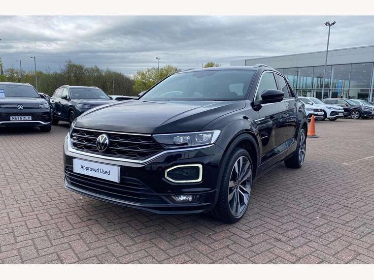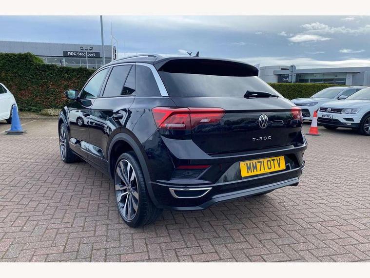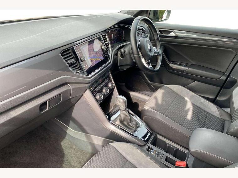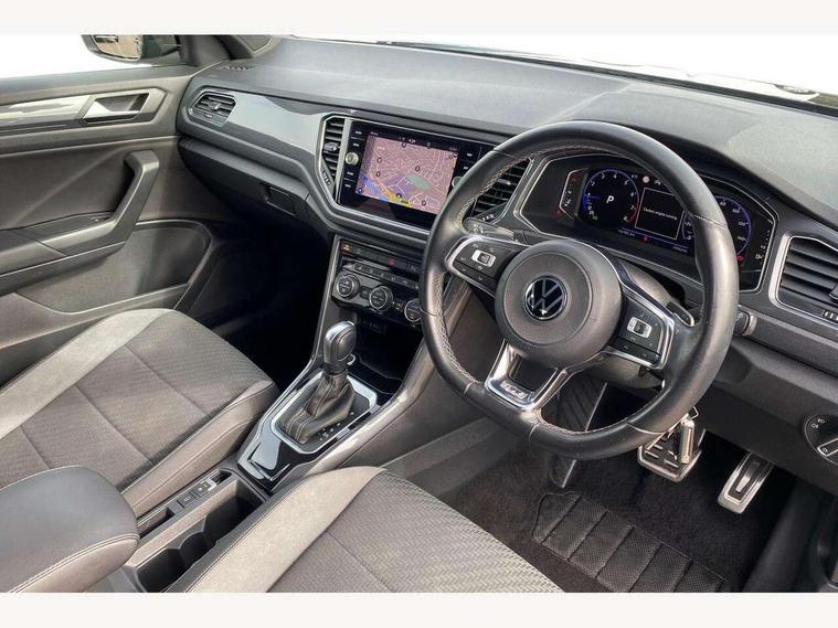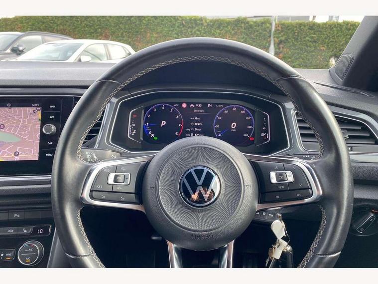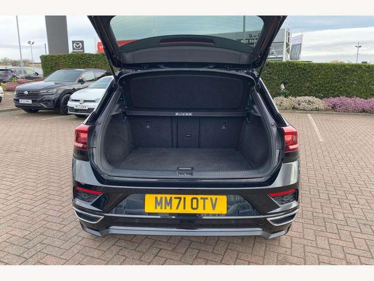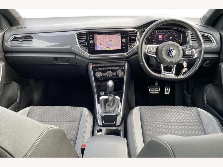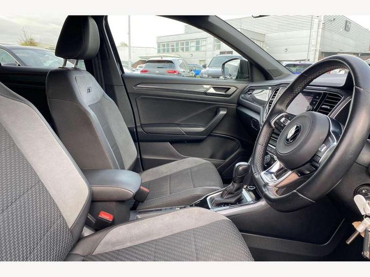 'Lights On' Reminder warning buzzer, Adaptive cruise control, Bluetooth telephone and audio connection for compatible devices, Car information display, Digital Cockpit Pro - Active info display, Driver alert system with audible and visual fatigue detection system, Driver tips and journey analysis, Emergency call service, Lane assist with warning text instrument cluster, Modified key software - reduce switch off time for key status change to Long no motion, Multifunction camera, Multifunction computer with visual gear change recommendation for fuel consumption, Navigation system discover media including streaming and internet, Service interval indicator, Think blue trainer driver tips and journey analysis, Traffic sign recognition, Voice activation, Warning sound and light for front seatbelts unfastened, Wireless app connect for apple carPlay, Battery regeneration during braking, Rear shock absorption for sports version, Start/stop function with battery regeneration, DAB Digital radio, Disk brakes in front, Diversity antenna for FM reception, Music playback - MP3, WMA and AAC files, Premium USB cable in choice of either Apple or Android smartphone compatibility, SD card slot, Simultaneous pairing of 2 compatible mobile devices, SMS functionality - read, compose and send SMS messages using touch-screen display, Storage compartment with longitudinal and height adjustable in armrest and two rear air vents, Three route options - Fast, Short, Eco, Title and cover art display, USB-C Interface and USB charging socket, Auto dimming interior rear view mirror, Automatic coming/leaving home lighting function and daytime running lights, Automatic hazard lights activation under emergency braking, Black grained lower door protectors, Body colored door lower parts, Body colour door handles, Body colour rear roof spoiler, Chrome effect left and right trapezoid exhaust tailpipe fascia surround, Chrome plated moldings, Chrome trim on upper and lower radiator grille, Dusk sensor, Dynamic headlight range control with self adjusting whilst driving, Electrically foldable, adjustable and heated door mirrors with puddle lights and reverse activated kerb-view adjustment on passenger's door mirror, External USB type C socket and charging sockets, Front and rear electric windows, Front fog lights with static cornering function, Front windscreen wiper with intermittent wipe and 4 position delay, Fully galvanised body, Heated rear window, Heated windscreen washer jets, High level 3rd brake light, LED darkened rear light clusters, LED headlamps with automatic range adjustment and unique signature LED separate daytime running lights, LED rear number plate lights, LED tail lamp rear comination lamps, Privacy glass, R-Line design body coloured bumpers, Rain sensor, Rear tinted glass from B-pillar backwards approx 65% tinted, Rear wash/wipe with intermittent wipe setting, Silver anodised roof rails, Volkswagen roundel, 12V socket in centre console storage area, 3 rear head restraints, 4 load lashing points in luggage compartment, Aluminium pedals, Black roof lining and sun visors, Branded points of interest, Carbon flag cloth upholstery, Chrome plated radiator grille inserts, air vent surrounds and light switch surrounds, Climate control - 2 zone electronic air conditioning with automatic air recirculation and allergy filter, Door and side trim panel, Door and side trim panel in foam film, insert in leatherette, Drawer under drivers seat, Front + rear carpet mats, Front centre armrest, Front cupholders x 2, Front seat back storage pockets, Front sports seats with R-Line logo on seat backrest, Glovebox, Heated front seats, Height adjustable front seats, Height/reach adjust steering wheel, Instrument lighting, white adjustable panel illumination, Interior light delay, Interior light in footwell, Isofix easy fit child seat preparation for 2 outer rear seats, Leather gearshift knob, Leather multi function sport steering wheel with gear change selection via paddle shift on steering wheel, LED interior light with switch off delay/dimmer and 2 front/rear LED reading lights, Load through provision with single cup holder when folded down, Luggage compartment cover, removable, Luggage compartment lighting, R Line badge, Scuff plates in door apertures, Split folding rear seat backrests with centre armrest, Stainless steel pedals, Storage compartment in left and right luggage area, Storage compartment in rear doors, Storage compartments in driver and front passenger doors, Sunvisors with illuminated vanity mirrors, Unique R Line door sill protectors, White ambient lighting, R line styling pack - T-Roc, Winter pack - T-Roc, 3 rear three point seatbelts, ABS, Curtain airbags, Driver and front passenger safety-optimised head restraints, Drivers and front passengers airbags with passengers deactivation switch, Drivers seatbelt reminder, Electronic parking brake with auto hold, Electronic stability control (ESC) includes ASR, EDL, EDTC and trailer stabilisation function, Front assist with city emergency braking and pedestrian monitoring, Front seat side impact airbags, Hill start assist, Predictive pedestrian protection, Rigid safety cell with front and rear crumple zones, Single tone horn, Three point height adjust front seatbelts + pretensioners, Tyre pressure loss indicator, Ventilated front and rear disc brakes, Volkswagen roadside assistance, Alarm with remote central locking and interior protection, Electronic engine immobiliser, Remote central locking with SAFELOCK, radio remote control with 2 remote control folding keys, Shadow grey decorative inserts in dash, centre console and door panel, 19" Suzuka alloy wheels with low rolling resistance tyres and anti wheel bolts,