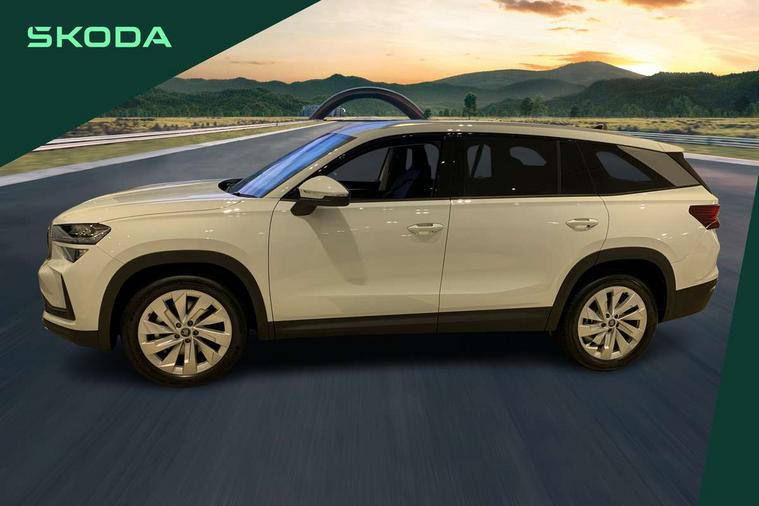 13" satellite navigation touchscreen display, Blind spot detection with door exit warning, Bluetooth system, ChatGPT functionality, Driver alert - Fatigue and drowsiness monitor, Dry display cleaner, Emergency call, Front and rear parking sensors, Front cross traffic assist, Lane assist, PAS, Rear traffic assist, Tailgate unlocking from outside, Traffic sign recognition, USB C Port x 2 in front centre console, Virtual Cockpit - 10.25" digital display, Voice control system, Wireless charging for two smartphones (15W) with cooling function, Wireless SmartLink for Apple CarPlay and Android Auto, Stop/start function, 2x USB-C in the rear, DAB Digital radio, Aero front windscreen wipers with intermittent function, Auto dimming rear view mirror, AWL (all weather lighting) and all weather light with cornering function, Black wheel arch surrounds, Body colour bumpers, Body colour door mirrors and handles, Cornering light and poor weather light, Electric folding /adjustable/separted heated/folding door mirrors, auto dimming with boarding sports and memory function, Electric front and rear windows, Exterior black decorative trims, Heat insulating glass in windshield, Heated rear window, Ice scraper in fuel tank cap, Invisible tailpipe, LED daytime running lights, LED third brake light in rear spoiler, Light assistant with automatic headlight control and coming home feature, Logo projection in door mirrors, Privacy glass, Rear roof spoiler, Rear side wing doors, Rear window wiper, Red decorative strip between rear LED lights, Safety reflectors on front and rear doors, Unique dark chrome design logo on alloy wheels, Window control switches with black trim, Windscreen wipers with rain sensor, Without engine designation, 1.5l bottle holder points in all door, 1x centre rear reading light, 2 seat bench in 3rd row, 3 configurable smart dials with 32mm coloured display, 3 seat bench in 2nd row, 4 foldable roof handles with rear coat hooks, Ambient interior lighting - Dashboard, front-door stowage compartments, front and rear door panels and footwell lighting, Automatic gear selector on steering column, Chrome interior door handles, Driver/front passenger reading lights, Fabric headlining, Fixed bench 40:60:40 split folding backrests, Front and rear floor mats, Front centre armrest with jumbo box storage compartment, cup holder and 12V socket, Height adjustable front headrests, Isofix child seat fittings in outer middle row rear seats and front passenger with top tether, Manually adjustable steering column, Pollen filter, Rear centre armrest with cupholders, Rear seat boot backrest release, Single front passenger seat, Skoda lettering on steering wheel, Storage pocket including mobile phone pockets on the backs of the front seats, Sunvisors with illuminated vanity mirrors, Three rear height adjustable headrests, Ticket holder on A Pillar, Tri zone climate control, Umbrella in door panel x1 made from sustainable materials, Upper and lower glovebox with card holder and coin compartment, USB C port by rear view mirror for charging only (15W), Exterior styling pack - Kodiaq, Auto door release and activation of warning lights in the event of an accident, Driver and front passenger airbag with knee airbag and front passenger airbag deactivation, Electric child locks, Electronic parking brake, ESC (incl. ABS+EMD+MSR+ASR+EDL+HBA+DSR+RBS+ESBS+MCB+TSA+XDS), Front assist with braking reaction to vehicles, pedestrians and cyclists, Front disc brakes, Fuel cut off safety device, Height adjustable front 3 point seatbelts + pretensioners, Hill hold assist, Junction assist with automatic emergency braking, Rear disc brakes, Safety vest holder in door, Seat belt reminder for all seats, Three point rear seat belts, Two tone horn, Tyre pressure monitor, Anti-theft wheel bolts, Immobiliser, Remote central locking with 2 keys,