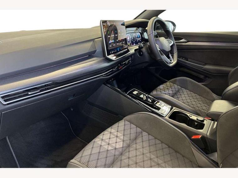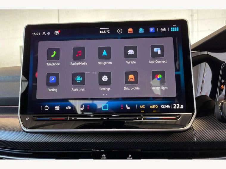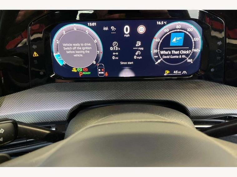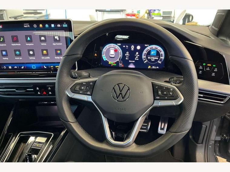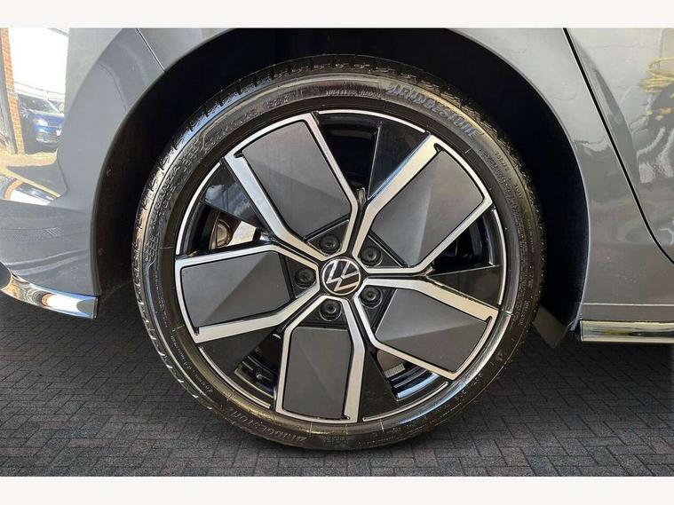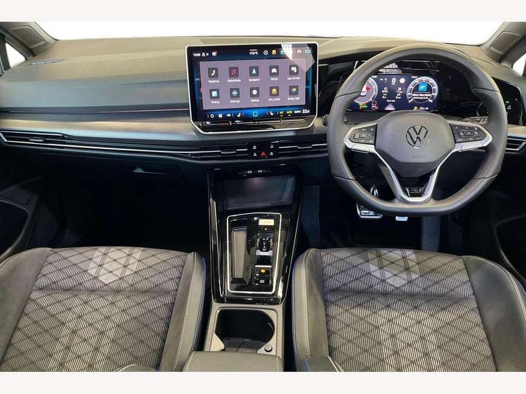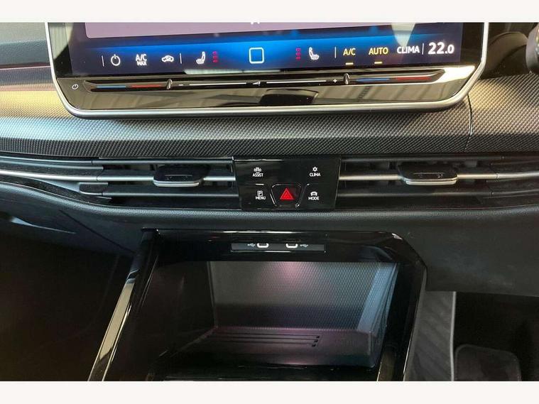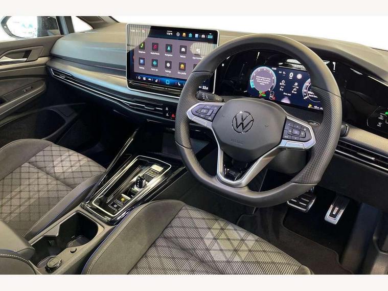 Activated carbon canister, Adaptive cruise control (ACC), Advanced driver attention and drowsiness monitor, Dynamic road sign display, Dynamic steering, E-Sim card for online connectivity, eCall emergency call system, Multi-color Digital cockpit pro, selection of different info profile possible, Multifunction front facing camera for distance control, Navigation system, Oncoming vehicle braking when turning including swerve support, Speed limiter, Speedo, rev counter, electronic odometer, trip, service interval display, exterior temperature and fuel gauge, Traffic jam assist, Voice enhancer and voice control, Warning signal and warning light for front and rear seatbelts not fastened, We connect plus preparation, We connect preparation, Wireless app connect, Hybrid propulsion system, Petrol Particulate Filter, Start-stop system with battery regeneration (recuperation - energy recovery during braking), XDS electronic differential lock for improved traction and handling, 2 USB C ports in front, 2 USB charging sockets on the centre console in the rear charging capacity upto 45W, Digital radio reception (DAB), Diversity antenna for FM reception, Gaming platform via car app, Infotainment system with 12.9" display, Mobile phone interface with inductive charging feature, 3rd brake light, Auto dimming rear view mirror, Automatic headlamp activation with Coming home and Leaving home feature, Body colored bumpers in R-Line style, Body colour door handles, Exterior ambient lighting, Exterior mirrors convex on the left and aspherical on the right, Front and rear electric windows, Heat insulating windshield made of laminated glass, LED separate daytime running light, Rain sensor, Rear exhaust tailpipe, Rear fog light on one side and reversing lights on both sides, Rear side wing doors, Rear windscreen washer and wiper with interval delay, Remote electrically foldable door mirrors, puddle lights and reverse activated passenger's door mirror, Volkswagen logo in front, illuminated lighting animation with wake up/goodbye scenario and illuminated door handles, Welcome light with surround lighting, 12V socket in front centre console, 12V socket in luggage compartment, 3 rear head restraints, 3 seat bench in 2nd row, Ambient lighting with 30 colour including LED light unit in front footwell with selectable light colour, Black roof lining, Brushed stainless steel pedals, Chrome plated radiator grille inserts, air vent surrounds and light switch surrounds, Door insert, side trim panel and arm support in leatherette, Front + rear black carpet mats, Front centre armrest, Front seat lumbar support adjuster, Integrated front head restraints, ISOFIX anchors for child seats on outer rear bench seats and on front passanger seat compatible for i-Size, Luggage compartment lighting, Manual height adjustable front passenger seat, Manually height adjustable driver seat, Plastic gear knob, Premium sports seats in front, Rear cupholder and loadthough, Sardegna cloth upholstery with front and outer rear seats Art Velour inner sides of bolsters, Single front passenger seat, Split folding backrest with centre armrest and unsplit rear seat bench, Sun visors with illuminated vanity mirrors, Titanium black instrument panel, Black exterior Styling package with Matrix LED headlights - Golf, Winter package - Golf DSG Estate/Hatchback, 3 point height adj front seatbelts + pretensioners, 3 rear three point seatbelts, ABS, Autonomous emergency braking front assist with pedestrian and cyclist monitoring, Child locks on rear doors, Driver and front passenger airbag with front passenger airbag deactivation, Electronic parking brake with auto hold, ESC (Electronic Stability Control), Extended pedestrian protection measures, Hill start assist, Rear disc brakes, Two tone horn, Tyre pressure loss indicator, Volkswagen roadside assistance, Anti theft wheel bolts, Preparation for alcohol interlock, Decorative inserts carbon grey for dashboard and front door trim panels, 18" Leeds alloy wheels, Tool kit for tyre mobility set, Tyre mobility kit Includes 12V compressor and tyre sealant,