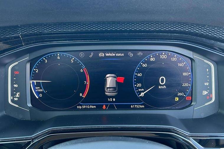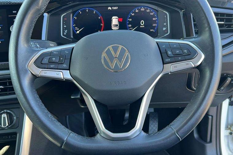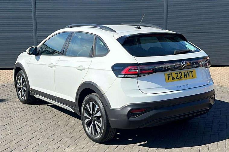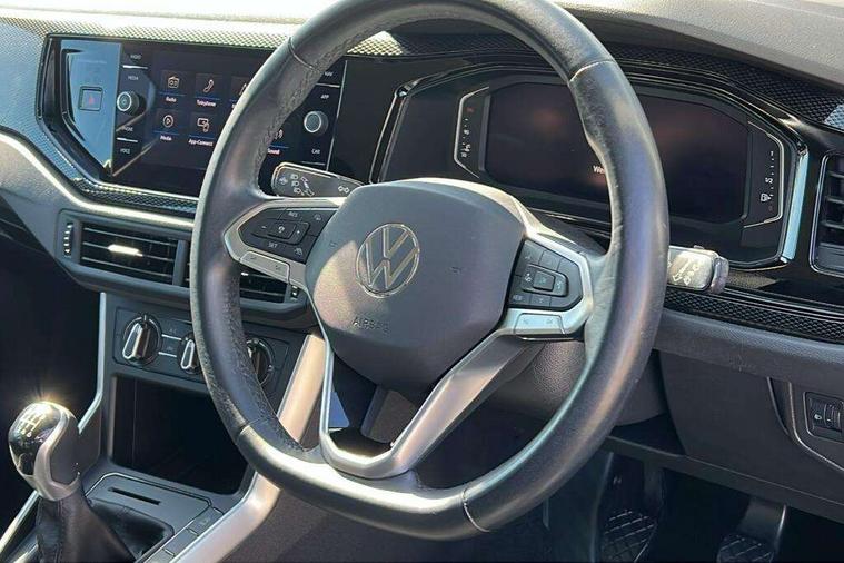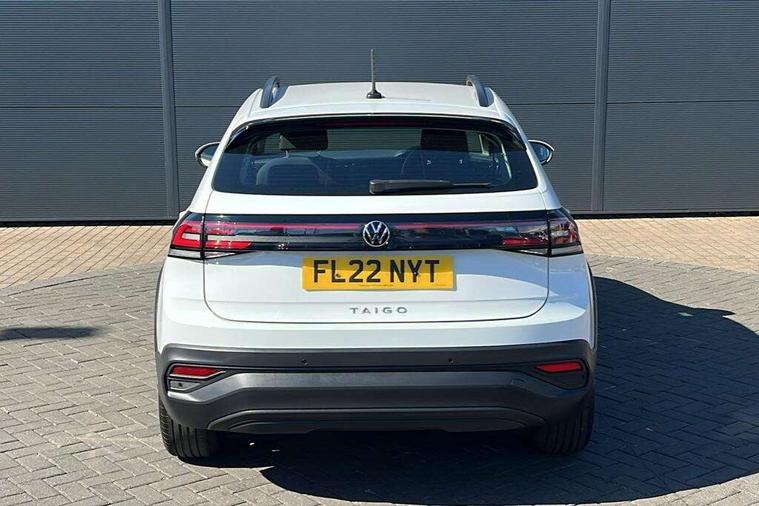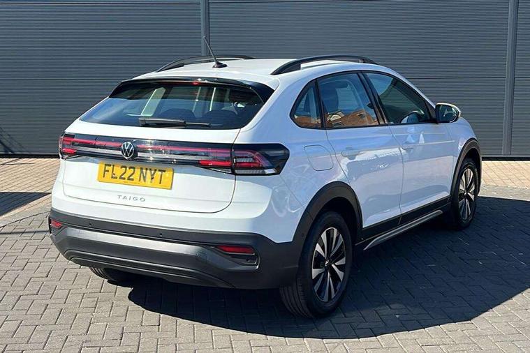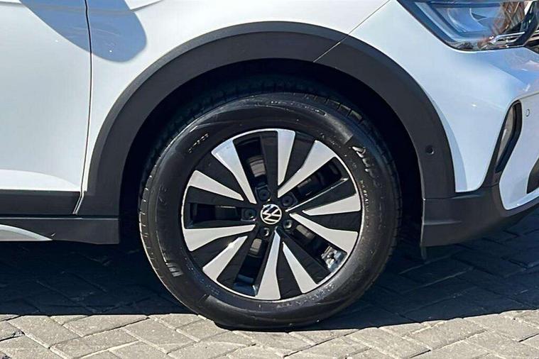 App-Connect including App-Connect Wireless, Driver alert system, e-Call (emergency call), Power Steering, Travel assist including emergency assist, Washer fluid level indicator, Wireless Charging including Bluetooth, Start-stop system with battery regeneration (recuperation - energy recovery during braking), Digital radio reception (DAB+), Diversity antenna for FM reception, WeConnect plus, Ambient lighting with logo projection, Aspherical driver's exterior mirror, Body coloured bumpers, Body coloured exterior mirror housings and door handles, Electric windows, External USB type C socket and charging sockets, Front fog lamps with cornering function, Headlight range control, Heat insulating glass windscreen, LED headlamps, LED rear combination lamp, LED third brake light, Left convex exterior mirror, Power folding adjustable/heated exterior mirrors and front passenger exterior mirror lowering function, Rear fog light on one side, reversing light on both sides, Rear wash/wipe with intermittent wipe setting, 'Slash/ Austin' Cloth upholstery, 12V socket in centre console, 2 front reading lights, 3 rear head restraints, Black carpets, Child seat anchor for child seat system i-Size, 2x top tether and child seat anchor in front on front passenger side, Door and side trim panels in titan black, Driver and front passenger seat height adjustment, Front centre armrest, Handbrake lever handle in leather, Height and reach adjustable steering wheel, Leather trimmed gear knob, Leather wrapped multifunction steering wheel, Luggage compartment floor, Luggage compartment light, Lumbar support for driver's and front passengers seat, Seat covers in titanium black, Split folding backrest with centre armrest and unsplit rear seat bench, Storage compartment under front seats, Sun visors with illuminated vanity mirrors, Chrome Package - Taigo, Drivers assistance pack - Taigo, Light and Sight pack including High beam assist - Taigo, 2 x 3-point seatbelts/outer rear seats with ECE label, 3-point seat belts in front with pretensioner and height adjustment, 3-point seatbelt for centre rear seat, Driver and front passenger airbags with front passenger airbag de-activation, front side and curtain airbags, Driver and front passenger safety-optimised head restraints, Electronic stability control, Extended and predictive pedestrian/ cyclist protection, Front and rear disc brakes, Front curtain and side airbags with center airbag, Hill start assist, Single tone horn, Tyre pressure loss indicator, Anti-theft alarm system with interior monitoring, backup horn, and towing protection, Anti-theft wheel bolts, Lava stone black gloss/matt decorative inserts in dash and front door panels, Low rolling resistance tyres,