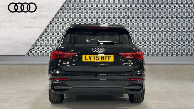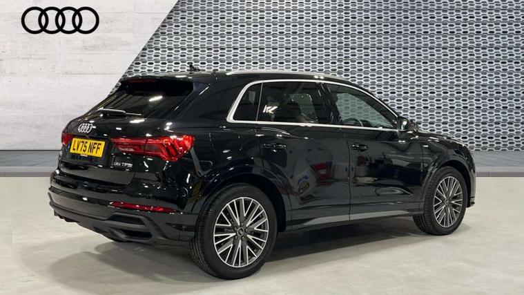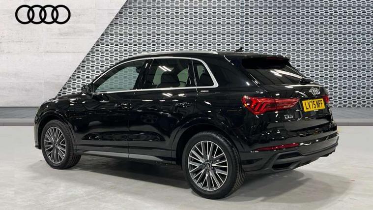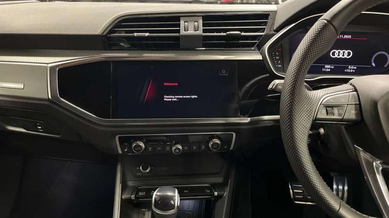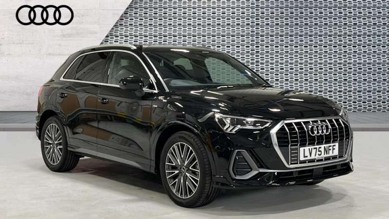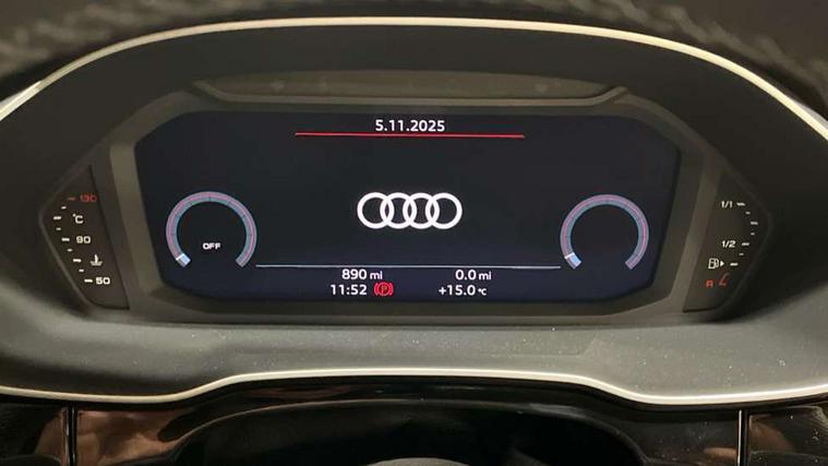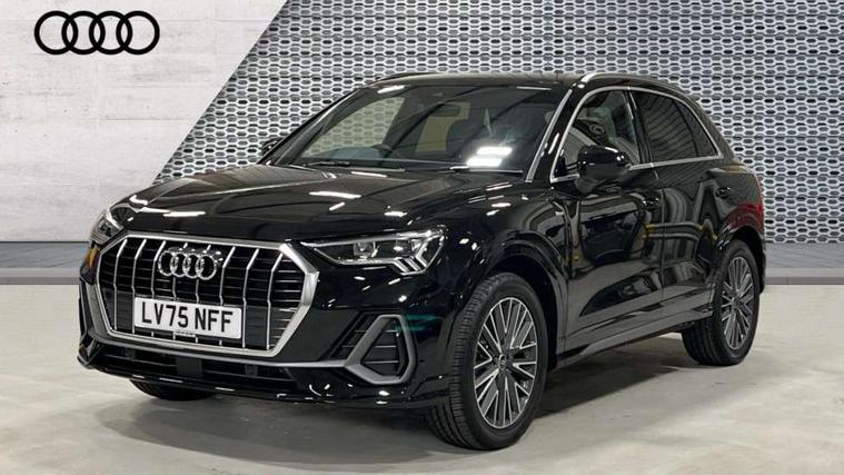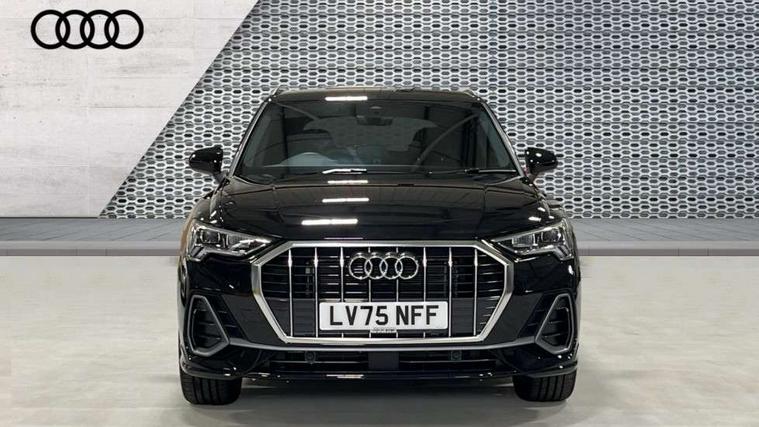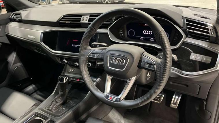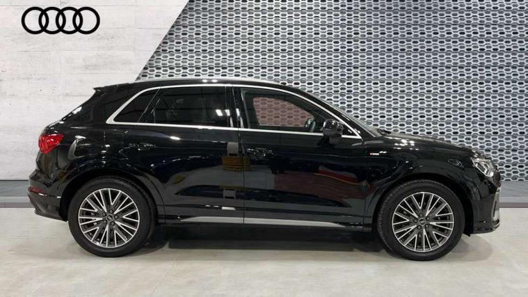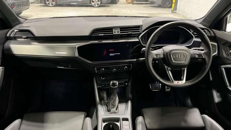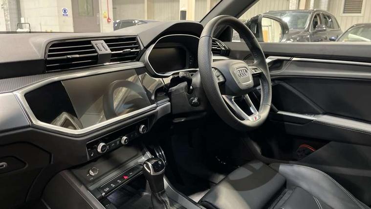 Amazon alexa Integration, Audi connect safety and service, Audi drive select, Audi lane departure warning, Audi Virtual Cockpit - 10.25" display, Bluetooth interface, Camera based traffic sign recognition, Distraction and Fatigue warning, Legal emergency call, MMI Navigation Plus with high resolution 10.1 inch touchscreen colour display, Power operated tailgate, Progressive steering, Service interval indicator, Smartphone interface includes wireless Apple carplay/Android Auto, Start stop system with recuperation, Voice control system with natural language interaction, Sports suspension, 2 USB-C ports with charge and data functions, 6 passive loudspeakers, DAB digital radio module, Acoustic windscreen, Aluminium roof rails, Aluminium window trim, Anthracite black radiator grille, Auto dimming door mirrors, Auto dimming frameless rear view mirror, Body colour front spoiler blade, Electrically folding, adjustable and heated door mirrors with integrated LED side indicators and kerb view function for passenger side, Front and rear electric windows, Front fog lights, Front side air inlets in matt platinum grey, Grille vertical bars in aluminium silver/Matt, High gloss black finish B and C pillars, LED Dynamic rear indicators, LED headlights with LED daytime running lights, LED rear lights, LED third brake light, Privacy glass dark tinted rear and rear-side windows (from B-pillar backwards), Rain and light sensors, Rear diffuser grille in grained matt black, Rear diffuser strip in matt anthracite black, Rear side wing doors, Rear wiper, S line badges on front wings, S Line front and rear bumpers and side skirts, Side skirt insert in matt Platinium grey, Variable front intermittent wipers, 12V socket in rear centre console, 3 seat bench in 2nd row, 3 spoke leather multifunction steering wheel features S badging and grips in perforated leather with contrast stitching, 40:20:40 folding with manual adjustment for 60:40 forwards/backwards position and backrest angle, Adjustable rear seat bench/backrest with centre armrest and cupholder, Black carpet mats, Black cloth headlining, Dual zone electronic climate control, Electric lumbar support, Front and rear black floor mats with contrast stitching in rock grey, Front and rear headrests, Front centre armrest, Height and reach adjustable steering wheel, Horizontal trim strip in matt platinum grey, Illuminated door sill trims with S logo, ISOFIX child seat mounting for front passenger with airbag deactivation and outer rear seat including top tether attachment point for outer rear seats, Luggage compartment sill protection in stainless steel, Manual front seats with height adjustment, Perforated leather gearknob, Single front passenger seat, Stainless steel pedals, Twin leather upholstery with front sport seats + S embossing, Non smoking pack - Q3, 3x3 point rear seatbelts, 6 airbags - Driver, front passenger, curtain and side windows, Audi pre-sense front with pedestrain and cyclist recognition, Electrically operated child locks on rear doors, Electromechanical parking brake, Electronic stabilisation control including ABS, ASR and EDL, Front seatbelt reminder, Hill descent control, Hill hold assist, Pre sense basic, Seatbelt monitoring, Tyre pressure warning, Warning triangle and first aid kit, Anti theft wheel bolts, Immobiliser, Remote central locking, Thatcham approved category 1 anti theft alarm, Aluminium look interior elements, Dark matt brushed aluminium inlay, Detail dashboard around MMI touch colour display in glass look, black with surround in aluminium look, Leatherette door armrest,