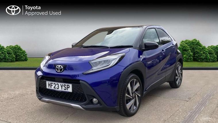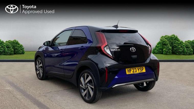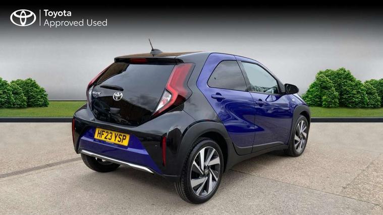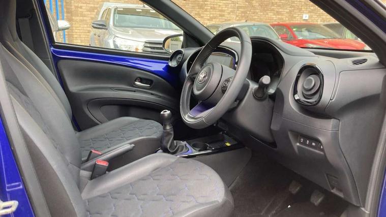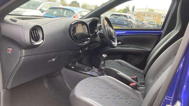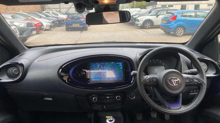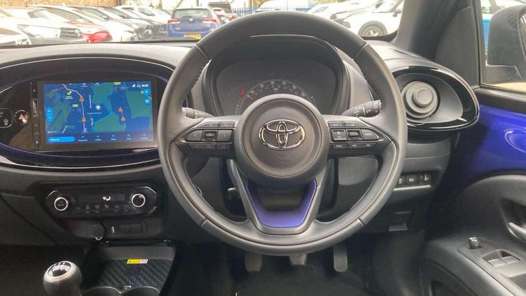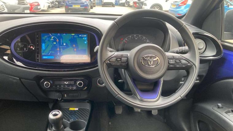 4.2" TFT colour screen, Adjustable speed limiter, Analogue speedometer, Bluetooth connectivity, Digital tachograph, Driver attention alert system, eCall emergency call system, Electric power steering, Front and rear parking sensors with auto brake, Intersection turn assist, Key reminder warning, Noise reduction kit, Pre collision system with emergency steering assist, Remote boot door release on key, Reversing camera with static guide lines, Smart entry and push button start, Speed limit display, Start and stop, Wireless charger, Wireless Smartphone Integration includes Apple CarPlay and Android auto, Vehicle Stability Control (VSC), 4 speakers, 9" HD multimedia display touch screen with Toyota smart connect, DAB digital audio broadcast, USB connector, Auto headlights, Auto wipers, Automatic headlights cut-off, Automatic high beam On/Off switch, Bicycle towing hook, Black fog light surrounds, Black side protection mouldings, Black wheel arch mouldings, Body colour door handles, Body coloured front bumper, Boot door scuff plate, Eclipse black rear bumper, Electric heated door mirrors, Follow me home headlights, Front and rear underruns in silver, Front fog lights, Front power windows, Gloss black door mirrors, Gloss black upper front grille, Headlight cut-off reminder, LED daytime running lights guide, LED front light guide, LED High mounted stop lamp, LED projector headlights, Manual day/night rear view mirror, Manual headlight levelling, Pagoda roof, Power adjustable door mirrors, Power back door, Privacy glass, Rain sensor, Rear combination lights LED bulb type, Rear side wing doors, Rear windscreen defogger, Rear windscreen wiper, Remote hazard lights system, Short antenna, Variable intermittent windscreen wipers, 12v power outlet - front, 2 seat bench in 2nd row, 3 spoke leather steering wheel, 50/50 split folding rear seat, Adhesive roof headlining, Adjustable speed limiter switch on steering wheel, Audio and telephone switches on steering wheel, Auto air conditioning, Black roof lining, Body colour satin anodised insert on steering wheel, Boot light, Centre room light, Chrome interior door handles, Chrome surround on air conditioning buttons, Clean air filter, Console box storage, Floor mats, Front and rear cup holders, Front head rest deco art, Front head restraints, Height adjustable driver seat, Intelligent adaptive cruise control switch on steering wheel, ISOFIX child restraint system on rear seats, Lane departure alert switch on steering wheel, Leather gearshift knob, Light blue ambient lighting in centre console, Manual tilt steering wheel, Manually reclining and sliding driver seat, Manually reclining and sliding front passenger seat, Multimedia switches on steering wheel, Partial synthetic leather upholstery, Pollen filter, Rear door pockets, Rear head restraints, Satin silver insert on gear shift knob, Single compartment glovebox with lights, Single front passenger seat, Soft tonneau cover, Sun visors with mirror on driver and passenger side, Voice recognition switch on steering wheel, Toyota safety sense pack - Aygo X, Anti lock braking system + Electronic brake force distribution, Child safety door lock, Emergency brake light signal (EBS), Hill start assist control (HAC), Passenger airbag on/off switch, Seat belt reminder for front and rear seats, Supplement restraints system (SRS) - 6 airbags, Traction control, Tyre pressure warning system, Immobiliser, Remote power door locks, Black wheel centre caps, Tyre repair kit,