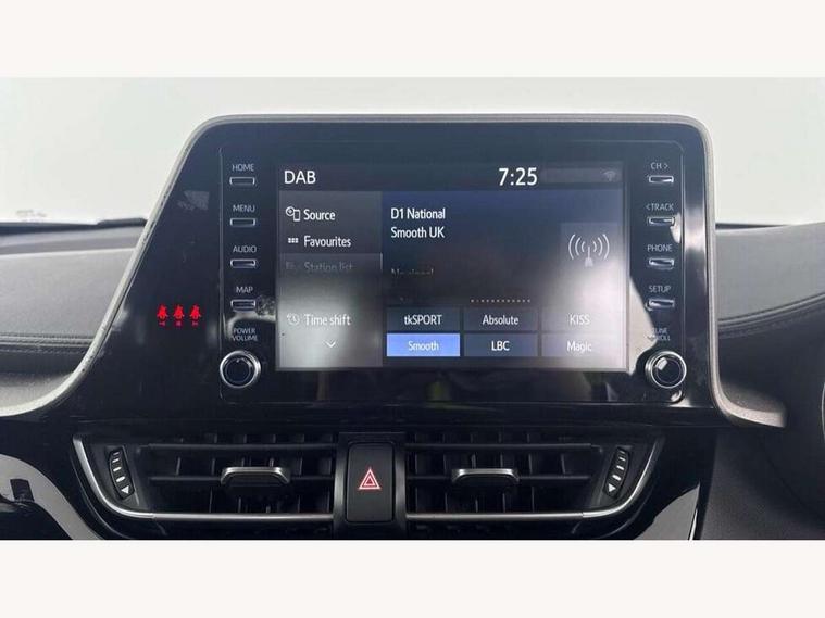 4.2" coloured TFT screen for multi-information display, Adaptive cruise control, Apple car play and Android auto, Bluetooth connectivity, E-call, Electric power steering, Hybrid system indicator, Lane departure alert with steering control, Lane trace assist, Push button start, Push button tailgate release, Remote boot door release in cabin, Remote boot door release in key, Reversing camera, Road sign assist - RSA, Smart voice assist, Trip computer, Voice recognition, Vehicle Stability Control (VSC), 6 speakers, AM/FM radio, DAB Radio (Digital Audio Broadcasting), Toyota touch 2 multimedia system with 8" display, USB connector, Wi-fi connectivity, Anti-jam protection on power windows, Auto high beam, Auto up and down function on all power windows, Automatic headlights, Automatic headlights cut-off, Black and body coloured rear bumper, Black lower front grille, Black upper front grille, Body colour door handles, Body colour door mirrors, Body colour front spoiler lip, Body coloured front bumper, Boot door release with push button, Electric heated door mirrors, Follow me home headlights, Front and rear power windows, Front fog lights, Headlight cut off reminder, Honeycomb lower front grille, LED daytime running lights, LED High mounted stop light, LED rear brake lights, LED rear combination lights, Manual headlight levelling, Manually retractable door mirrors, Noise reduction layer on front windows and windscreen, Power adjustable door mirrors, Rear side wing doors, Rear spoiler, Rear tailgate, Rear window defogger, Rear window wiper, Reflective LED headlights, Shark fin antenna, UV-filter on driver and passenger windows, UV-filter on rear windows, Variable front intermittent wipers, 12v power outlet - front, 3 rear headrests, 3 seat bench in 2nd row, 3 spoke leather steering wheel, 60/40 split folding 2nd row rear seats, Adjustable rear headrests, Adjustable speed limiter switch on steering wheel, Assist grips front and centre pillar, Audio and telephone switches on steering wheel, Black front door assist grips, Boot light, Chrome interior door handles, Cloth upholstery, Driver and front passenger personal light, Driver and front passenger Whiplash Injury Lessening seats, Dual zone automatic air conditioning, Floor mats, Front cupholders, Front head restraints, Front sports seats, Glovebox with internal light, Hard tonneau cover, Hooks for luggage holding net, Humidifying Nanoe air purifier, Illuminated entry system, Isofix attachments on outer rear seats, Leather gearshift, Light on driver sun visor, Light on passenger sun visor, Manual telescopic steering wheel, Manual tilt steering wheel, Manually adjustable lumbar support on driver seat, Manually height adjustable driver seat, Manually height adjustable front passenger seat, Manually reclining driver seat, Manually reclining front passenger seat, Manually sliding driver seat, Manually sliding front passenger seat, Microphone on front personal light, Mirror on driver sun visor, Mirror on passenger sun visor, Multimedia switches on steering wheel, Pollen filter, Shopping bag hooks, Single front passenger seat, Slow opening on lower glovebox, Voice recognition switch on steering wheel, 16 Disk front wheel brake, 3x3 point rear seatbelts, ABS+EBD+Brake assist, Electronic parking brake, Front and rear seatbelt reminder, Front passenger airbag on/off switch, Hill start assist control (HAC), Pre collision system with pedestrian detection, Pre-tensioners and force limiters, Rear door child safety locks, SRS Airbags - Driver + Front passenger, front side, front and rear curtain and driver's knee airbags, Toyota safety sense, Tyre pressure monitoring system, Tyre pressure warning system, Acoustic vehicle alert system (AVAS), Glass-breaking alarm sensors, Immobiliser, Intrusion alarm, Intrusion sensor, Motion sensor alarm, Power door locks, Power passenger window lock, Remote central locking, Black lower dashboard, Black upper dashboard, Grey deco line on upper dashboard, Matte black centre console, Tyre repair kit,