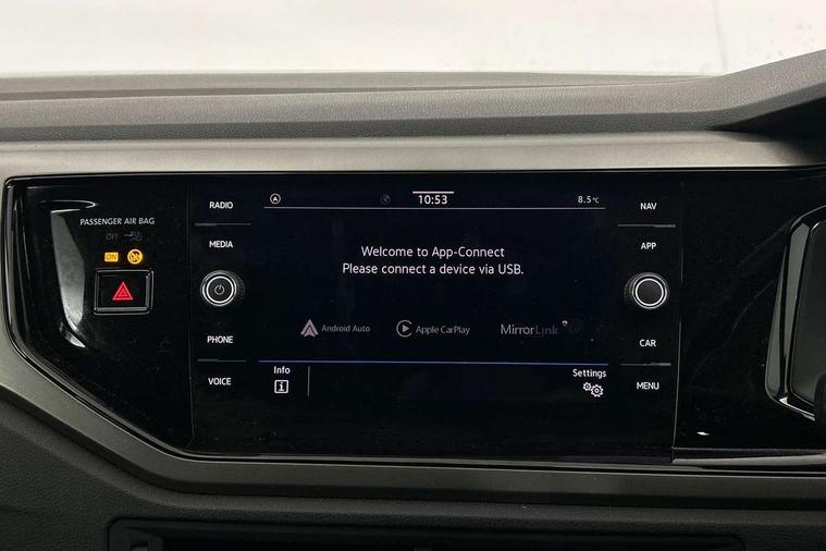 Air vents in High gloss black, Limestone grey decorative inserts, Alarm with interior protection and deactivation via infotainment system, Electronic engine immobiliser, Remote central locking with 2 remote folding keys, Diversity antenna for FM reception, Front and rear 6 speakers, 3 point height adj front seatbelts + pretensioners, 3x3 point rear seatbelts, ABS, Automatic post collision braking, Driver/front passenger airbag, Drivers and front passengers safety optimised head restraints, ESP with EDL + ASR, Front and rear passenger curtain airbags, Front disc brakes and rear drum brakes, Front passenger airbag deactivation, Front seat side impact airbags, HBA (Hydraulic Brake Assist), Hill hold control, Single tone horn, Tyre pressure monitoring system, Black grille with chrome surround, Black radiator grille with chrome louvres, Body colour bumpers, Body colour door handles, Body colour rear spoiler, Body coloured side sills, Electric front windows, Electrically adjustable and heated door mirrors with reverse activated kerb view adjustment on passenger's side, Front windscreen washers and wipers with 4 speed intermittent delay, Heated rear window with auto timer, High level 3rd brake light, LED daytime running lights, LED rear number plate lights, Rear electric windows, Rear windscreen washer and wiper with interval delay, reverse activated, 2 bag hooks in luggage compartment, 2 front and 2 rear reading lights, 2 front cupholders and 12 V socket with cover, 3 rear head restraints, 4 grab handles, 60/40 split folding rear seat, Centre console storage with open storage compartment, Chrome interior door handles, Driver and front passenger seat height adjustment, Driver and front passenger sunvisors with illuminated vanity mirrors, Dust/pollen filter, Folding rear seat backrest, Front head restraints, Front seat backrest storage pockets, Gear lever gaiter in black trim surround, Glovebox, Handbrake grip button in chrome effect, Height/reach adjustable steering column, Instrument lighting, adjustable panel illumination, Interior light with delay, Isofix Preparation 2 Rear child seats, Leather gear knob and handbrake grip, Luggage compartment cover, removable, Luggage compartment lighting, Luggage compartment with variable load floor, Storage compartment in front doors, Storage compartment in rear doors, Storage compartment under front seats, Sunglasses holder, Digital clock, Driver alert system, Emergency call service, Multifunction computer plus, Power assisted speed sensitive steering, Speedo and rev counter, electronic odometer, trip, service interval display and fuel gauge, Start/stop system, Volkswagen connect, Warning buzzer and light for front seatbelts unfastened, Wireless app connect, Battery regeneration during braking, Galvanished body,