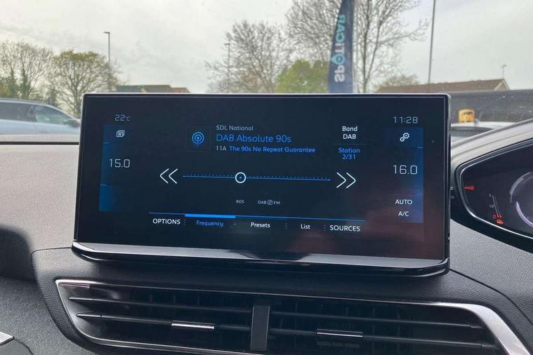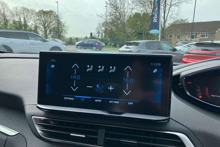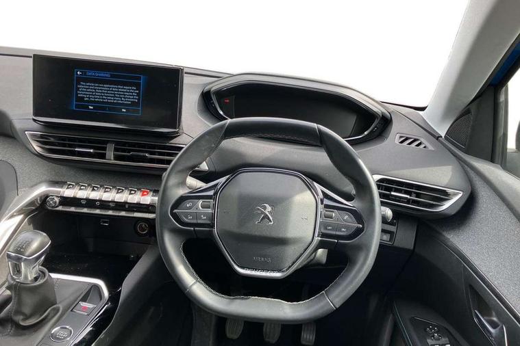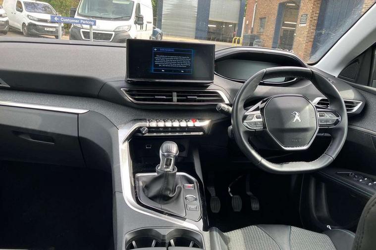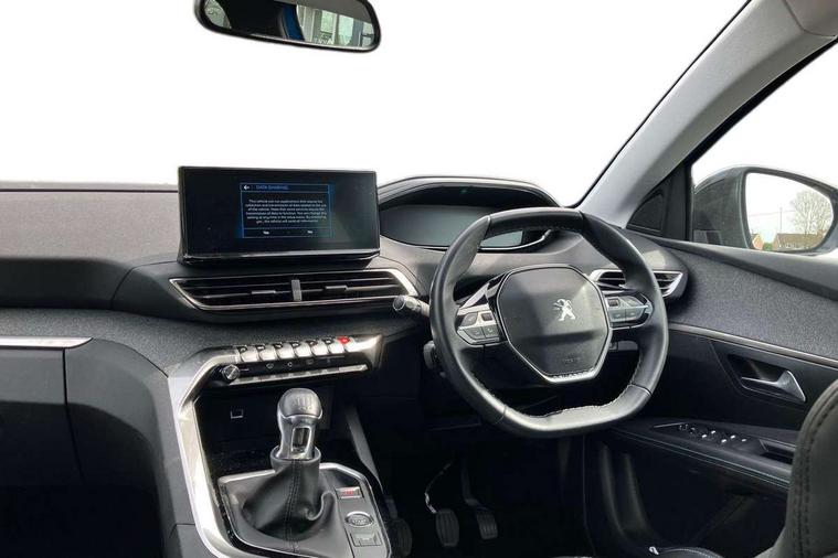 3D connected navigation with 10" HD touchscreen, Bluetooth telephone facility, Drive modes select (Eco, normal and sport), Driving Time Warning (DAA1), Emergency services call system, Extended traffic sign recognition, Exterior temperature indicator with ice warning, Front parking sensors, Mirror screen with mirror link, apple carplay and android auto, Multi function trip computer, PEUGEOT i-Cockpit with 10" high definition capacitive touchscreen, Peugeot i-cockpit with compact multi-function sports steering wheel, PEUGEOT i-Cockpit with configurable 12.3" Head-up digital instrument panel, Rear parking aid, Speed limit recognition and recommendation, Voice recognition, Dynamic stability control and electronic anti-skid system, Stop/start function, 6 speakers radio with mp3 compatible, DAB Digital radio, USB socket, Aluminium longitudinal roof bars, Automatic hazard light activation upon heavy brake application, Automatic triggered rear windscreen wiper in reverse gear, Black rubber side window trim, Black with chrome detailed front wing trim, Body colour door handles, Body colour rear roof spoiler with stainless steel edging trim, Body protectors (bottom of front and rear bumpers + wheel arches + protection at bottom of doors) in black, Chrome frameless 'Classic' grille, Chrome rear bumper facia, Dark tinted rear side windows + tailgate window, Diamond Black door mirror shells, Door mirror mounted LED courtesy floor lighting, Eco LED headlights, Electric folding door mirrors with exterior courtesy LED lighting, Electric operated/heated door mirrors, Front and rear door and sill protectors with polished stainless steel insert, Front bumper lower trim in Silver, Front windscreen wiper with magic wash cleaning system, Gloss black B and C pillar and aerodynamic deflector trim, Gloss black front bumper air scoops, Gloss black rear cluster connecting strip, Gloss black windscreen trim, Headlights left on audible warning, Heated rear windscreen with integrated antenna, LED daytime running lights, LED front indicator, LED rear number plate lighting, LED side indicator lights integrated into door mirrors, LED third brake light, One touch electric front/rear windows with pinch protection, Rear LED Peugeot signature 'Claw Effect' lights, Rear side wing doors, Stainless steel roof arches, 1/3 to 2/3 split folding rear seats, 12V Sockets in dashboard, rear cabin and load area, 2 cupholders in front centre console, 2 cupholders in rear armrest, 2 x Rear reading spotlights, 2x Rear coat hooks, 3x Isofix child seat fittings in the front passenger and outer rear seats, 4 Grab handles retractable and damped, Blue ambient lighting for connecting zone, Blue ambient lighting to front door panels, Blue ambient lighting to headup instrument panel, Brumeo fabric trimmed door armrests, Centre front armrest with butterfly wing opening and illuminated storage compartment, Driver seat lumbar adjustment, Driver seat manual adjustment (longitudinal and back rest angle), Dual zone automatic climate control, Electric power steering with reach and rake adjustable steering column, Flocked glovebox interior, Foldable front passenger seat with picnic table, Footwell illumination, Front interior light with 2 reading spotlights and rear interior light with timer, Front passenger seat manual adjustment (longitudinal and back rest angle), Front seat back map pockets, Gear shift indicator, Height adjustable front seats, Illuminated glovebox, Individual left and right controls in boot for seat folding, Leather steering wheel with detail stitch, LED interior lighting in storage spaces and load area, LED roof interior lighting, Rear bench seat with central armrest and ski hatch, Rear centre console ventilation system, Roof lining - Salin light grey, Satin chrome dashboard trim, Satin chrome digital instrument panel and touchscreen trim, Satin chrome front door panel recess trim, Satin chrome interior door handles, Satin chrome scorpion's tail and toggle switch trim, Seatbelt not fastened audible and visual alert for front seats, Seatbelt unfastened on the move audible and visual alert for front and rear seats, Sunvisors with illuminated vanity mirrors, Two position boot floor, Safety plus pack with high beam assist - 3008, Visibility pack - 3008, 3x Rear three-point retractable seatbelts with force limiters in the outer rear seats, ABS (Anti-lock Braking System) with EBD (Electronic Brakeforce Distribution) and EBA (Emergency Braking Assistance), Adaptive driver and front passenger airbags with passenger airbag deactivation function, Driver and front passenger side airbags, Electric child locking functionality on rear windows and doors, Electric parking brake, Front and rear curtain airbags, Front optimised safety headrests and 3 x rear retractable headrests with height adjustable, Front three point retractable seatbelts with pre tensioners and force limiters, Front ventilated disc brakes and rear disc brakes, Hill start assist, Two tone horn, Automatic door locking when moving off, Electronic immobiliser, key operated exterior door lock from the left hand door, Perimetric and volumetric alarm with lift and tilt sensor, Peugeot Open and Go System, Remote control central locking with two plip keys, Brumeo fabric Dashboard, front and rear door panel finish, Puncture repair kit including compressor, sealant cartridge and towing eye,