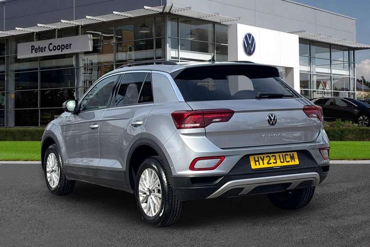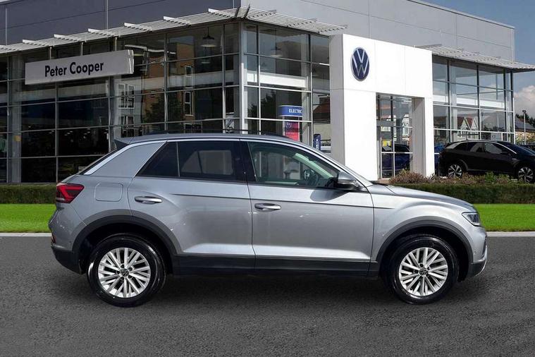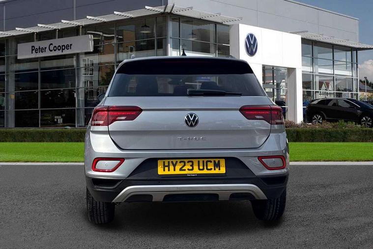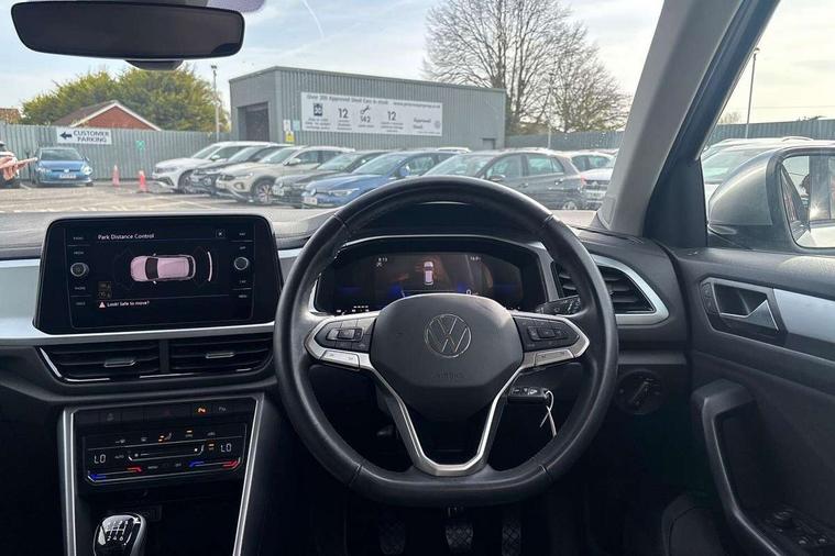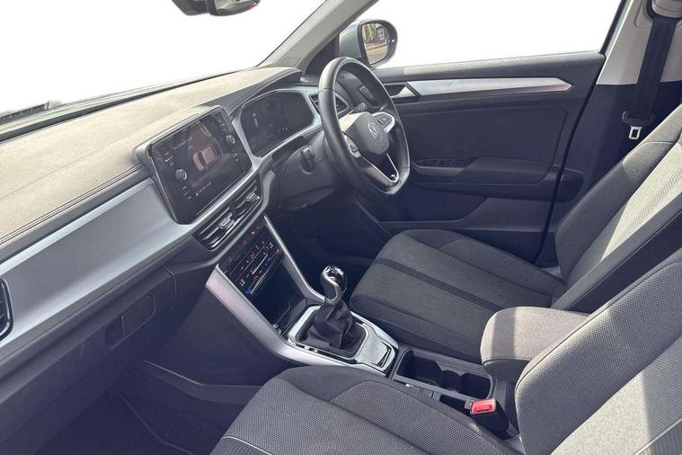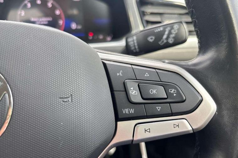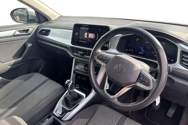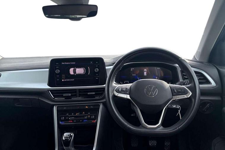 Bluetooth mobile phone interface, Driver alert system with fatigue detection, Driver tips and journey analysis, Emergency call service, Lane keeping system Lane Assist, Modified key software - reduce switch off time for key status change to Long no motion, Online services, Park assist including front and rear parking sensors, Power assisted speed sensitive steering, Service interval indicator, Tailgate/trunk lid release from outside, Think blue trainer driver tips and journey analysis, Warning sound and light for front seatbelts unfastened, Wireless app connect, Battery regeneration during braking, Front shock absorption, Rear shock absorption chassis with increased ride height, Start/stop function with battery regeneration, DAB Digital radio, Diversity antenna for FM reception, Front and rear 6 speakers, Music playback - MP3, WMA and AAC files, Premium USB cable in choice of either Apple or Android smartphone compatibility, SD card slot, Simultaneous pairing of 2 compatible mobile devices, Title and cover art display, We Connect and We Connect Plus functionality, 3rd brake light, Auto dimming interior rear view mirror, Automatic hazard lights activation under emergency braking, Automatic headlight control with LED separate daytime running lights with coming/leaving home function, Black roof rails, Body coloured bumpers and radiator grille with chrome trim and front fog lamps with chrome bezel, Body coloured exterior mirror housings and door handles, Extended roof spoiler, Exterior mirrors aspherical on driver side, convex on front passenger side, External USB type C socket and charging sockets, Front windscreen wiper with intermittent wipe and 4 position delay, Heated rear window, LED Headlights, LED rear combination lamps, LED rear number plate lights, LED tail lamp rear comination lamps, Power windows with comfort operation and circuit breaker, Rain sensor, Rear exhaust tailpipe, Rear fog light on one side and reversing lights on both sides, Rear side wing doors, Rear wash/wipe with intermittent wipe setting, Remote electrically foldable door mirrors, puddle lights and reverse activated passenger's door mirror, 12V power socket in centre console, 3 rear head restraints, 3 seat bench in 2nd row, 4 load lashing points in luggage compartment, Air care climatronic air conditoning system with active combination filter and 2-zone temperature control, Ambient lighting with mirror logo projection, Cloth upholstery, Door and side trim panel in cloth, Drawer under drivers seat, Driver/front passenger seat height adjustment, Front centre armrest, Front comfort sports seats, Front cupholders x 2, Front reading light, Instrument lighting, white adjustable panel illumination, Interior light delay, Isofix child seat preparation, Leather gearshift handle, Load-through provision with cup holder when folded down ('Unsplit rear seat bench, split folding backrest, with centre armrest), Luggage compartment lighting, Lumbar support for driver's and front passengers seat, Non-folding front passenger seat backrest, Single front passenger seat, Storage compartment in left and right luggage area, Storage compartment in rear doors, Storage compartments in driver and front passenger doors, Sunvisors with illuminated vanity mirrors, Variable boot floor, height adjustable and removable, Driver assistance pack without proactive passenger protection - T-Roc, 3 point height adj front seatbelts + pretensioners, 3 point seatbelts in outer rear with ECE label, ABS, Child locks on rear doors, Driver and front passenger airbag with front passenger airbag deactivation, Driver and front passenger safety-optimised head restraints, Drivers seatbelt reminder, Electronic parking brake, Electronic Stability Control (ESC) inc EDL (Electronic Differential Lock) and ASR (Traction Control), Front and rear passengers curtain airbag system including front side airbags, Front assist with city emergency braking and pedestrian monitoring, Front disc brakes, Front seat side impact airbags, Hill start assist, Predictive pedestrian protection, Rear disc brakes, Single tone horn, Tyre pressure loss indicator, Volkswagen roadside assistance, Alarm with interior protection, Anti-theft alarm system with interior monitoring, backup horn, and towing protection, Remote central locking with SAFELOCK, radio remote control with 2 remote control folding keys, Pewter matt decorative inserts for intrument panel, centre console and door panels at the front, Trims for alloy wheels,